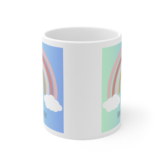 Rainbow Ceramic Mug 11oz- Kindly Fuck Off (green/blue)