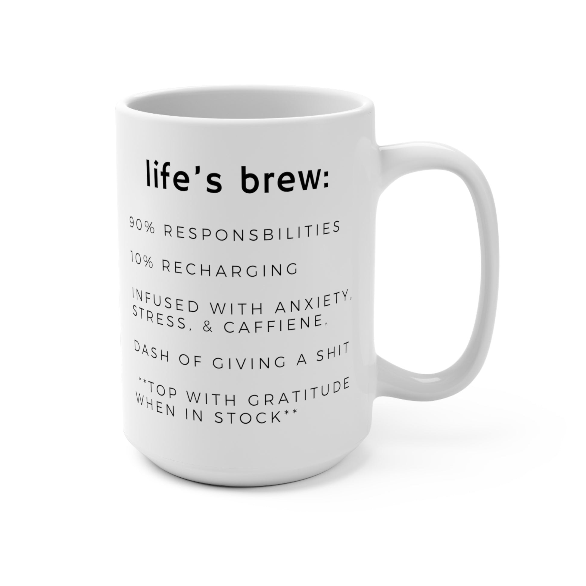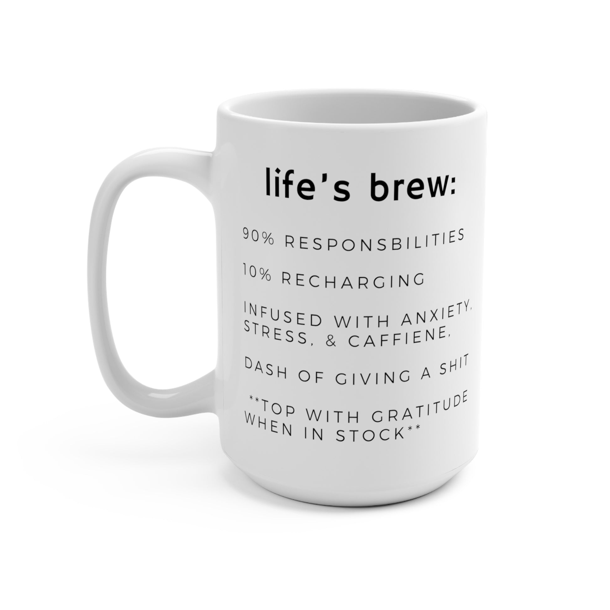 Required ingrediants are balancing sprinkles of sleep, anxiety, and caffeine to remind you that adult life is a chaotic rollercoaster, and those sleepless nights are all part of the package. We're topping it all off with a begrudging serving of gratitude. Just remember, gratitude is that special seasoning, which is not always in stock and not required.