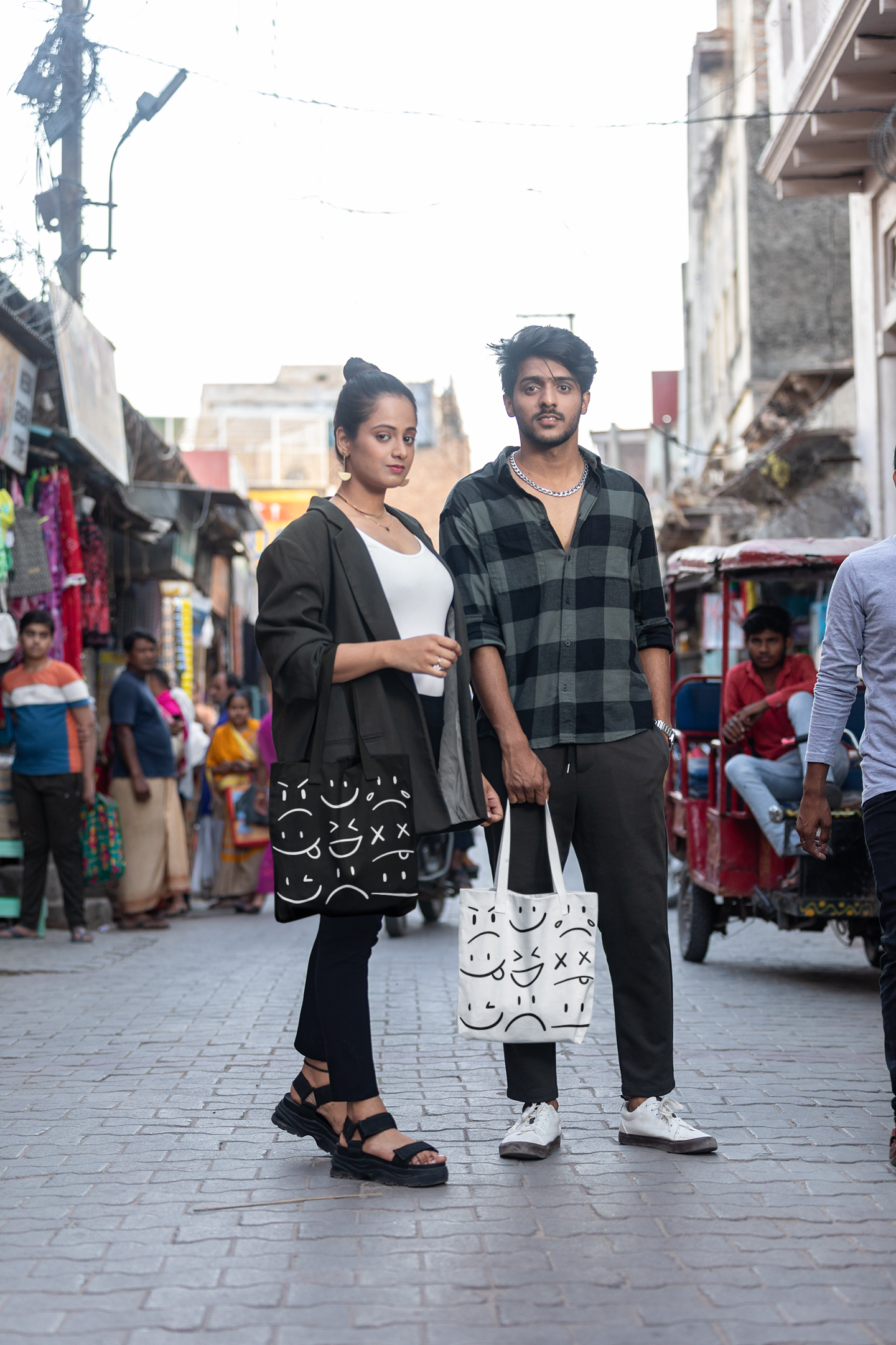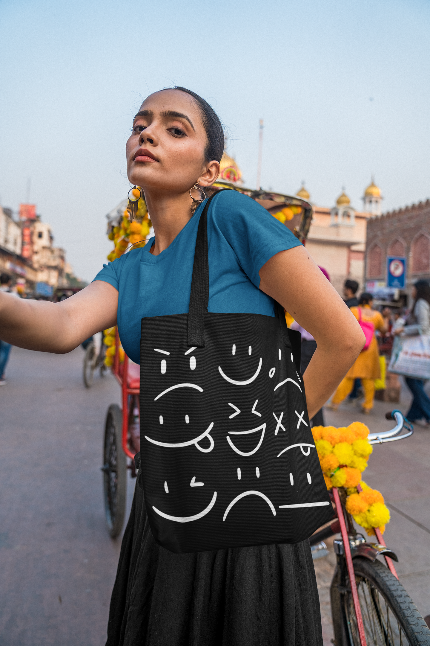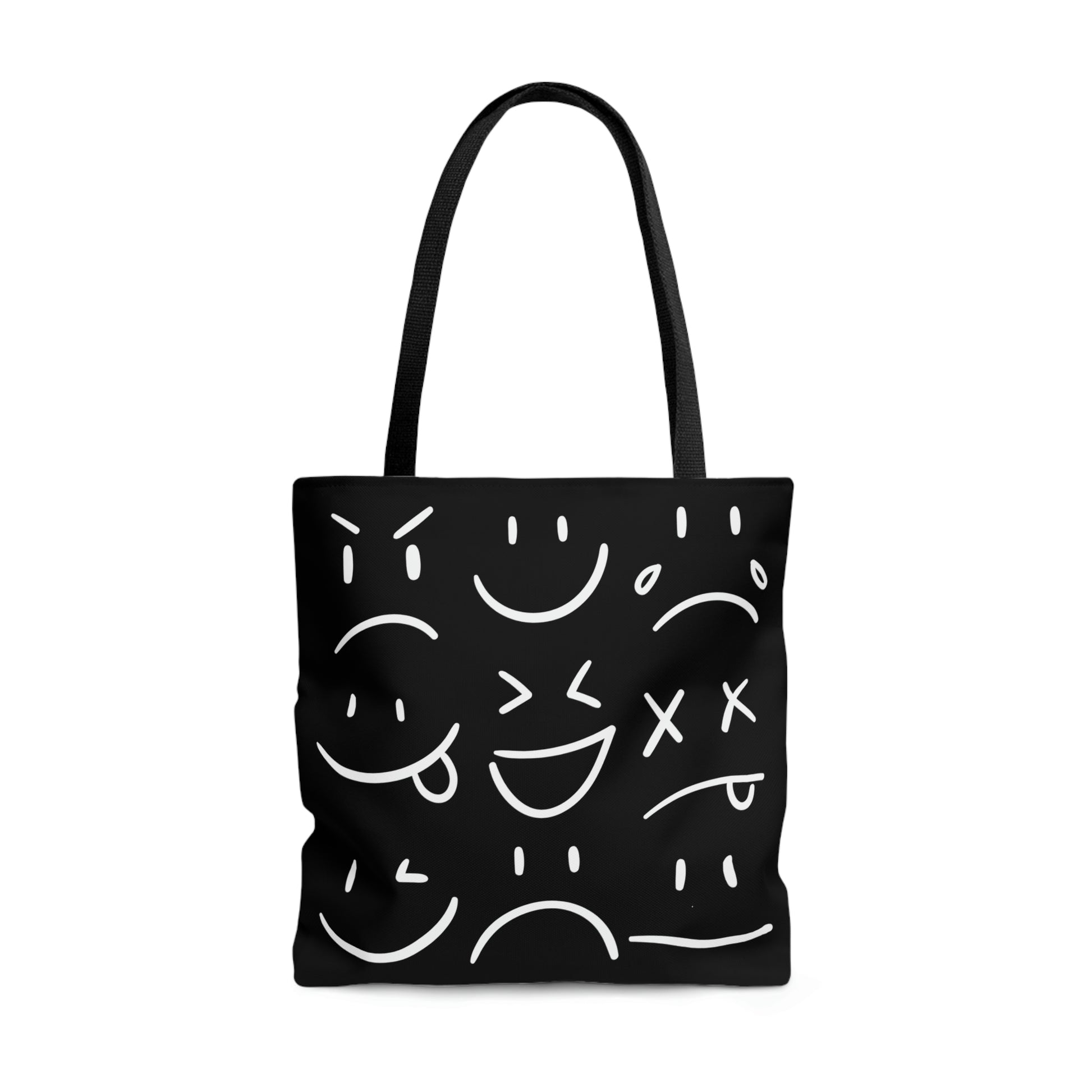 The Everyday Expressions tote bag features a captivating design of multiple facial expressions. Expressions ranging from joy and excitement to surprise and curiosity adorn the bag. Crafted with high-quality materials, this spacious tote is both stylish and functional, making it perfect for carrying your essentials with a touch of whimsical charm. Whether you're heading to the beach, running errands, or simply adding a unique accessory to your outfit. Embrace the power of nonverbal communication. Let your emotions shine or through with this delightful tote bag. A great gift idea for others.
