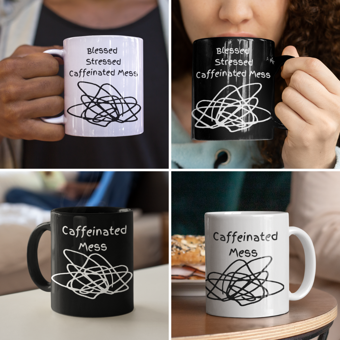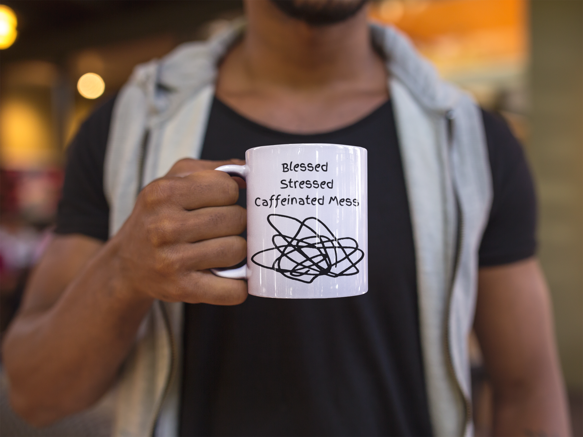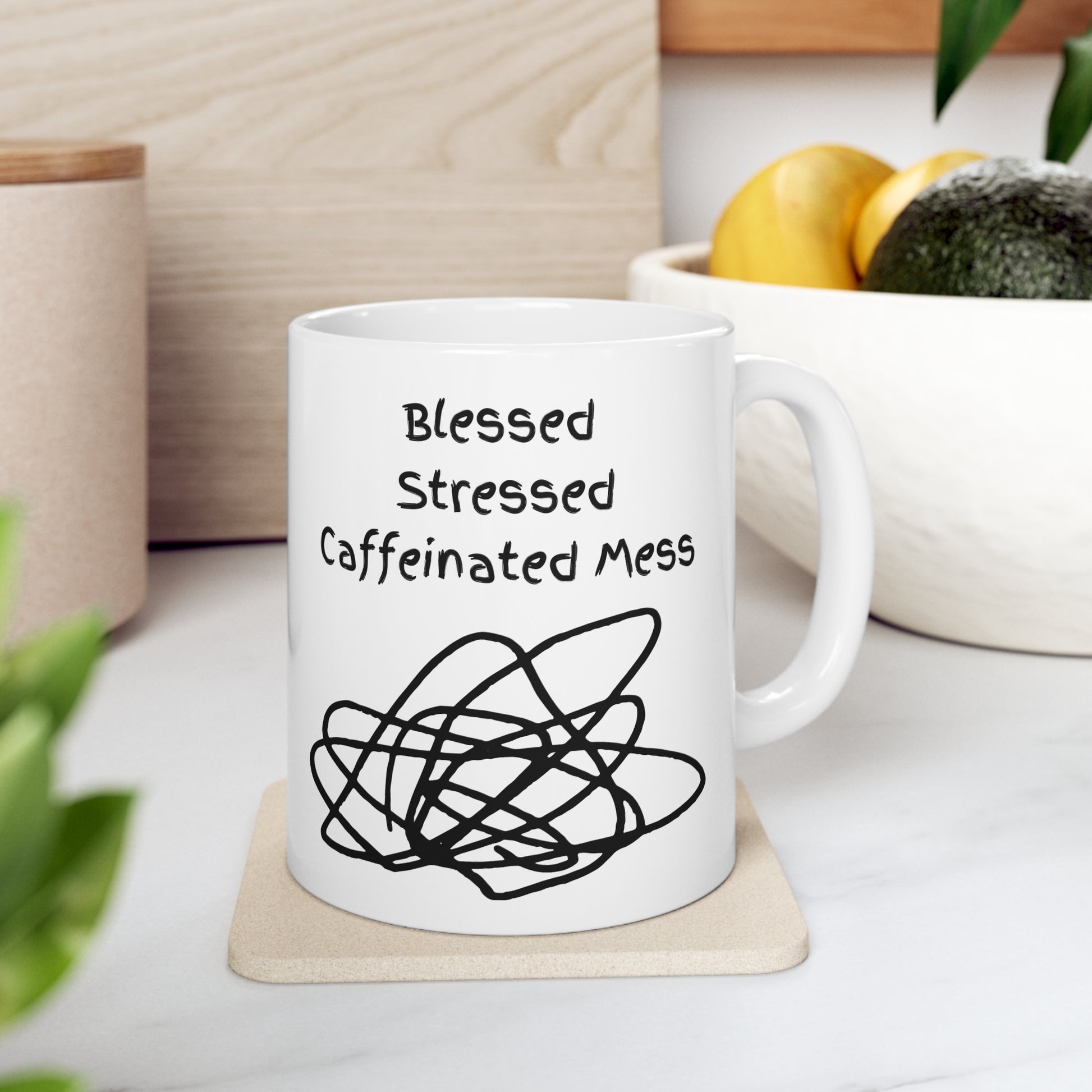 Blessed, Stressed, Caffeinated Ceramic Mug (11 & 15oz)