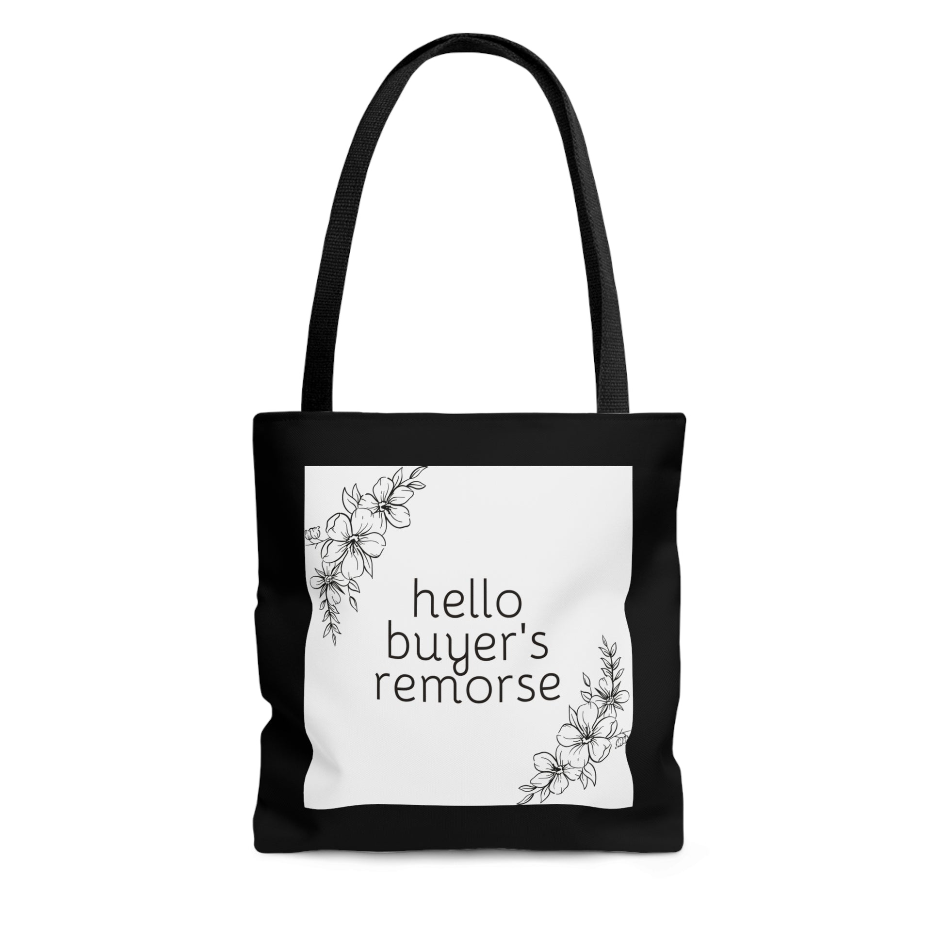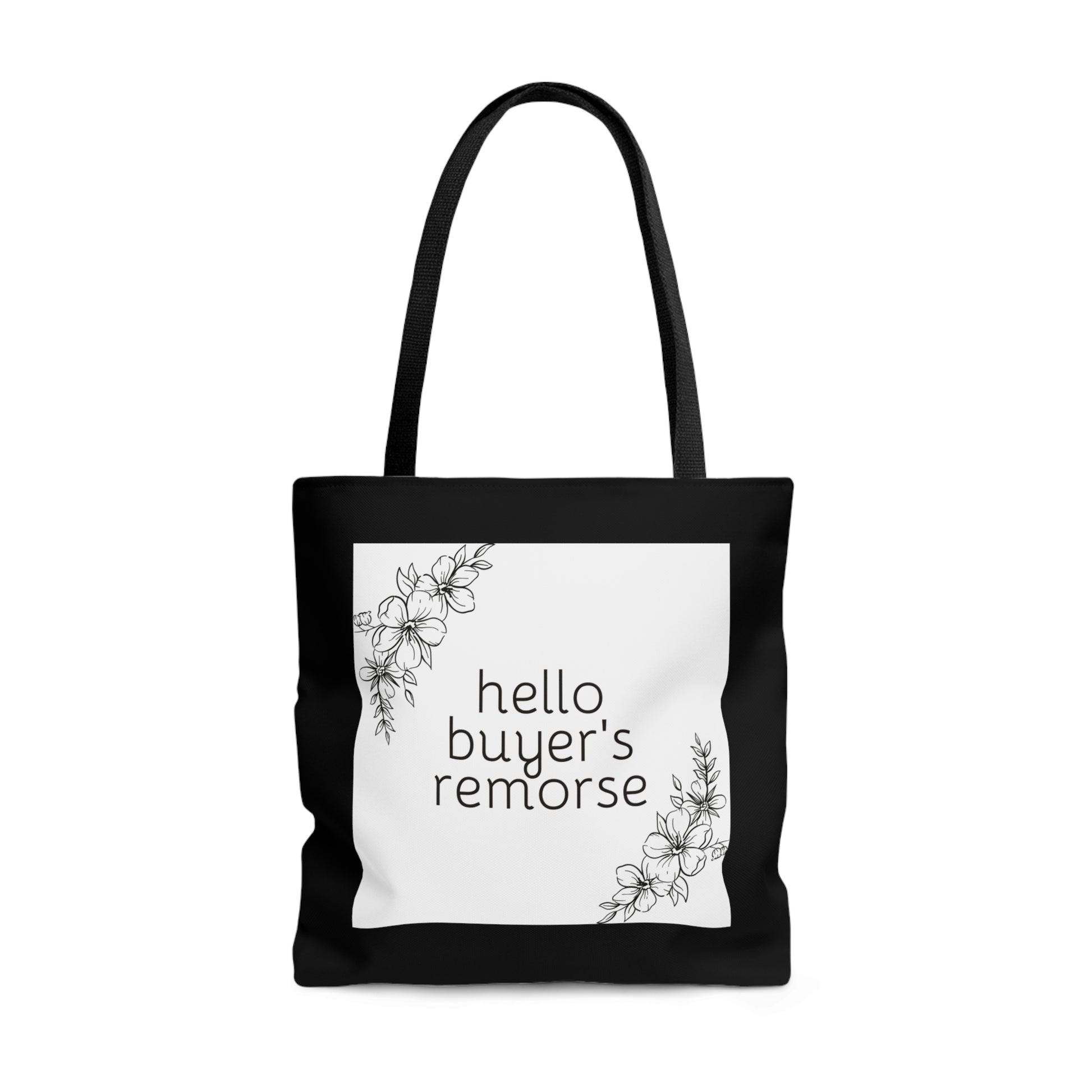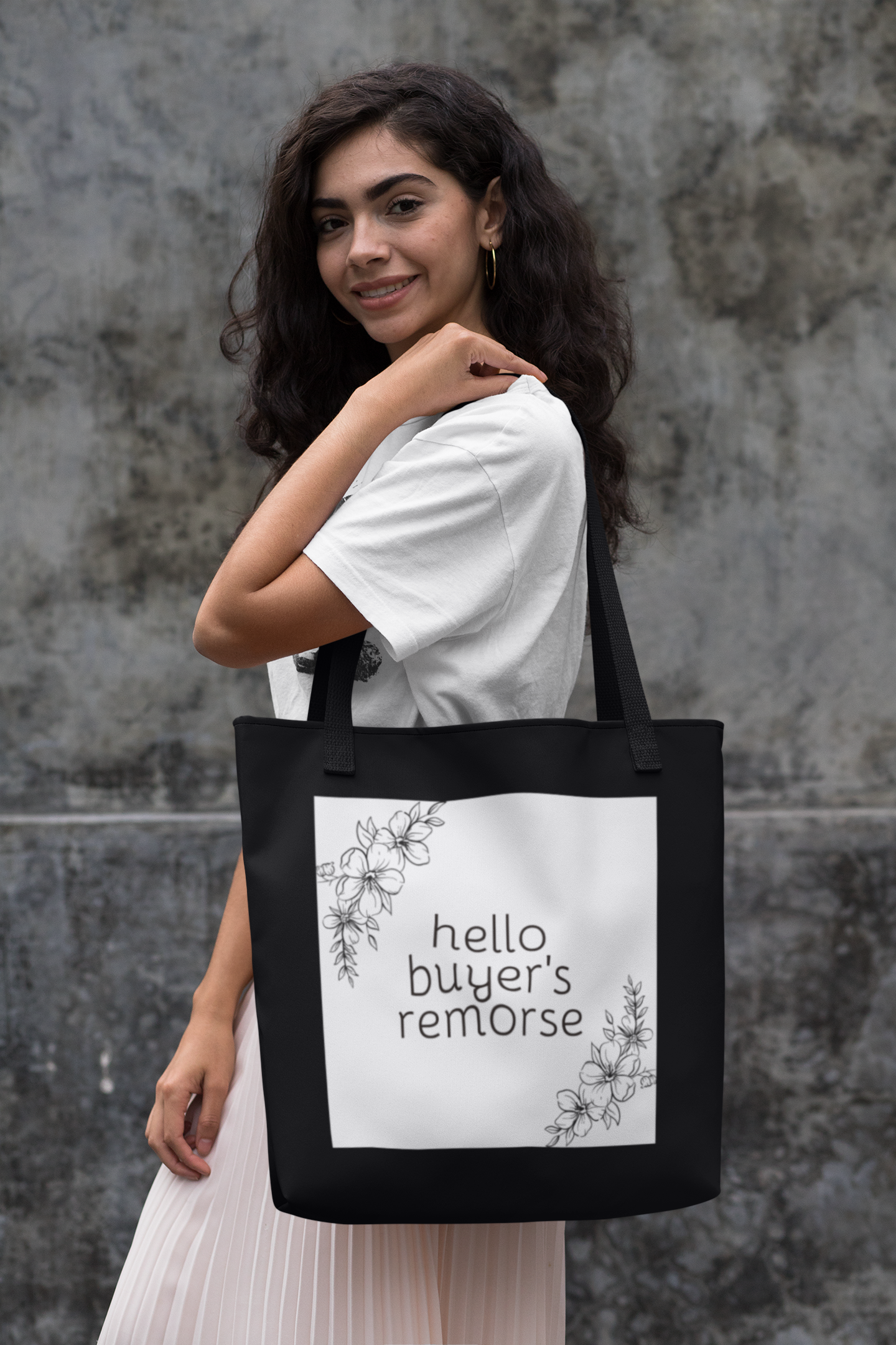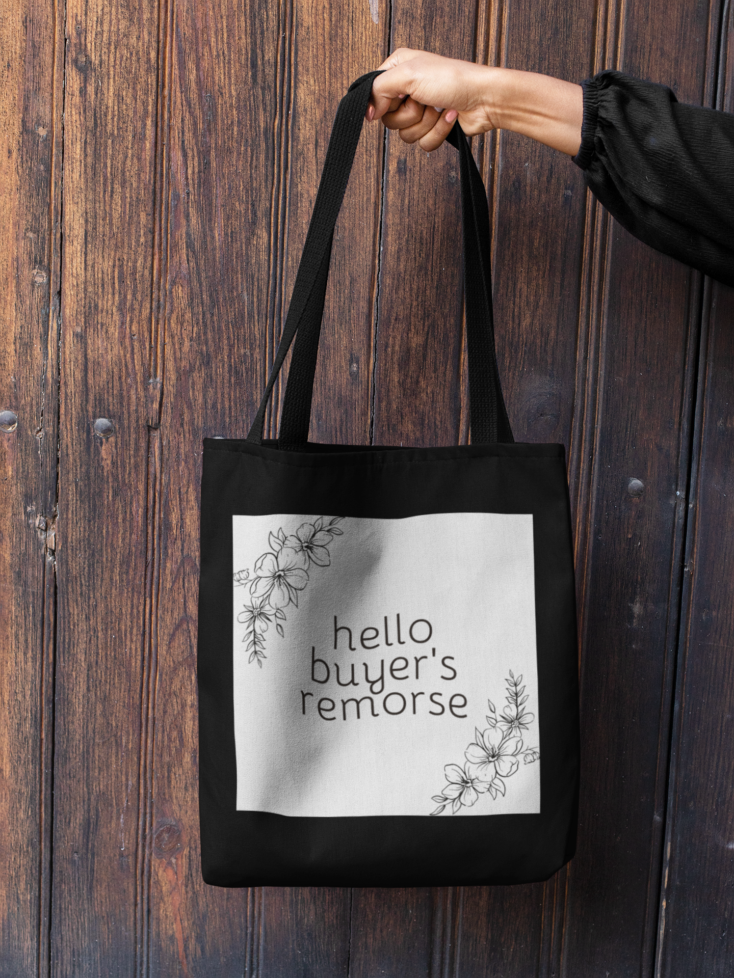 This tote bag apart is its playful " it serves as a lighthearted reminder that we all experience those moments of second-guessing after making a purchase. It's a humorous way to embrace the occasional misstep and find solace in knowing you're not alone.