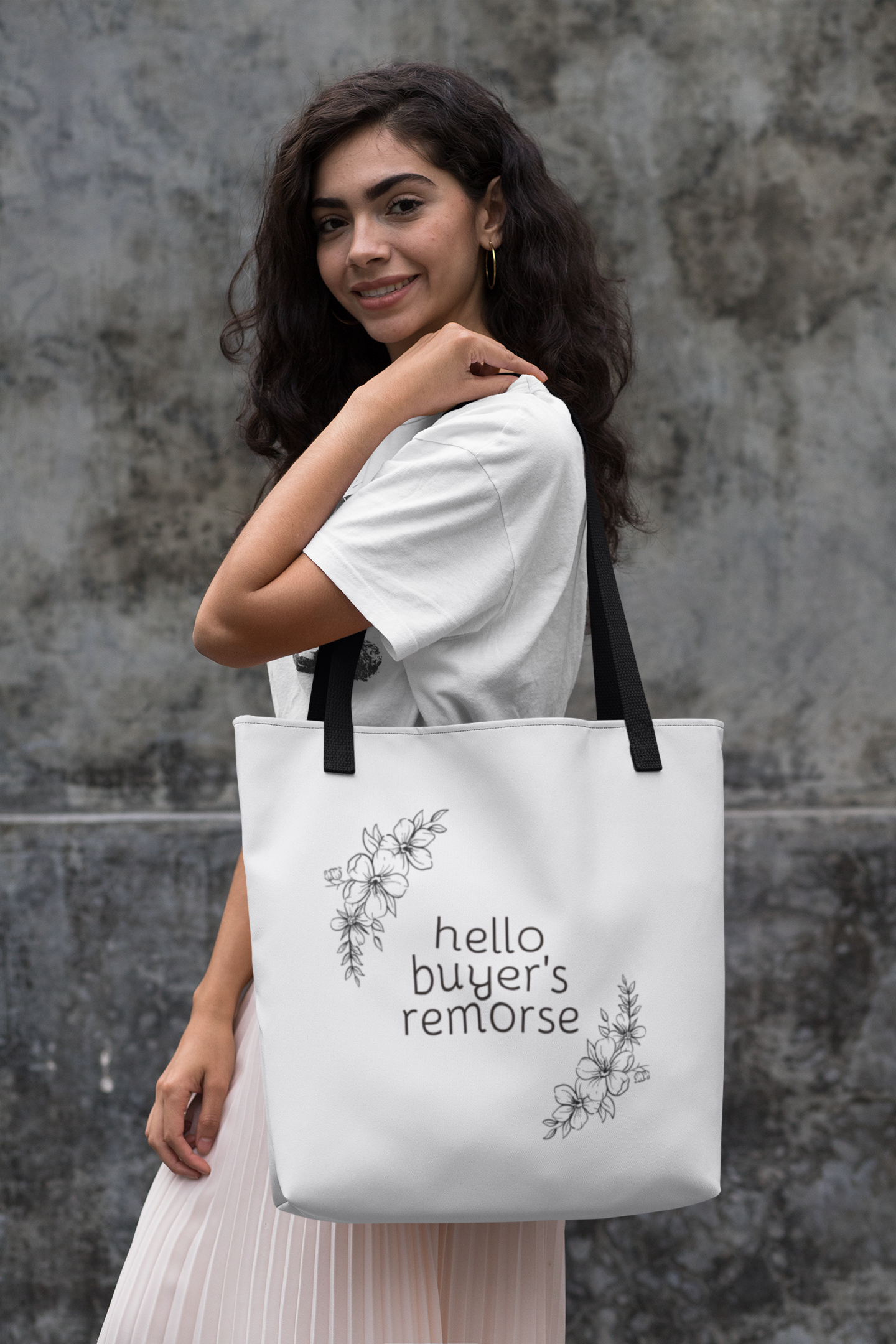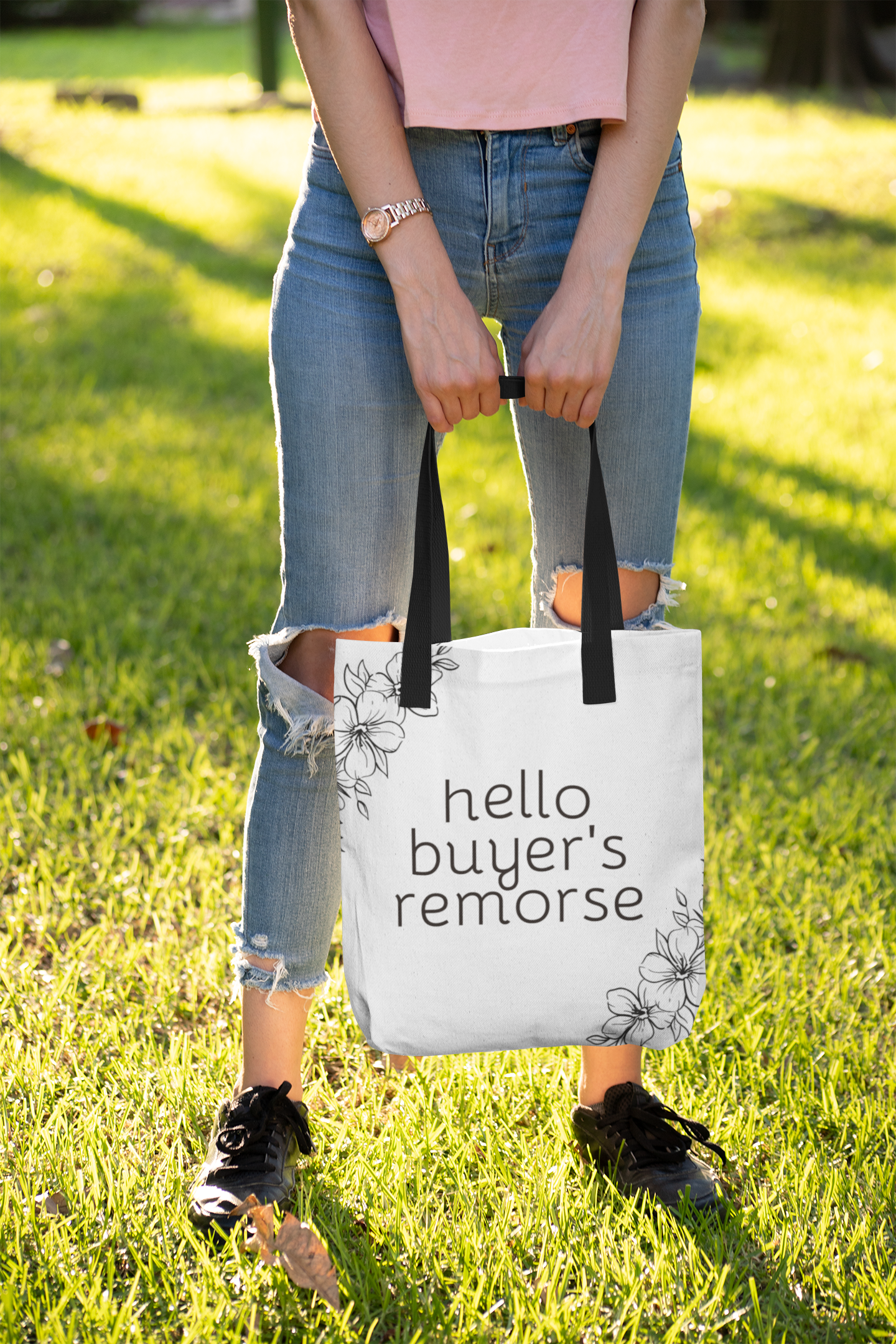Introducing our "Buyer's Remorse" Tote Bag – the perfect companion for those moments when you need a touch of humor and understanding after an impulsive shopping spree.