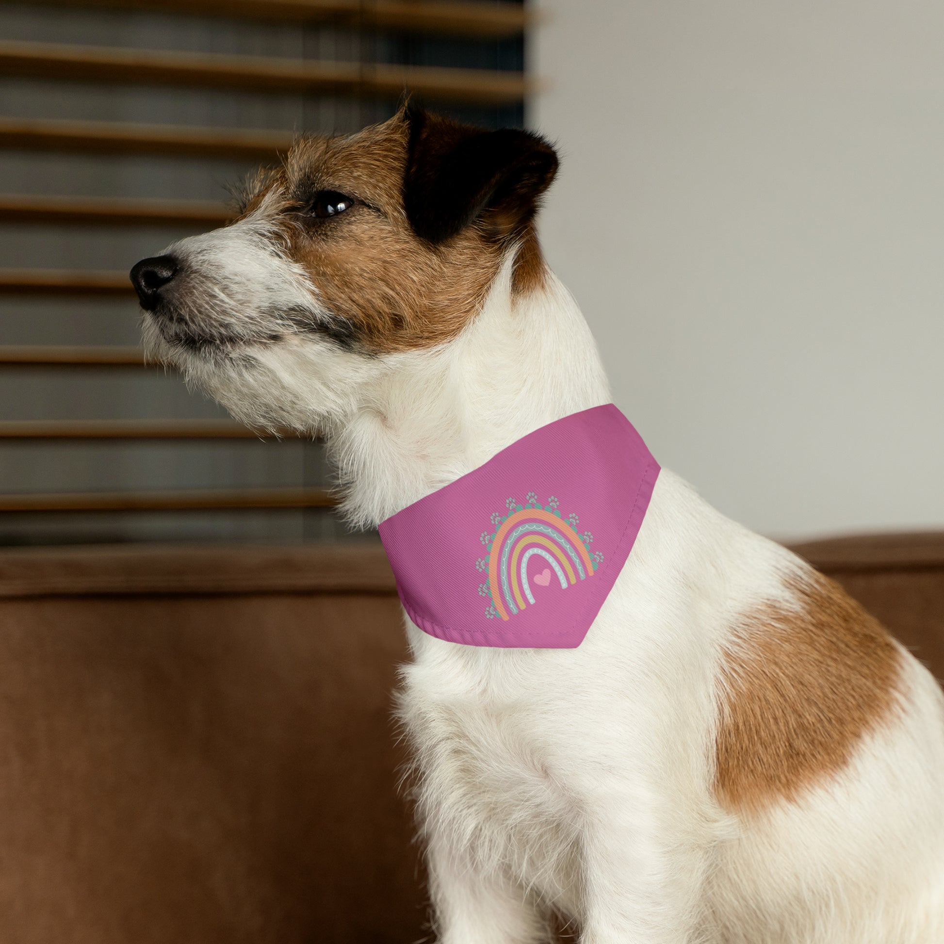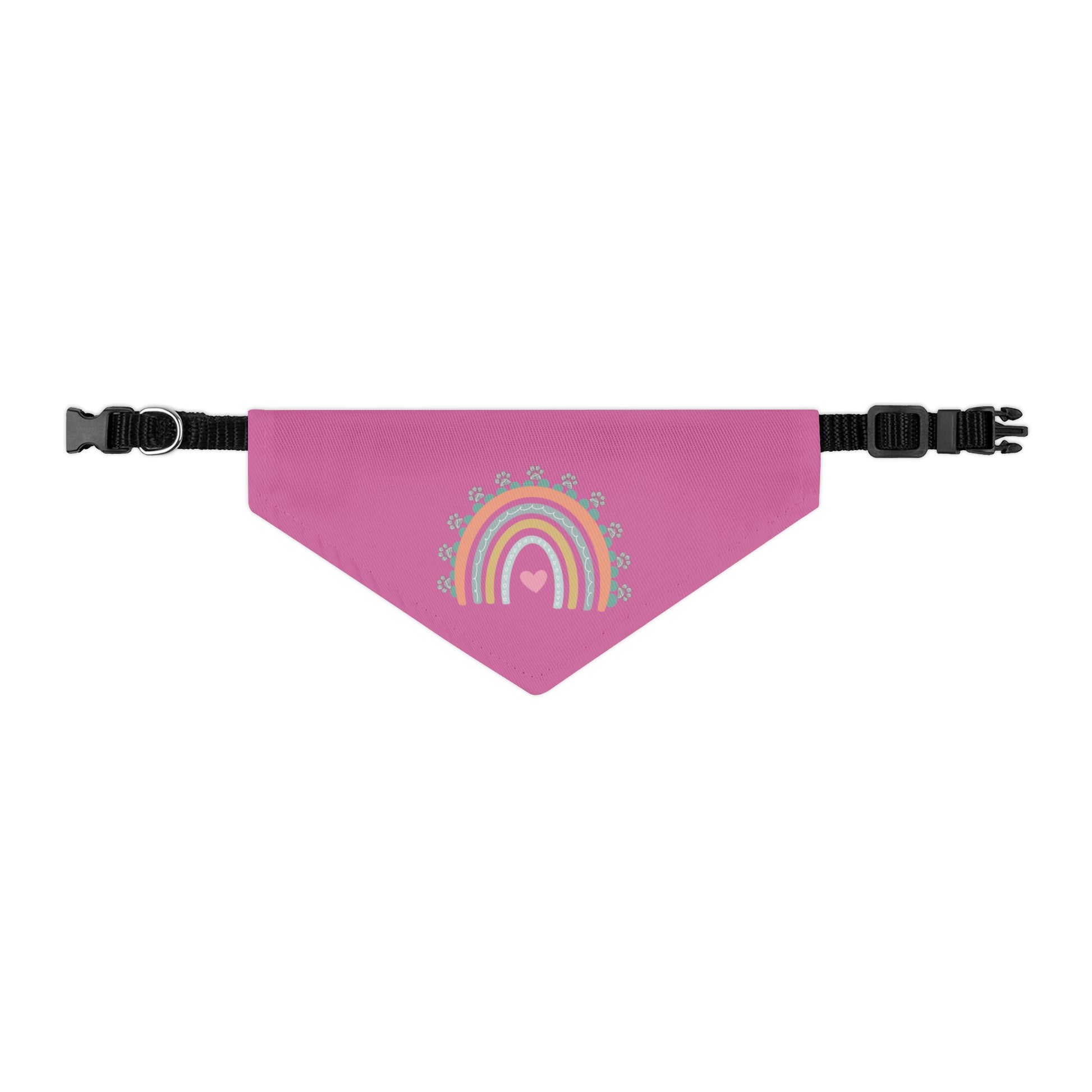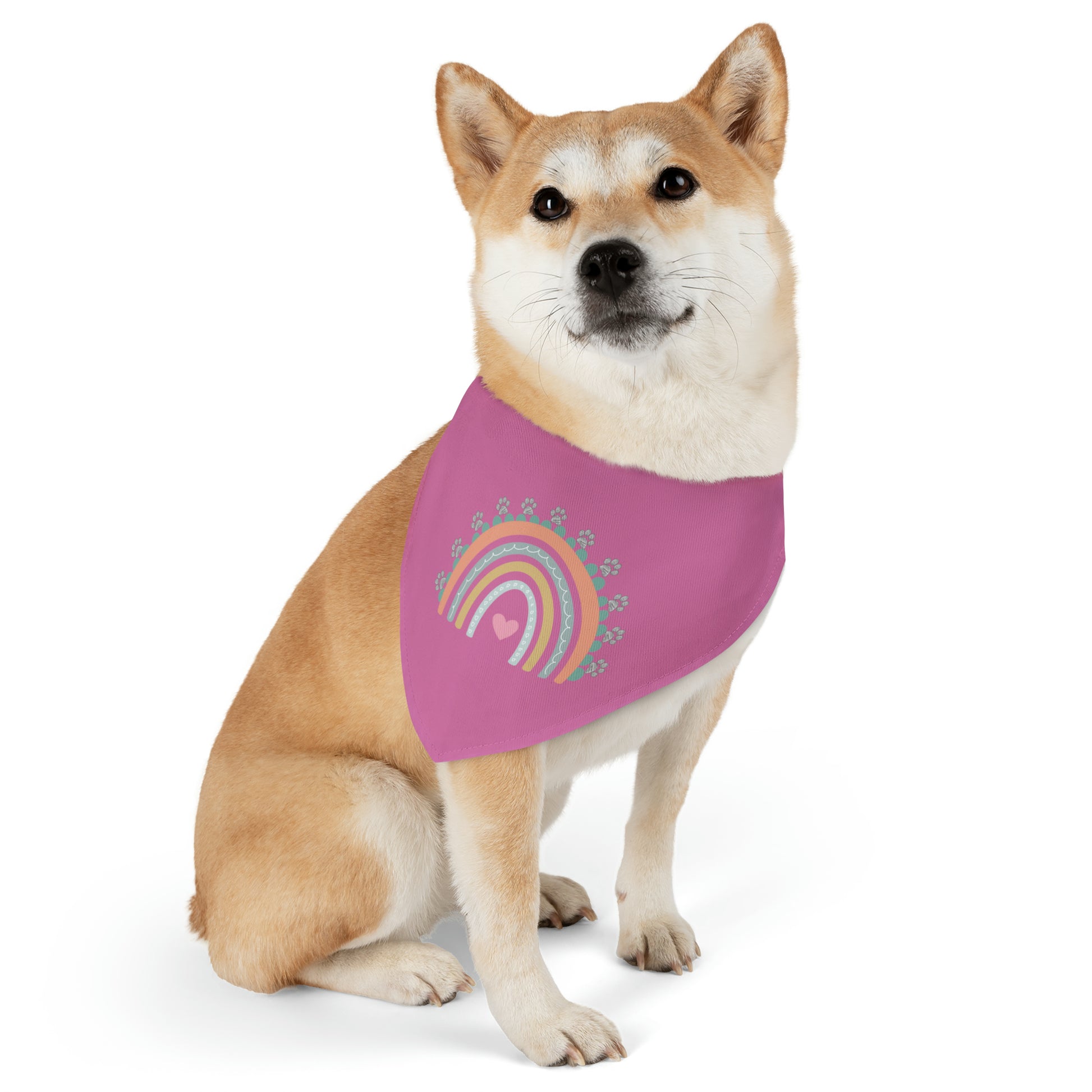 Make your furry friend stand out with our vibrant Rainbow Pawprint Pet Bandana! This stylish and adorable accessory is perfect for adding a touch of color and personality to your pet's wardrobe. This bandana captures the spirit of joy and playfulness. It's crafted with care using soft, high-quality fabric to ensure comfort for your pet throughout the day.