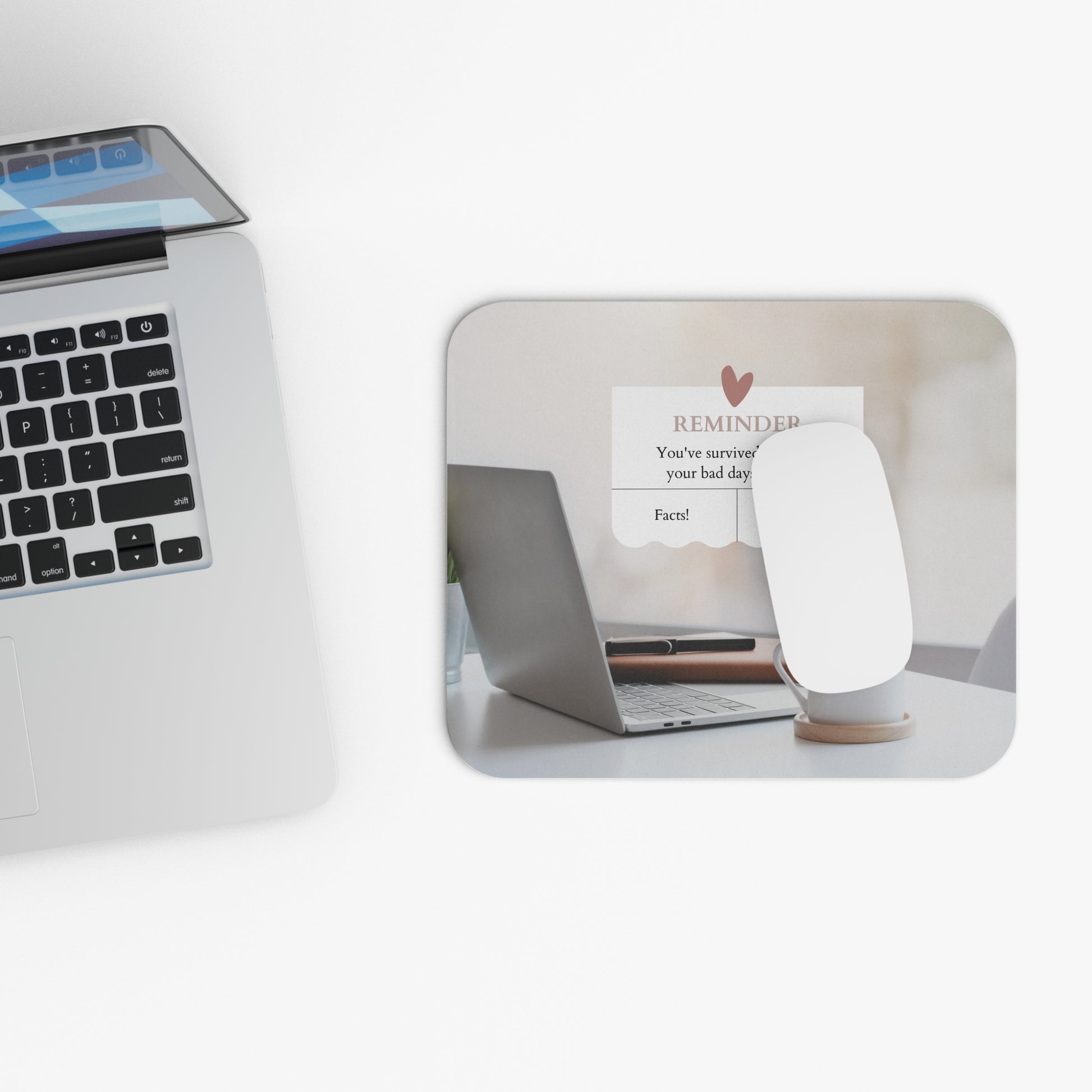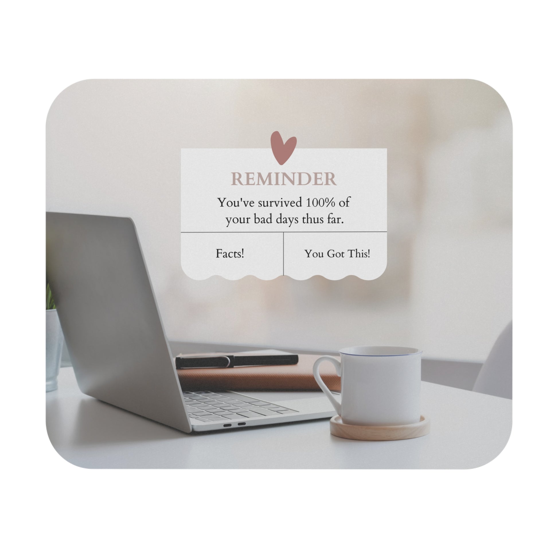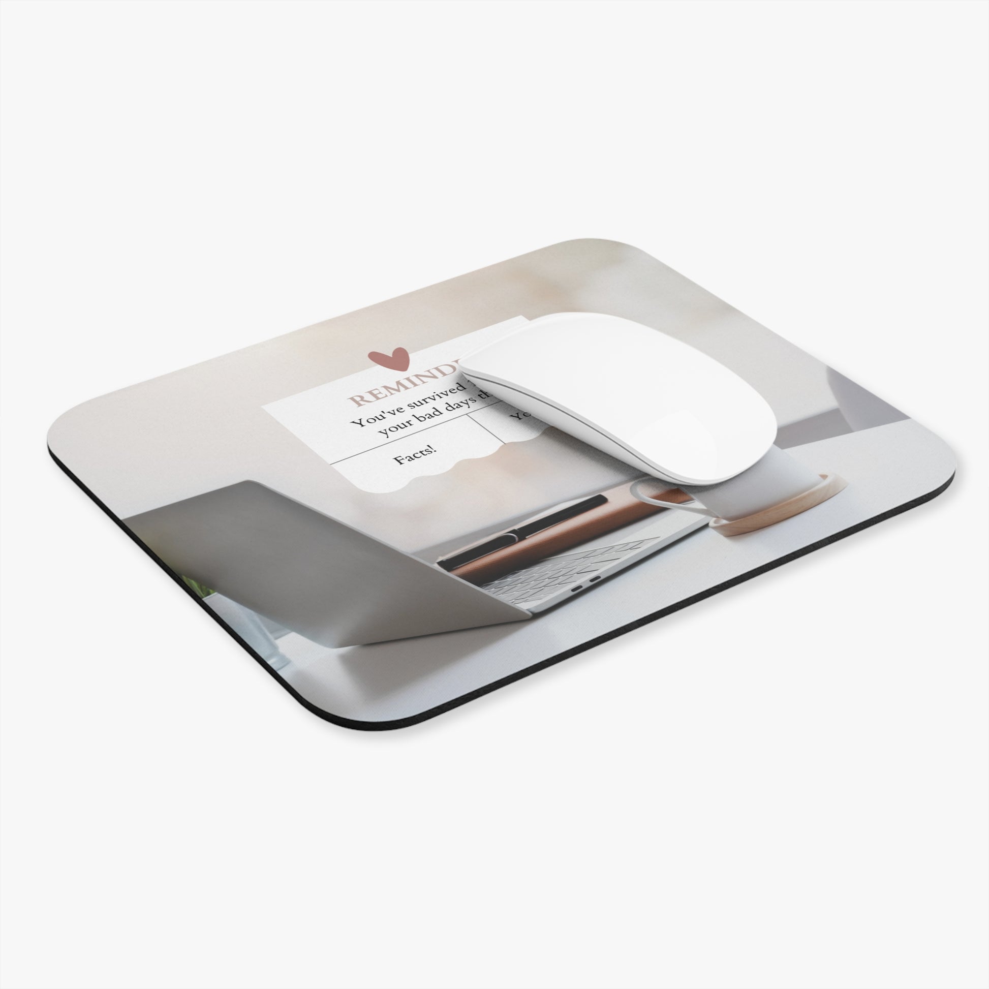 Meet our 'Daily Triumphs Mousepad' – a tribute to your ongoing victories against life's challenges. This mousepad proudly reminds you that you've conquered every bad day that's come your way. Glide your mouse over this motivational message and bask in the glow of your resilience. Your co-workers are sure to appreciate a gifted reminder!