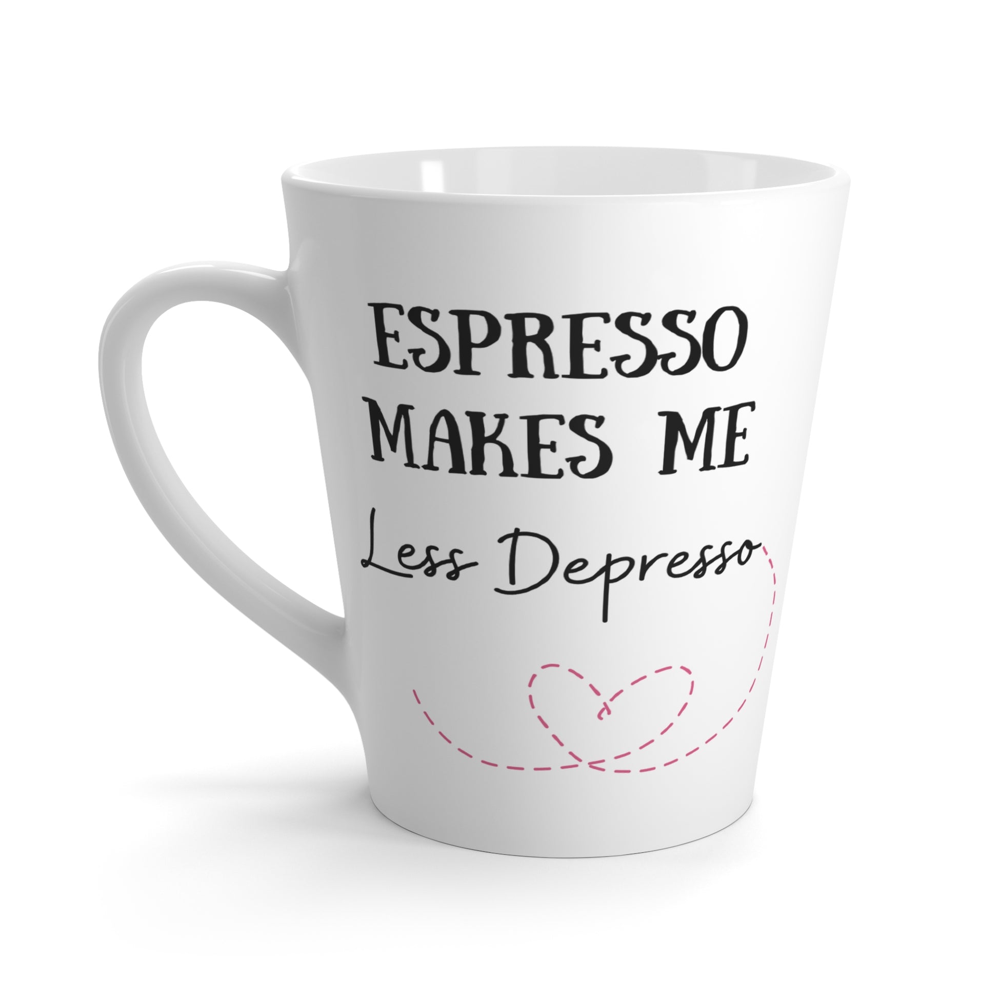 Crafted with a dash of humor and a nod to the coffee lover's mantra, this mug is a celebration of the caffeinated joy that lifts spirits and ignites energy. Give the gift of relatable humor that makes everyone's day a little less 'depresso.'"