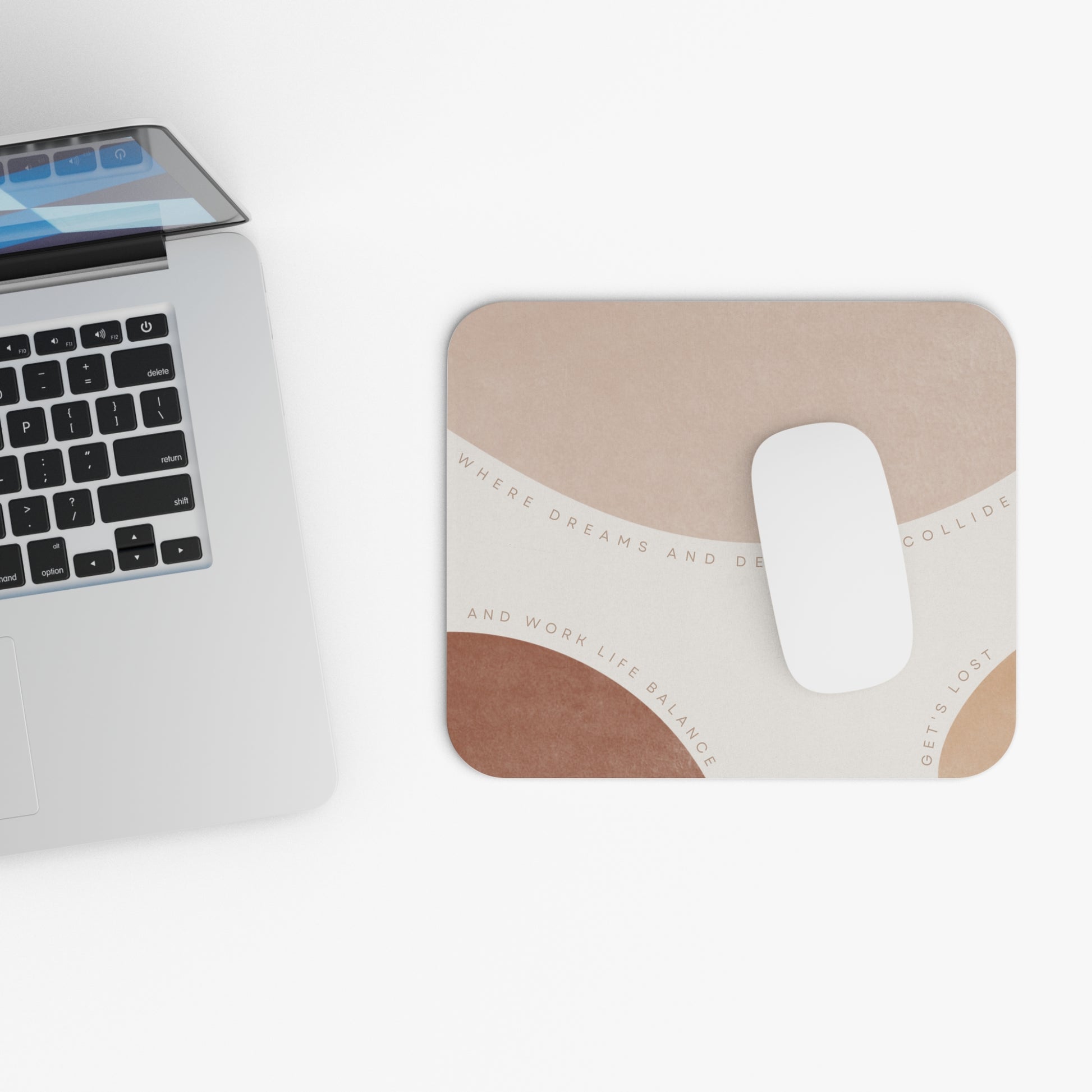 Introducing our 'Where Dreams and Deadlines Collide' Mousepad – because let's face it, work-life balance is like a unicorn, mythical and elusive. This isn't just a mousepad; it's a sarcastic nod to the chaos of modern life. Ever felt like you're juggling dreams, deadlines, and coffee just to stay sane? We get it. This mousepad gets it. Gift your co-workers, because they will get it.