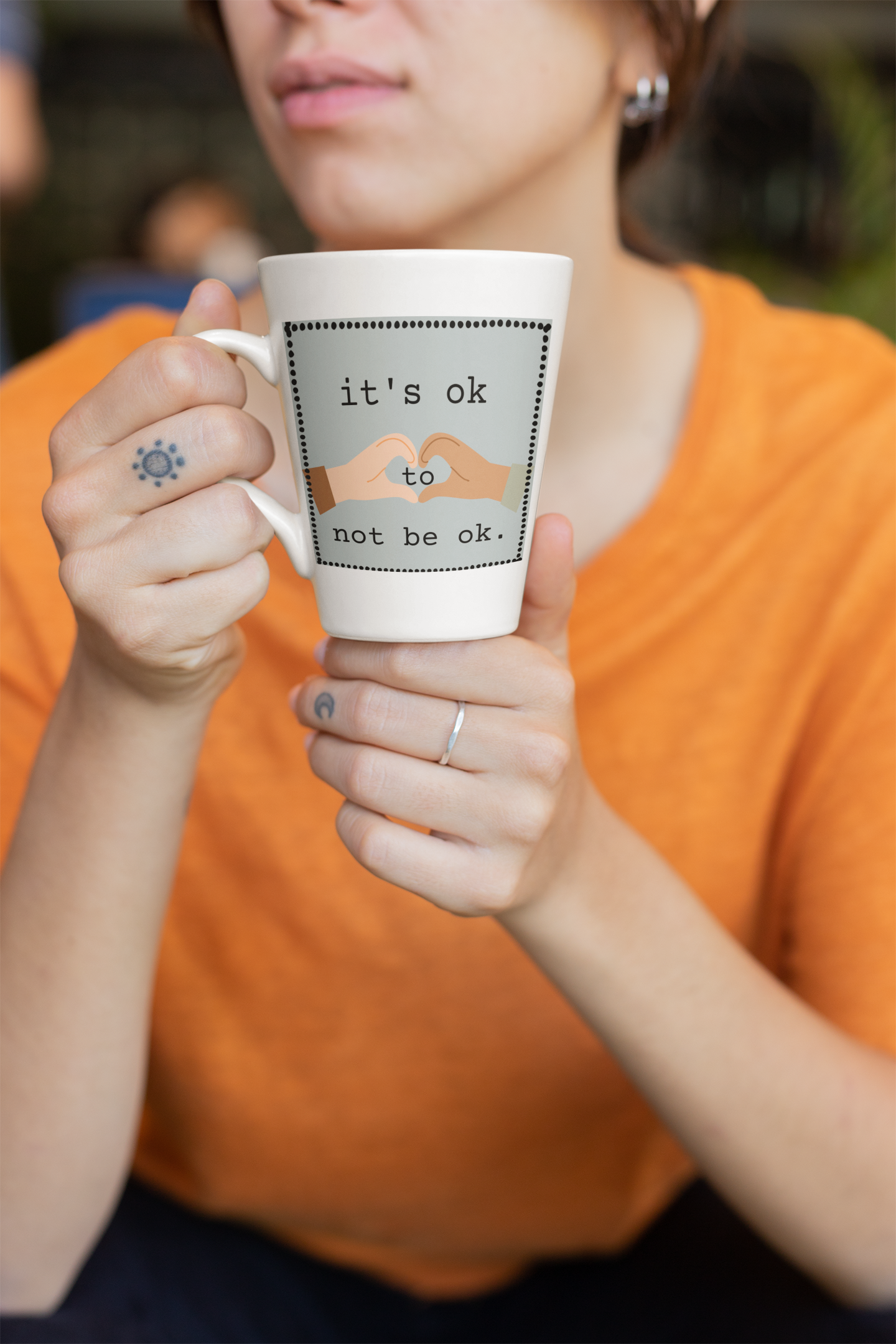 Hands and Heart Coffee Latte Mug is more than just a vessel for your favorite brew; it's a symbol of self-care and self-acceptance. Whether you're sipping your morning pick-me-up or enjoying a quiet moment, let this mug be a gentle reminder that it's okay to acknowledge your feelings, whatever they may be.