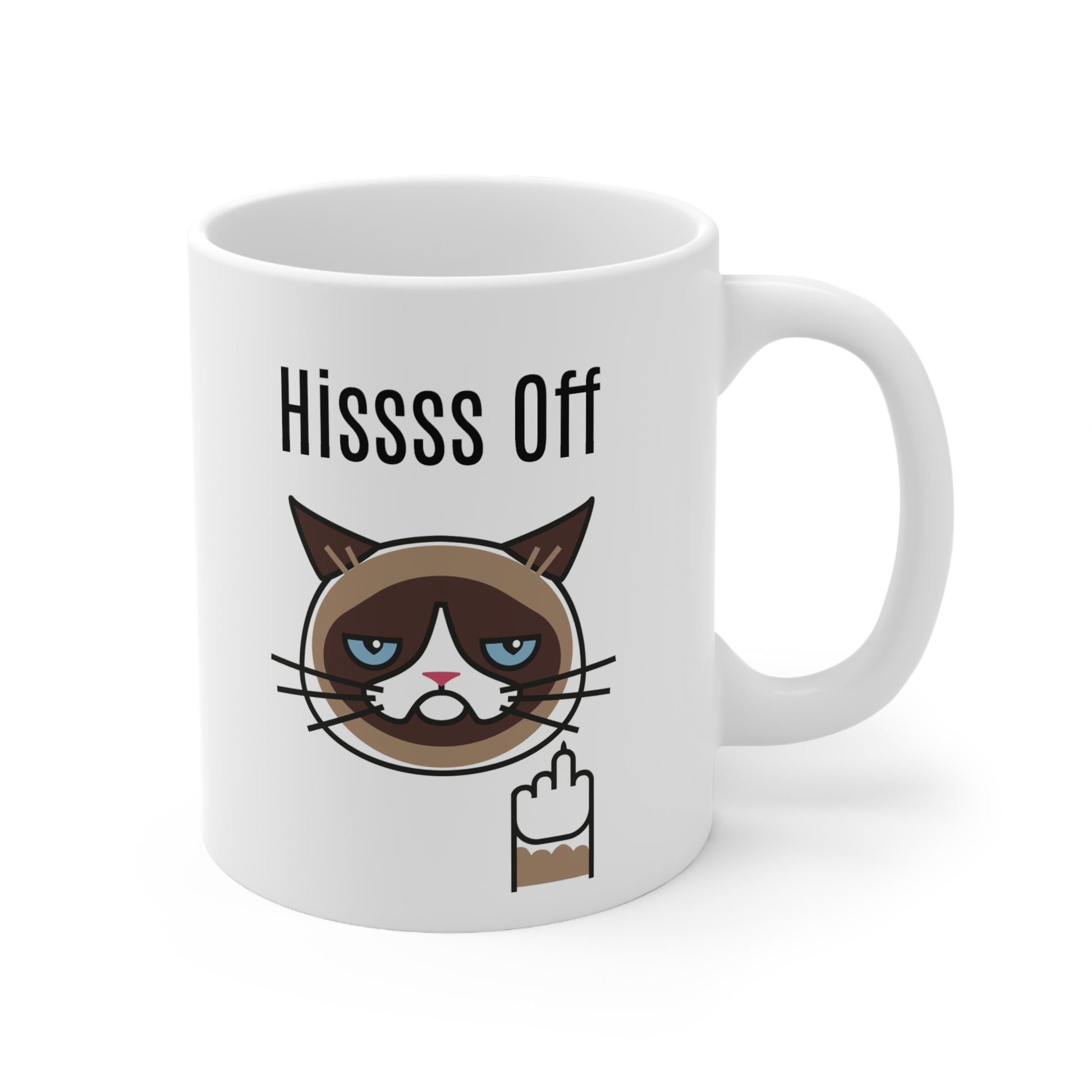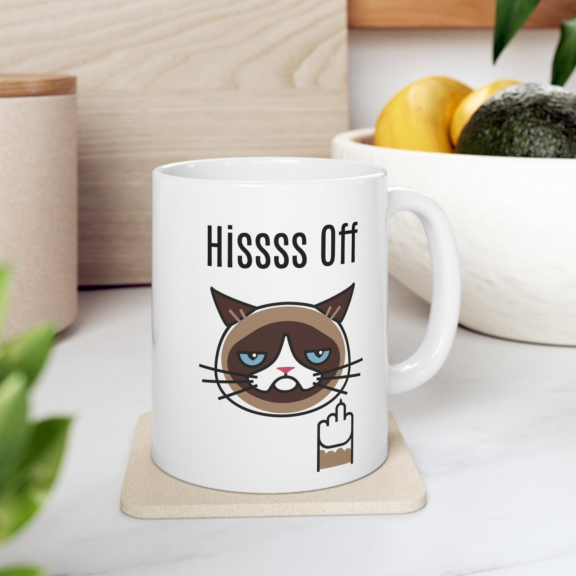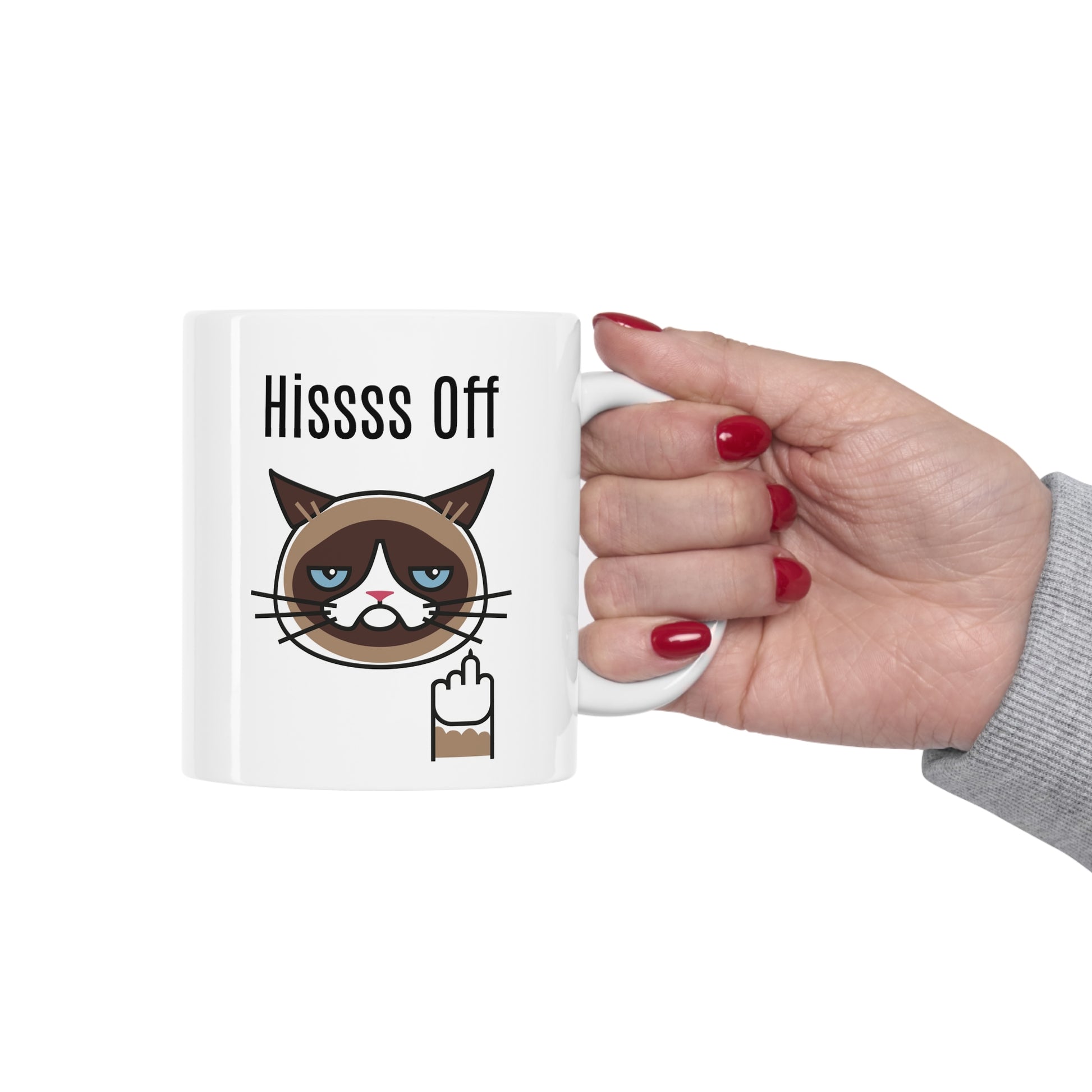 Ready to unleash some feline fury? Say hello to our "Hisss Off" Cat Mug – the mug that tells the world you won't take any BS, just like your badass feline friend! This mug is all about giving a sassy, in-your-face message to those who dare to disturb your cat-coffee time.