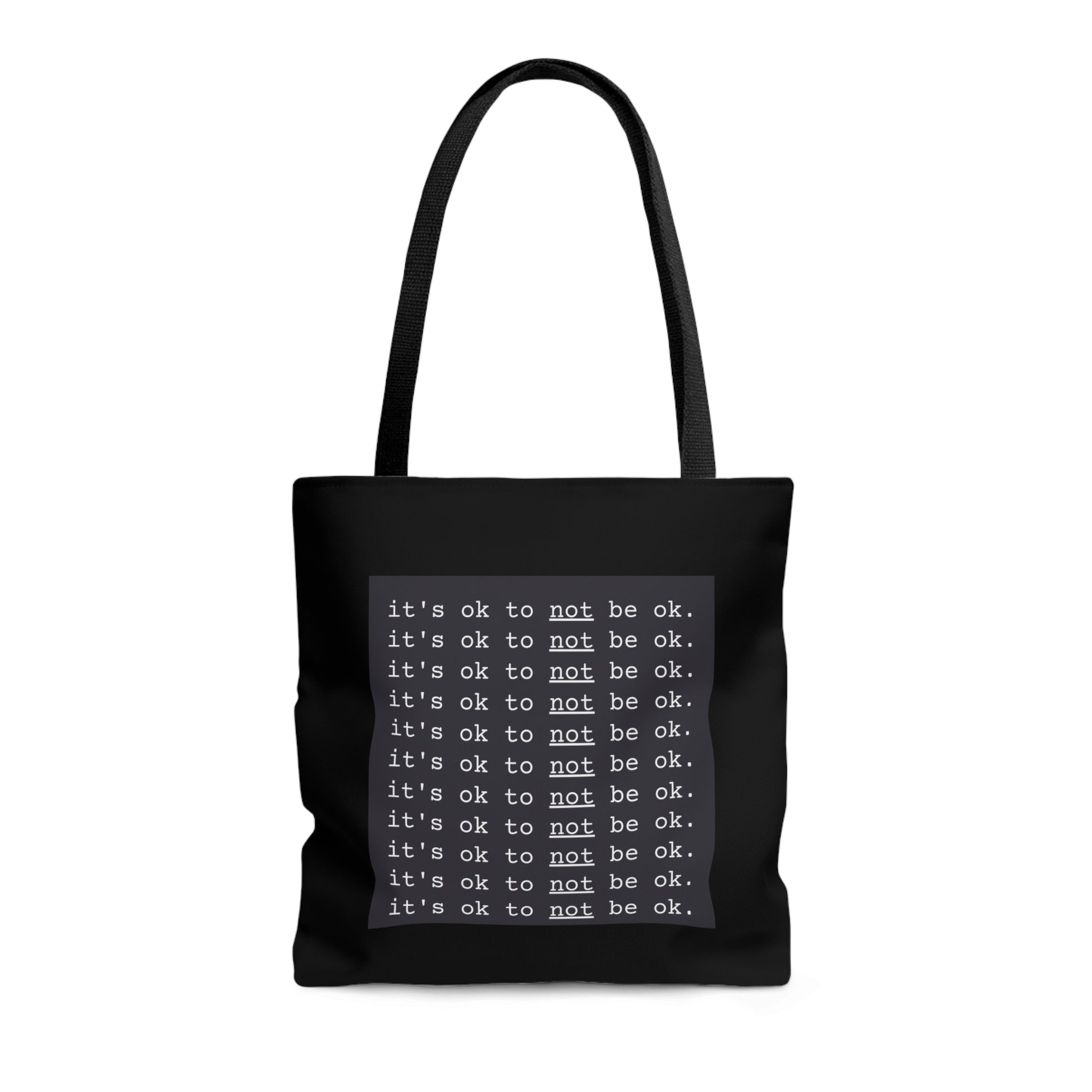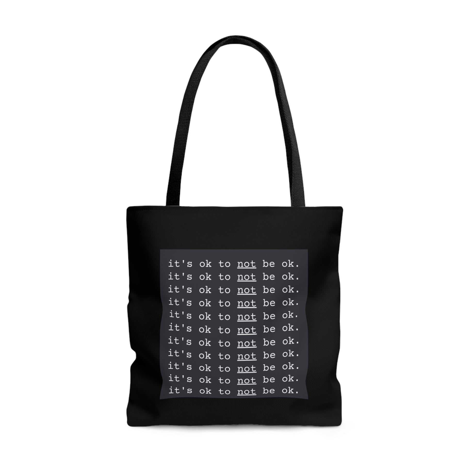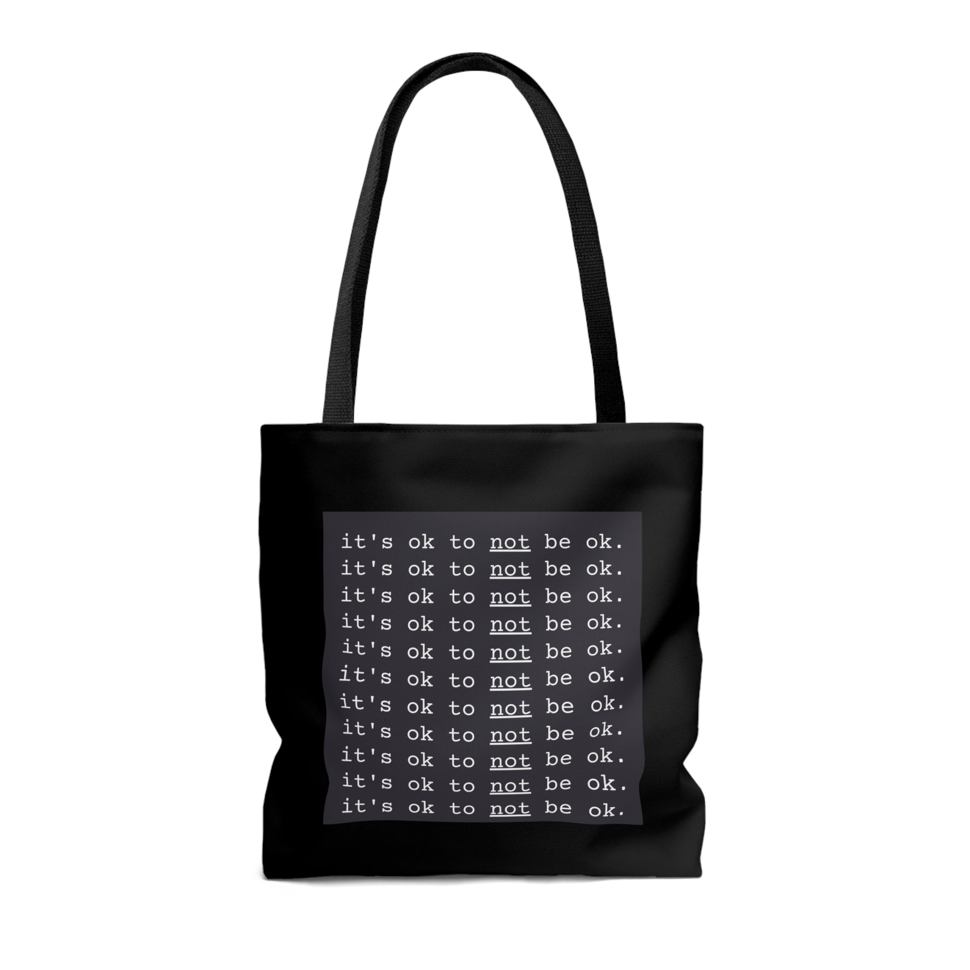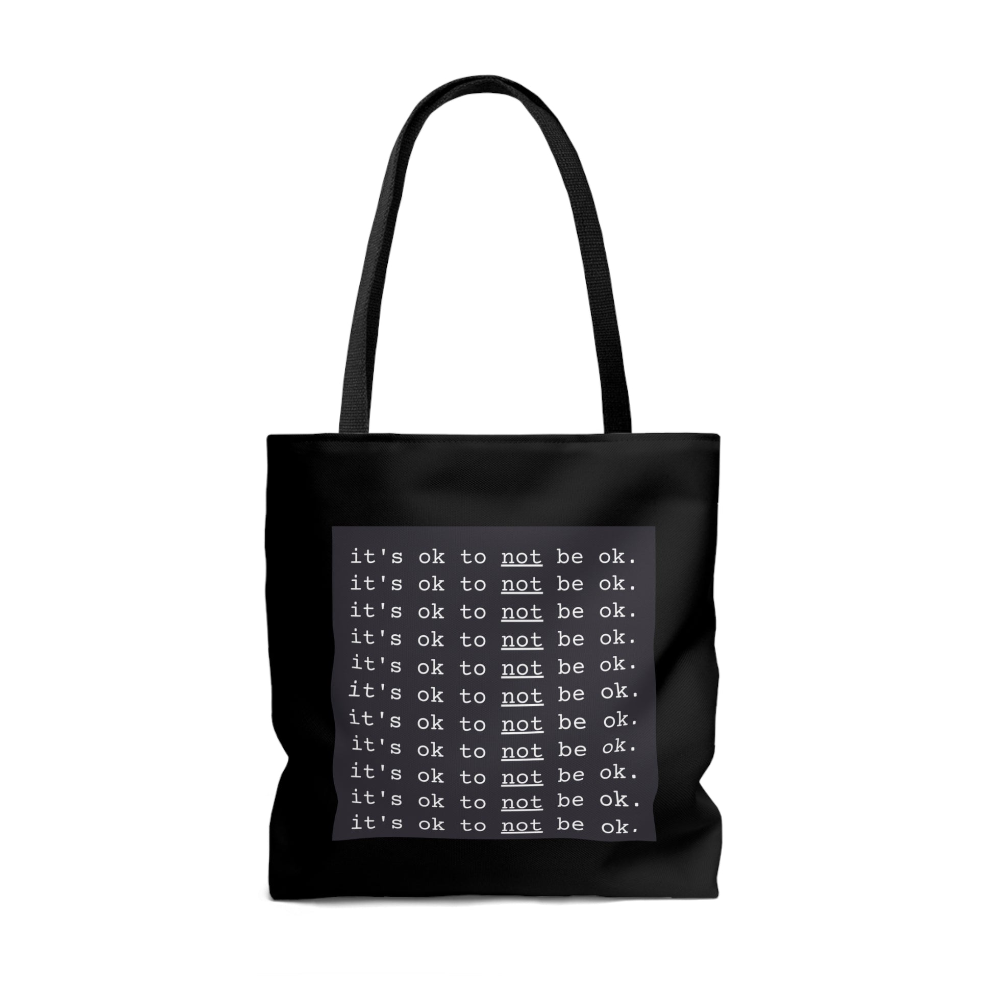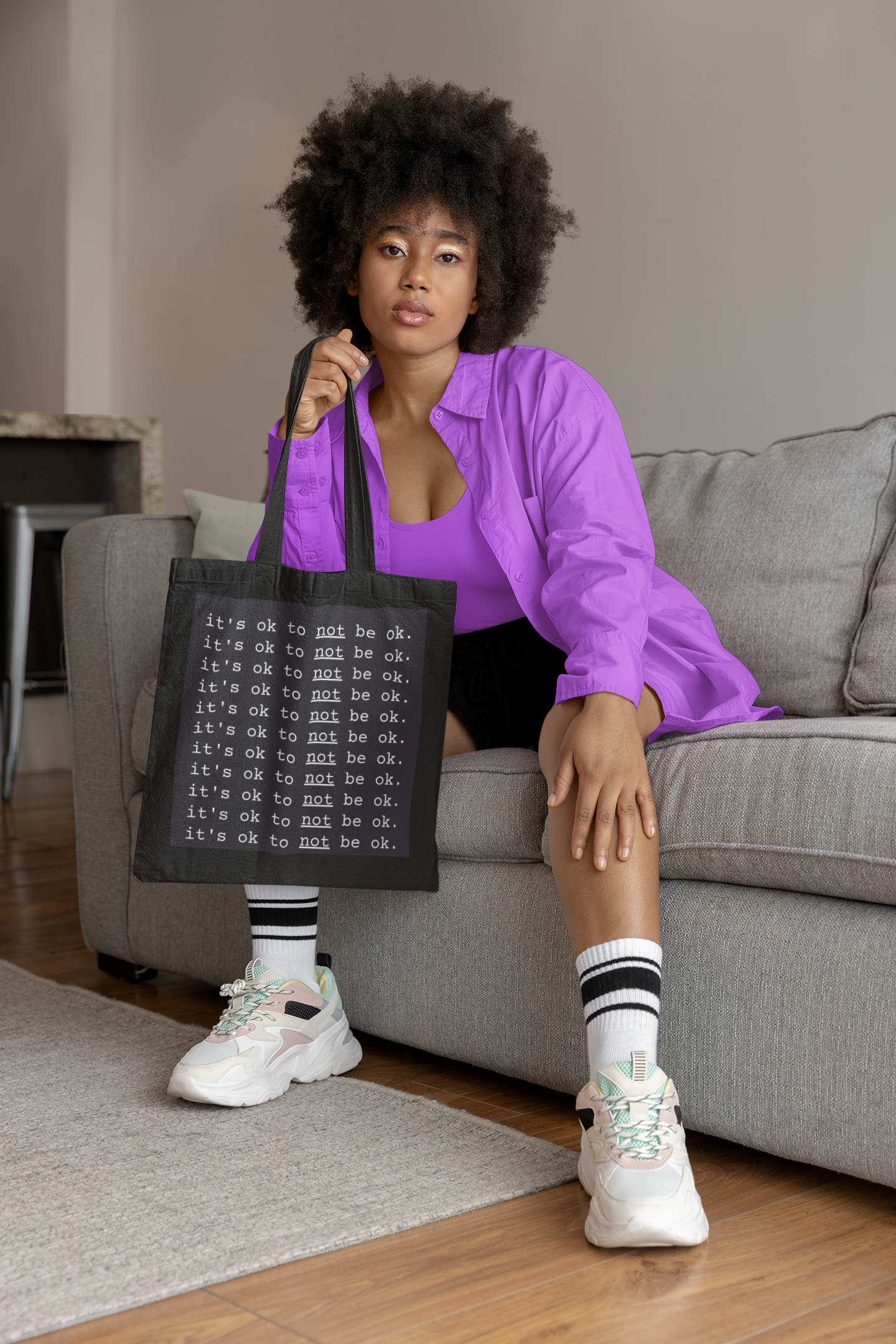 "It's Okay to Not Be Okay" Black Tote Bag, a powerful statement of self-acceptance and mental health awareness. This stylish and versatile tote is designed to remind you that it's alright to embrace your emotions and prioritize your well-being.