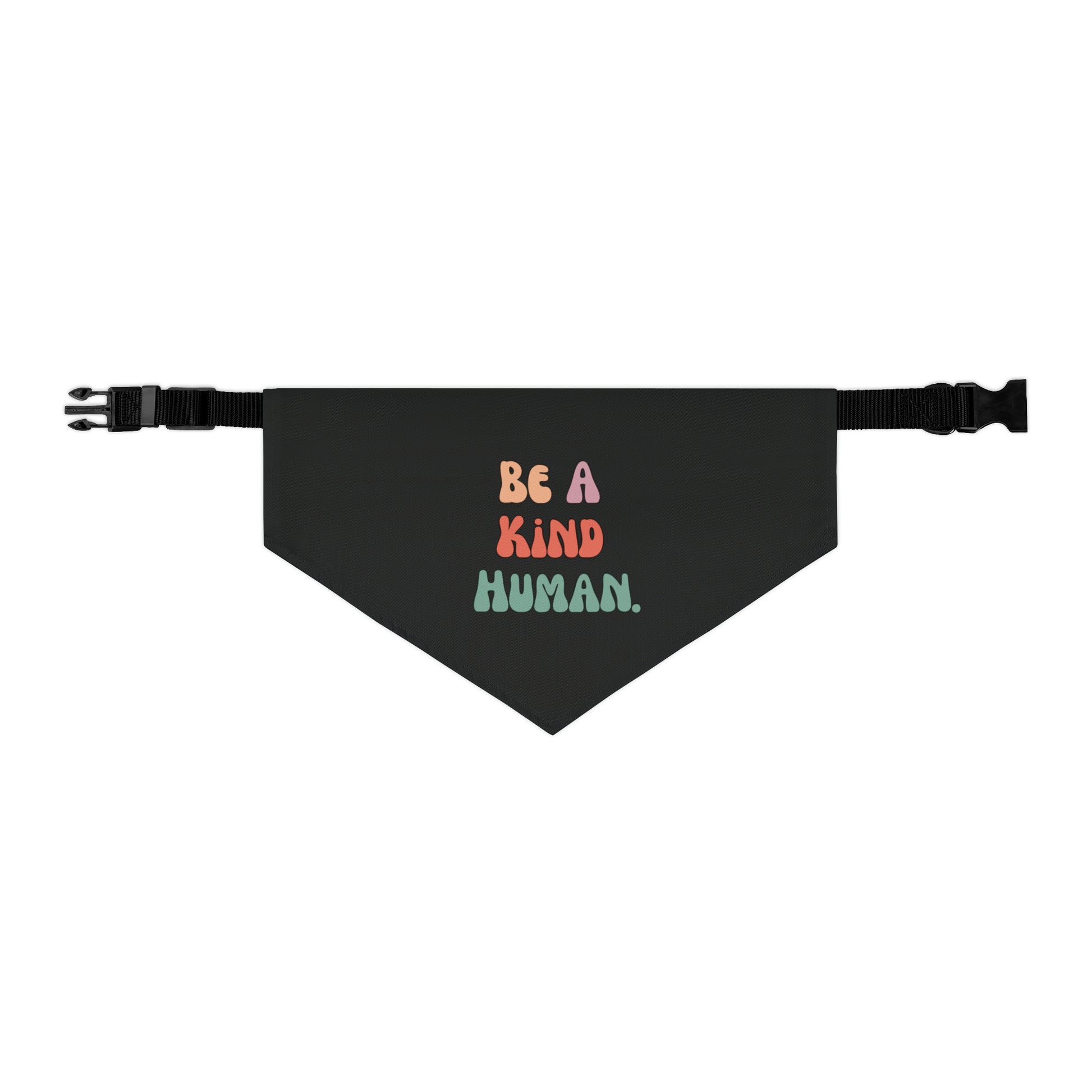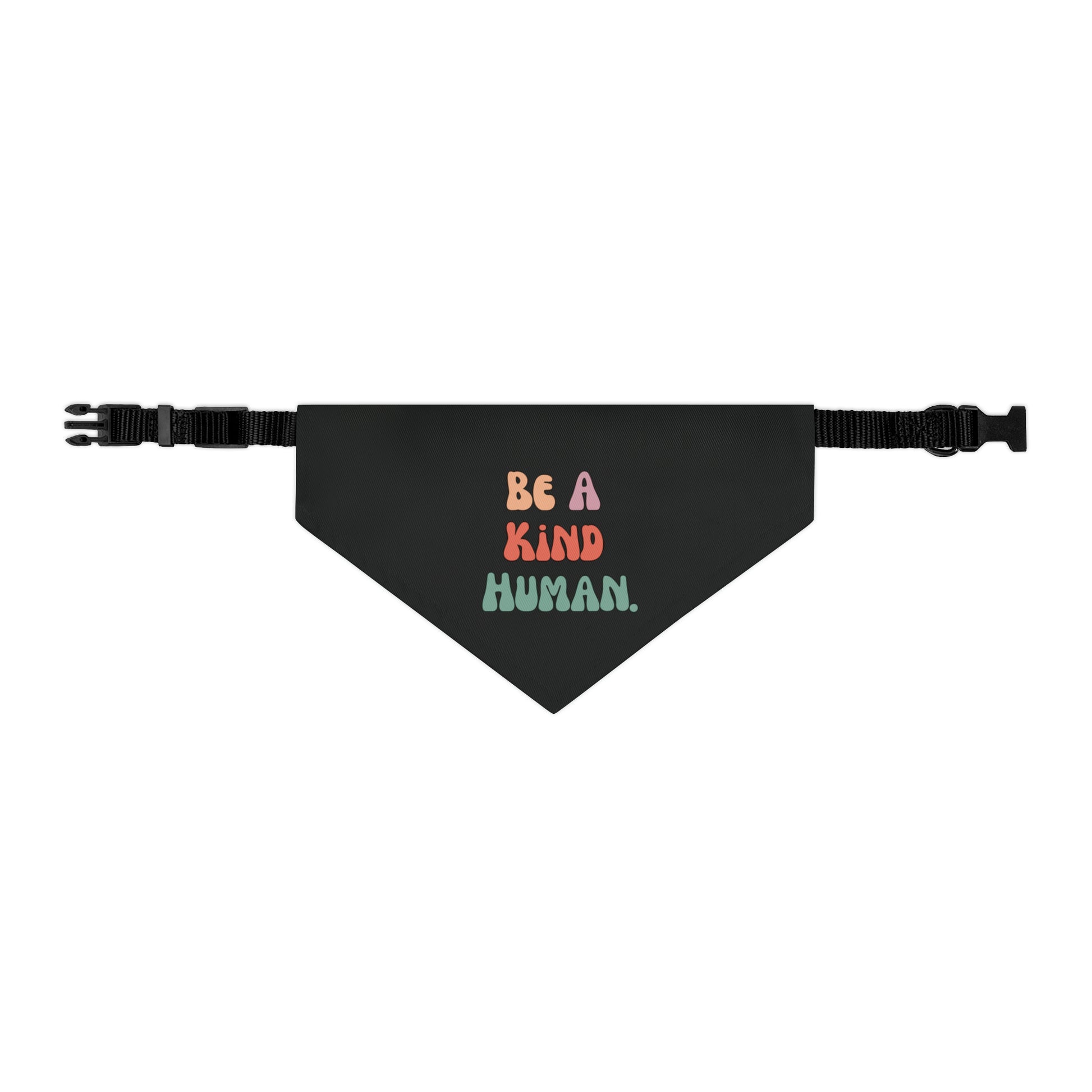 This pet bandana isn't just an accessory; it's a call to action. When your pet proudly wears the "Be a Kind Human" bandana, it spreads a message of love and positivity wherever they go. It's a reminder that small acts of kindness can make a big difference, and that your pet is a shining example of unconditional love.
