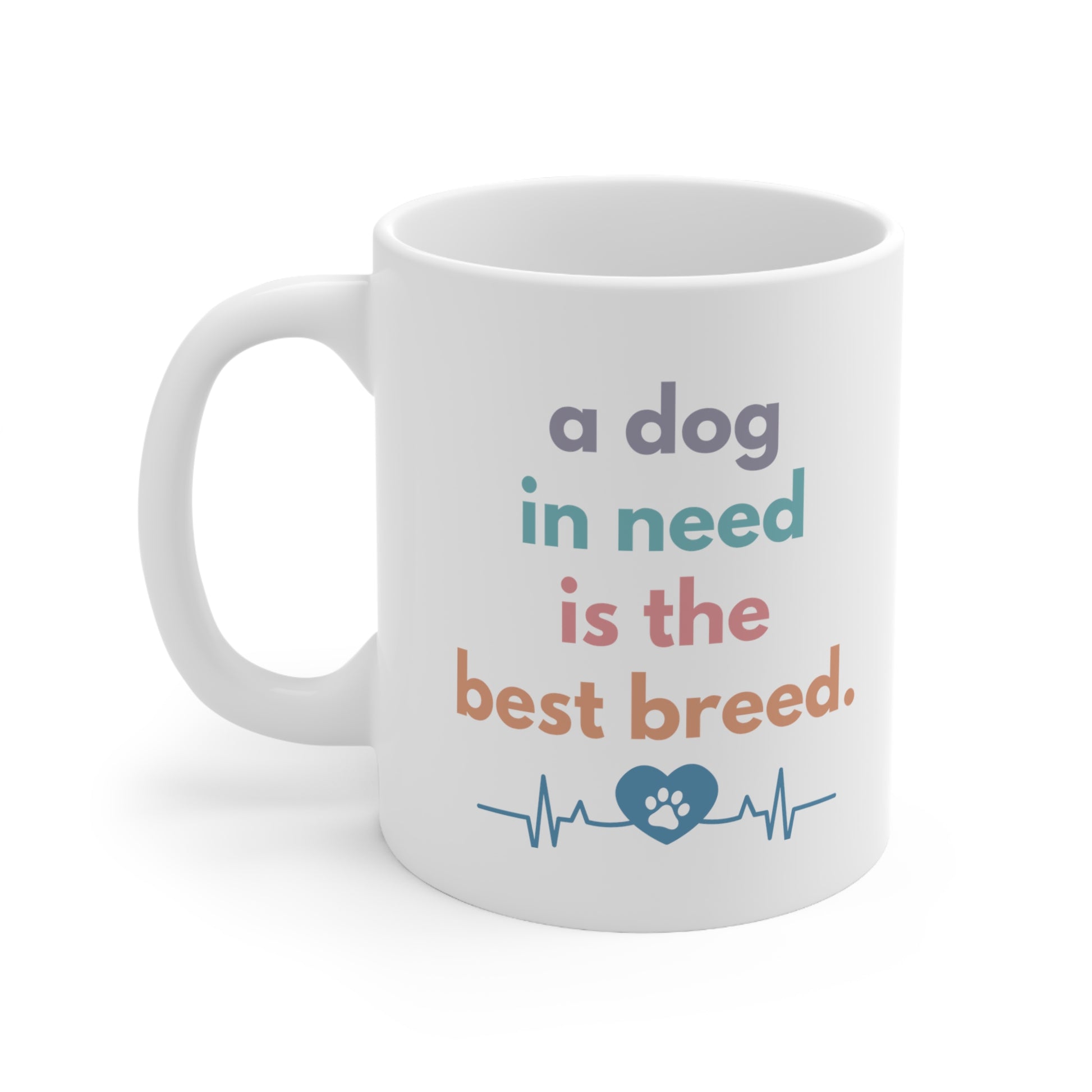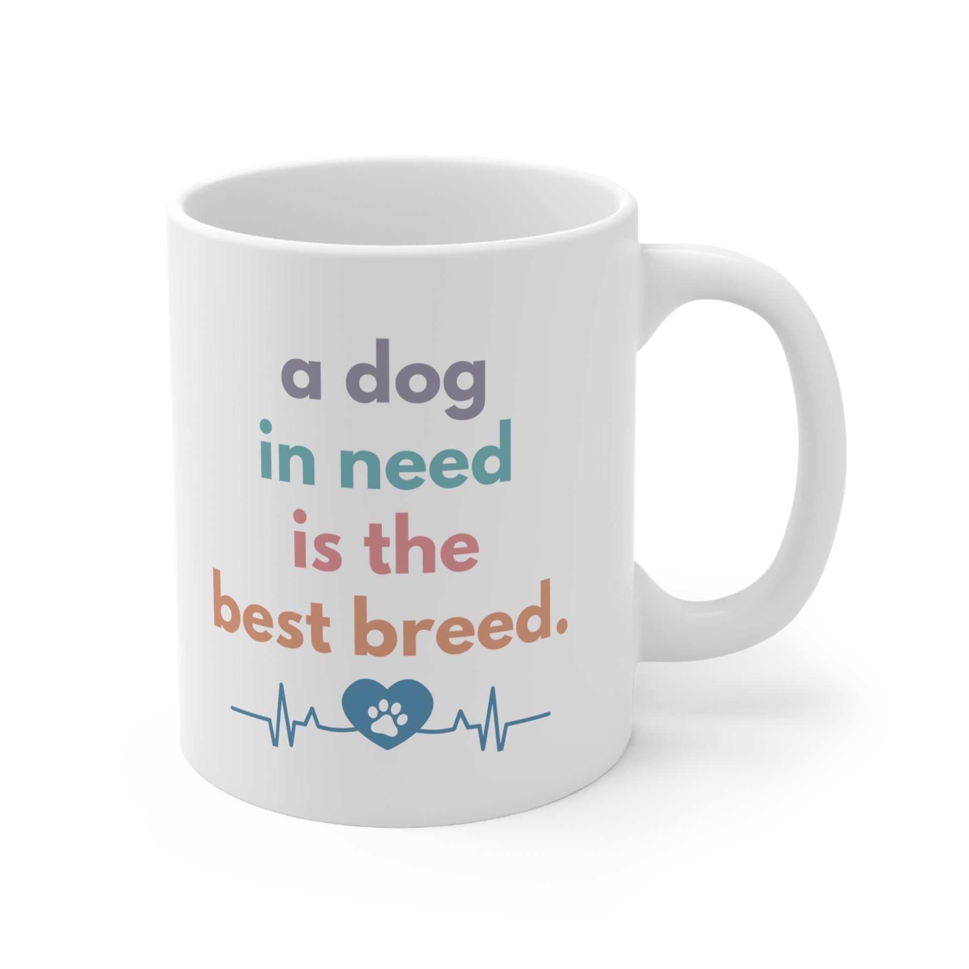 "A Dog in Need Is the Best Breed," proudly displayed on the bag, celebrates the uniqueness of rescue dogs and their incredible capacity for love. Carry this bag to raise awareness for animal adoption and welfare.