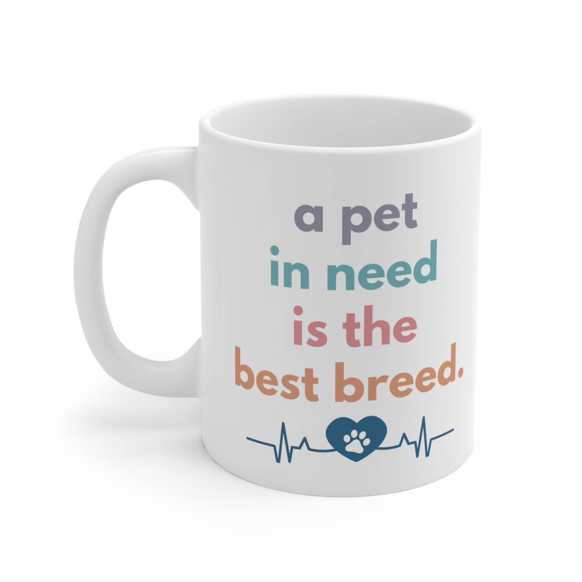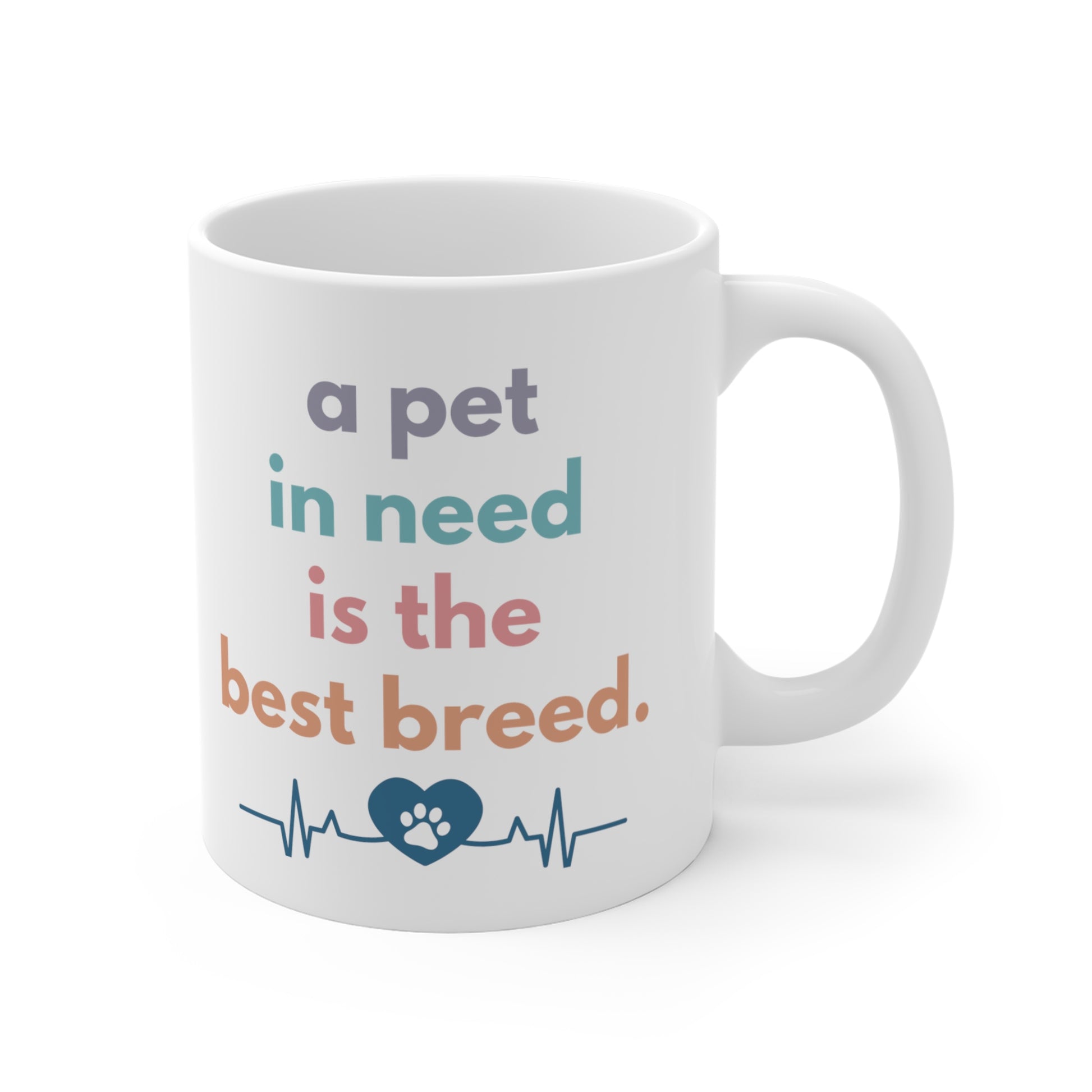 "A Pet in Need Is the Best Breed," proudly displayed on the bag, celebrates the uniqueness of pets and their incredible capacity for love. Carry this bag to raise awareness for animal adoption and welfare.
