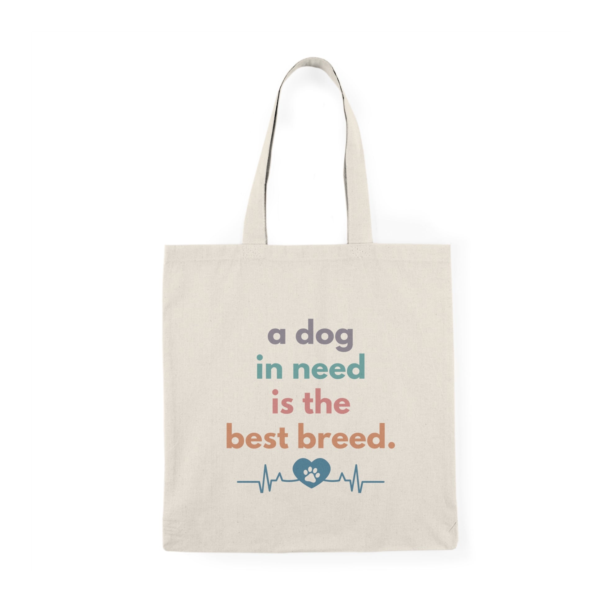 "A Dog in Need Is the Best Breed," proudly displayed on the bag, celebrates the uniqueness of rescue dogs and their incredible capacity for love. Carry this bag to raise awareness for animal adoption and welfare.