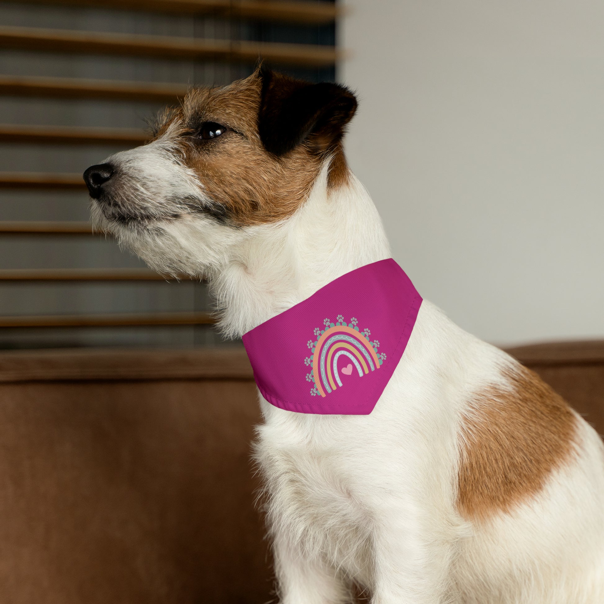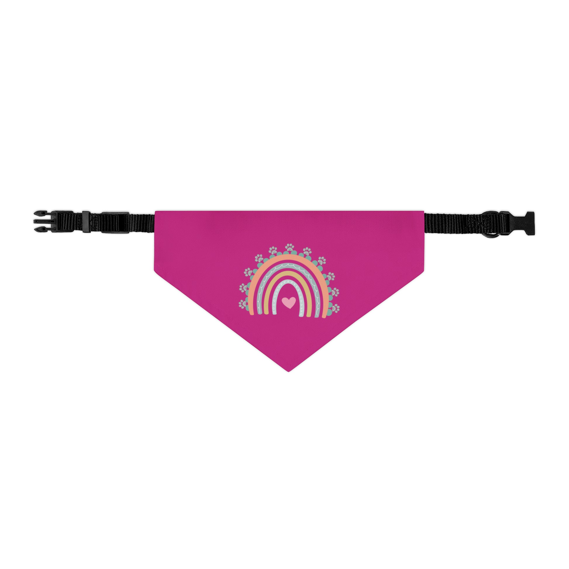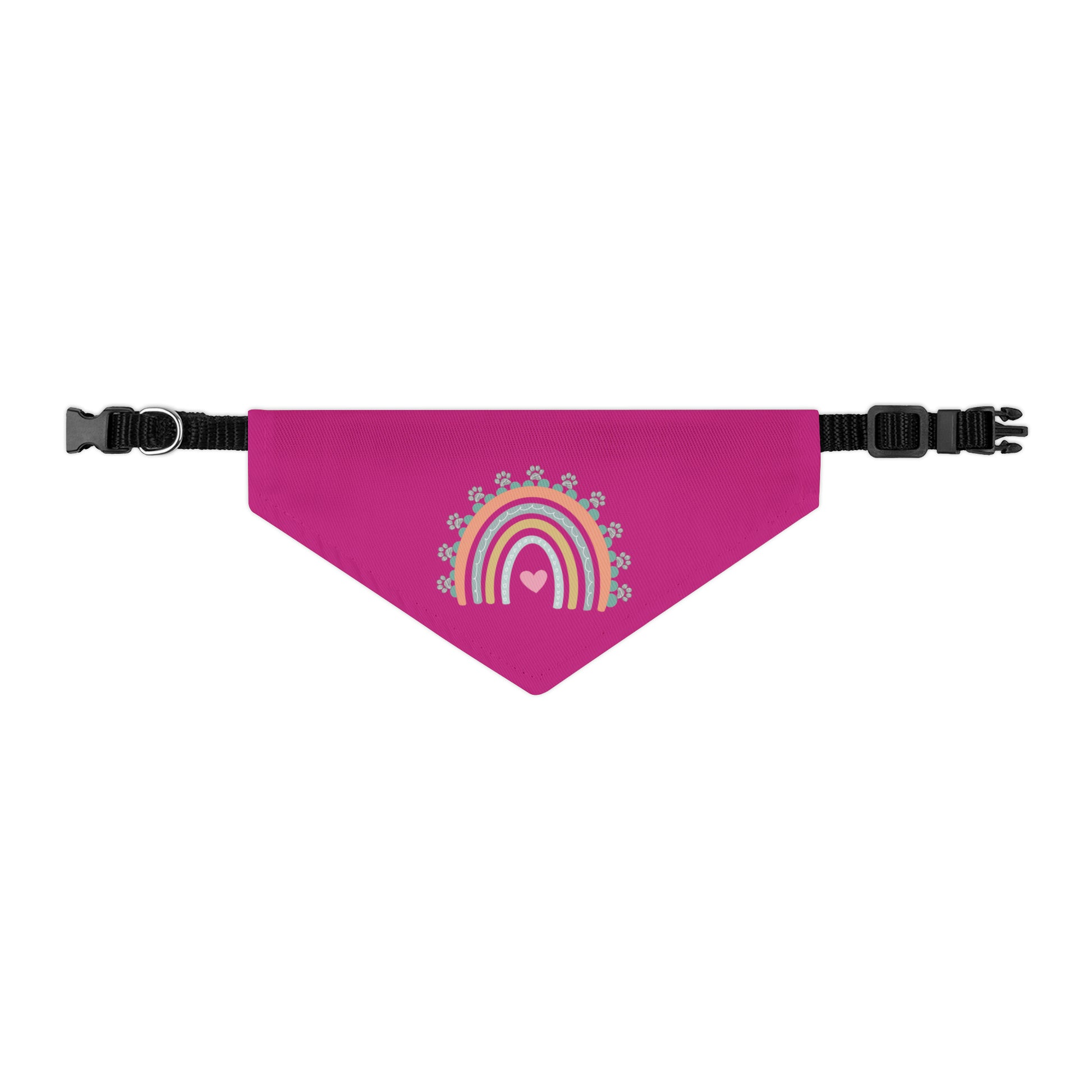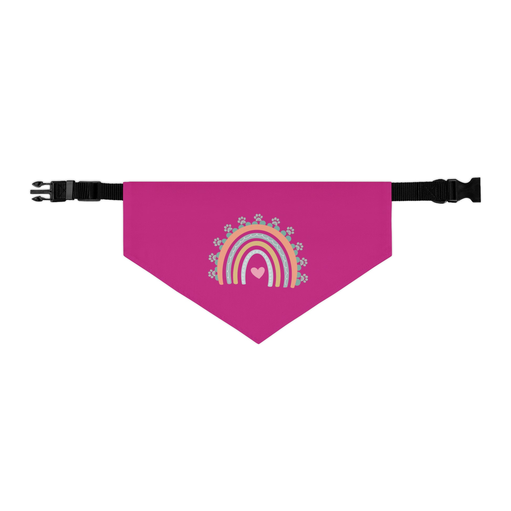 Make your furry friend stand out with our vibrant Rainbow Pawprint Pet Bandana! This stylish and adorable accessory is perfect for adding a touch of color and personality to your pet's wardrobe. This bandana captures the spirit of joy and playfulness. It's crafted with care using soft, high-quality fabric to ensure comfort for your pet throughout the day.