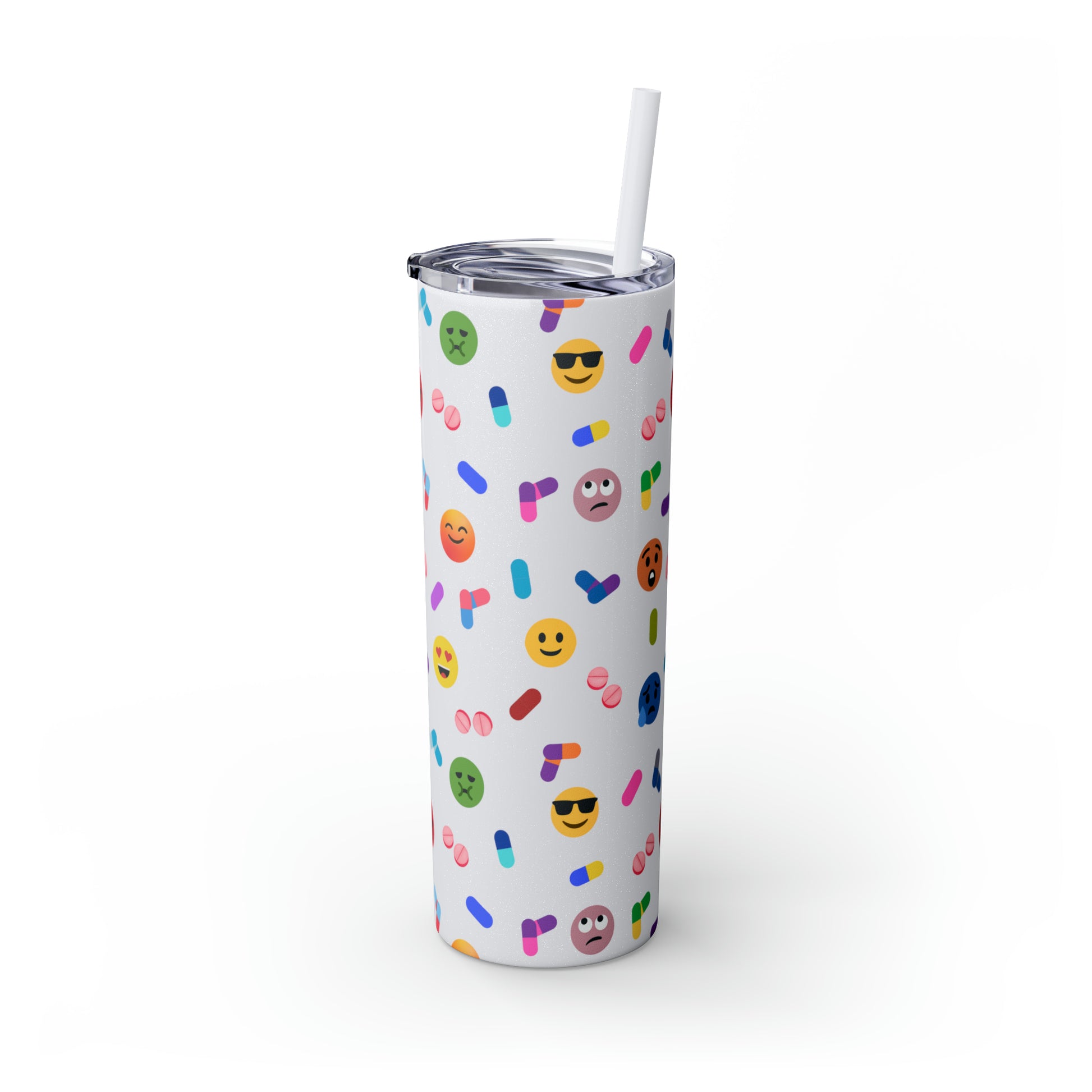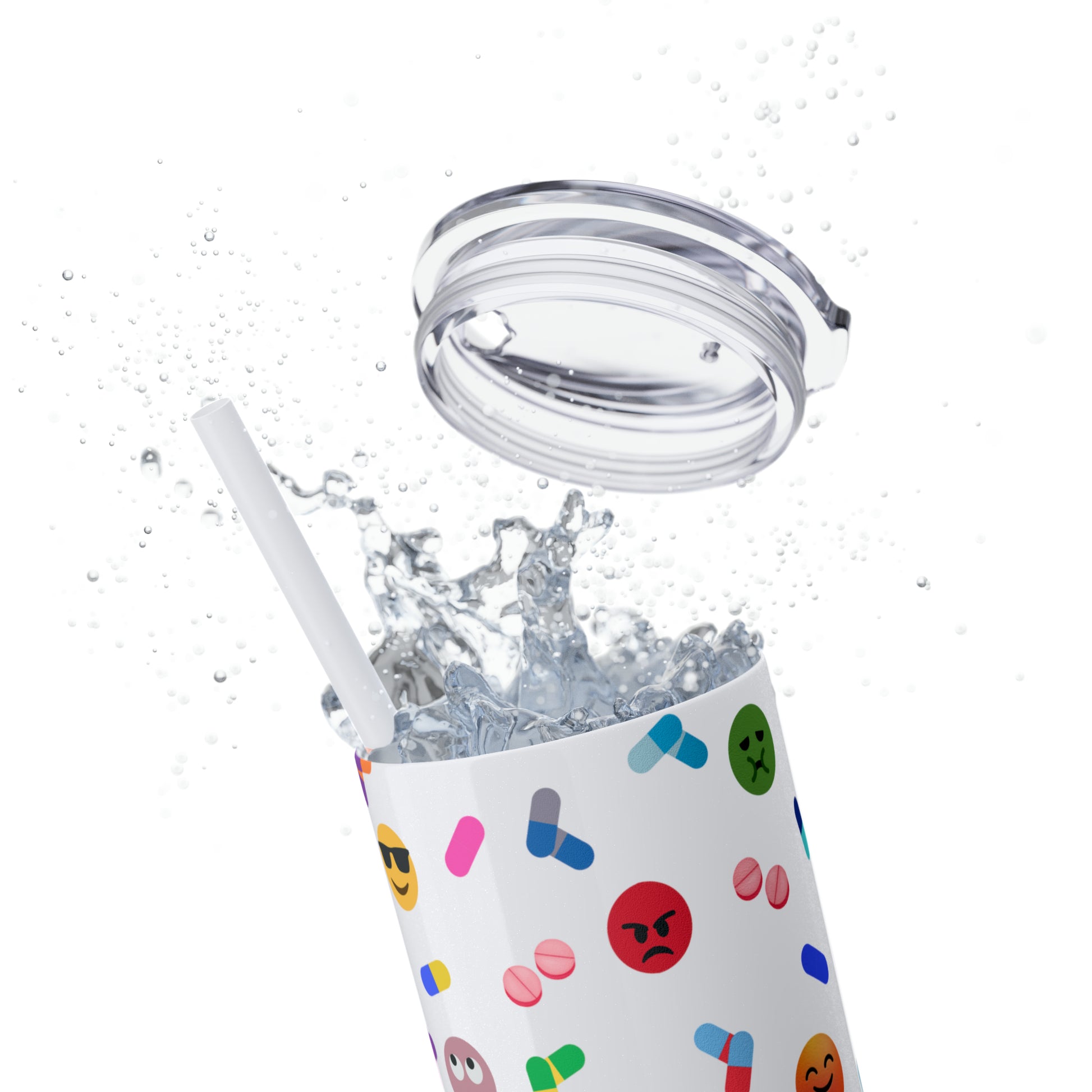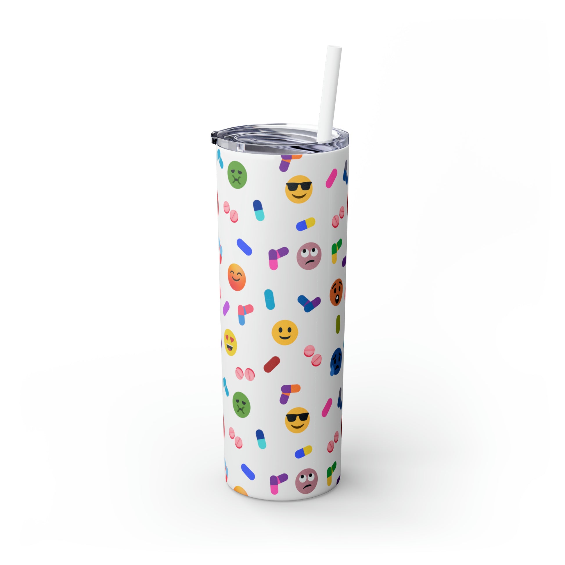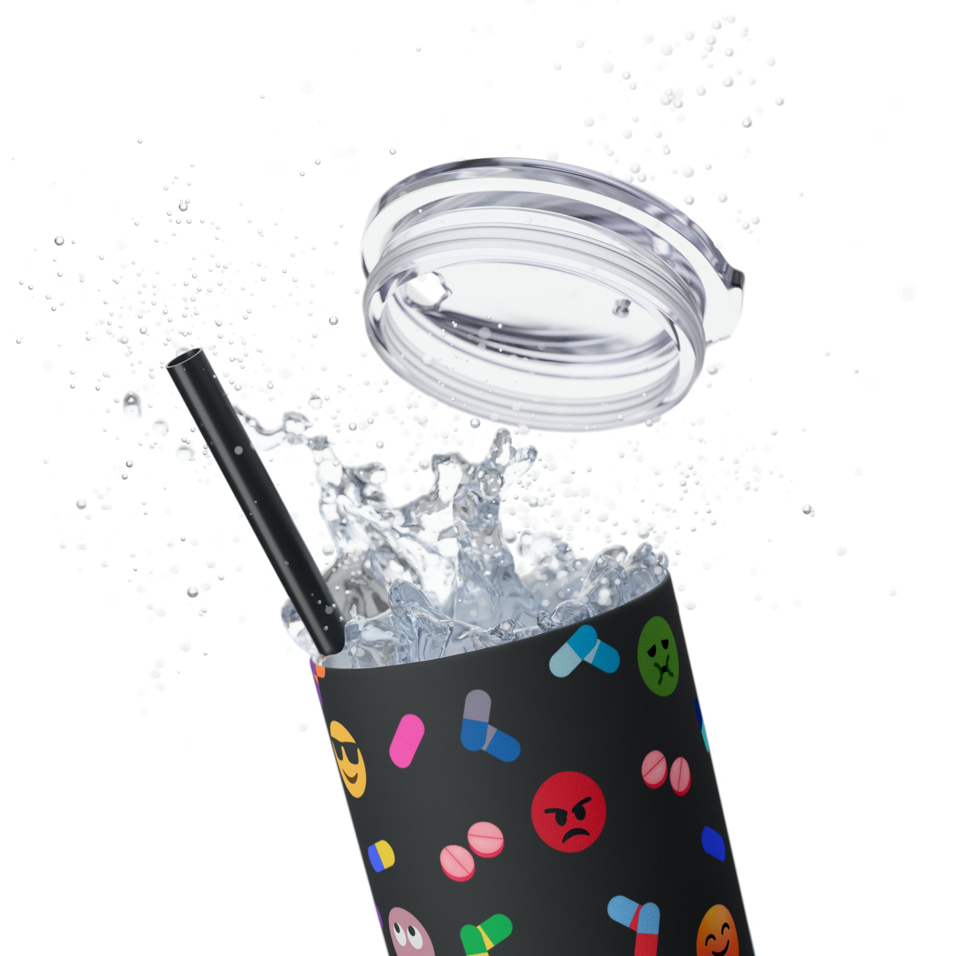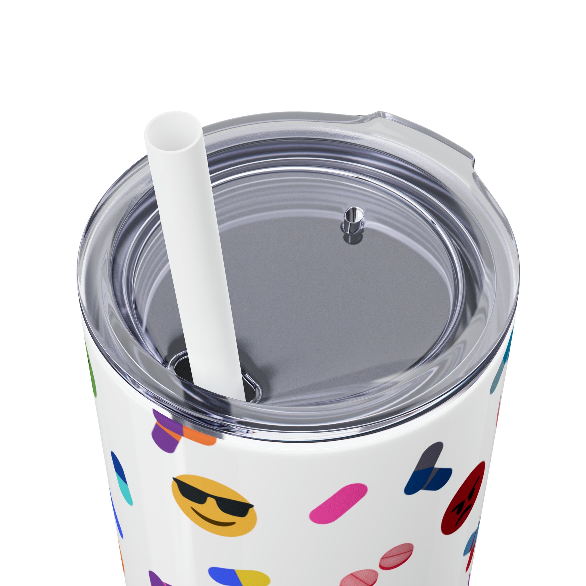 Pill-Popping Positivity Skinny Tumbler with Straw 20 oz (multiple colors)
