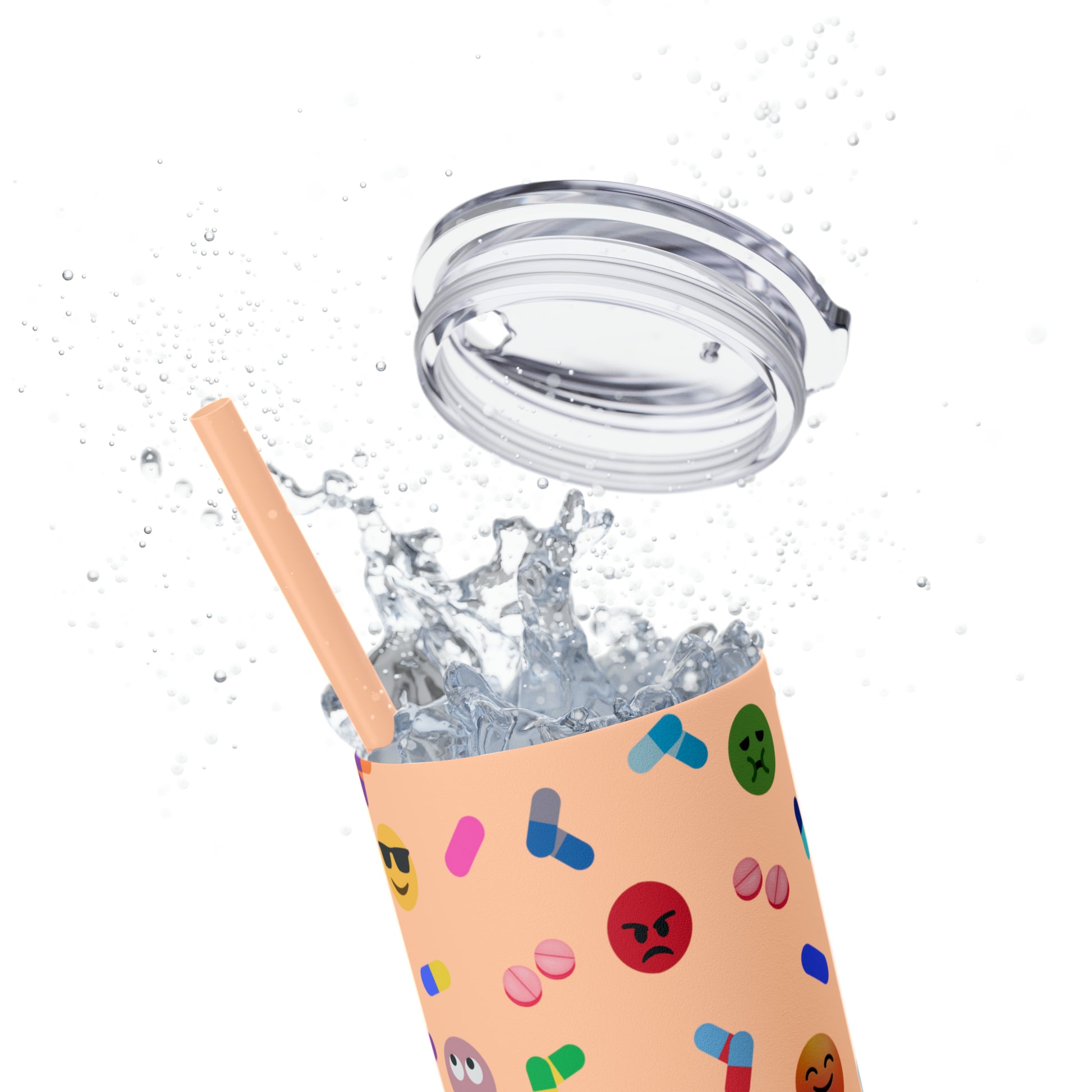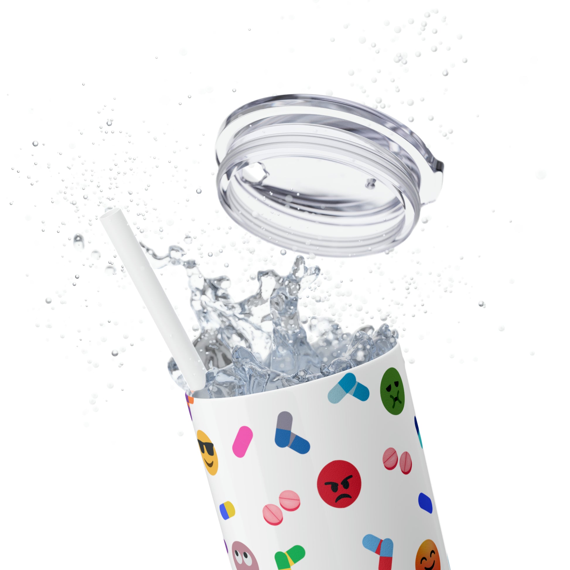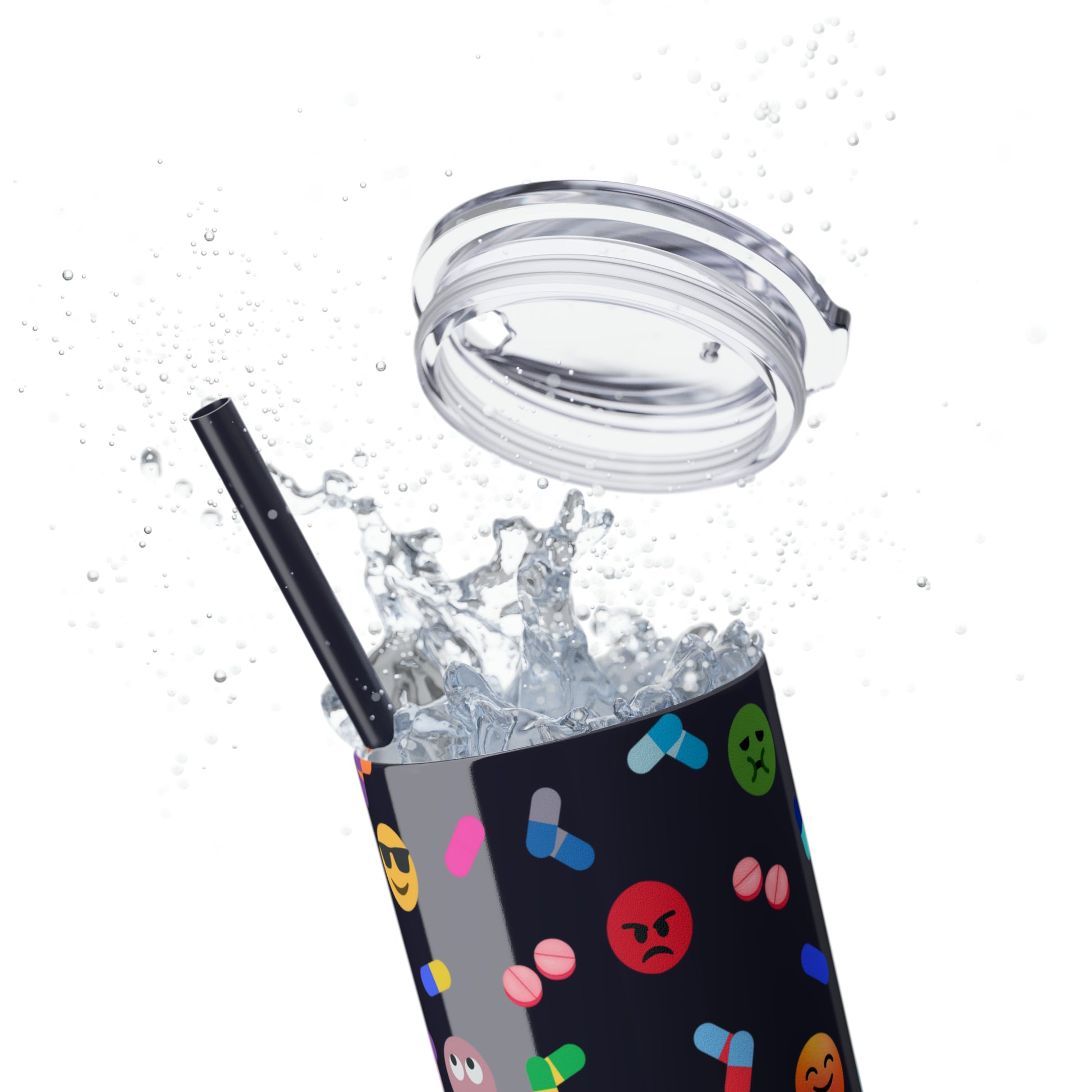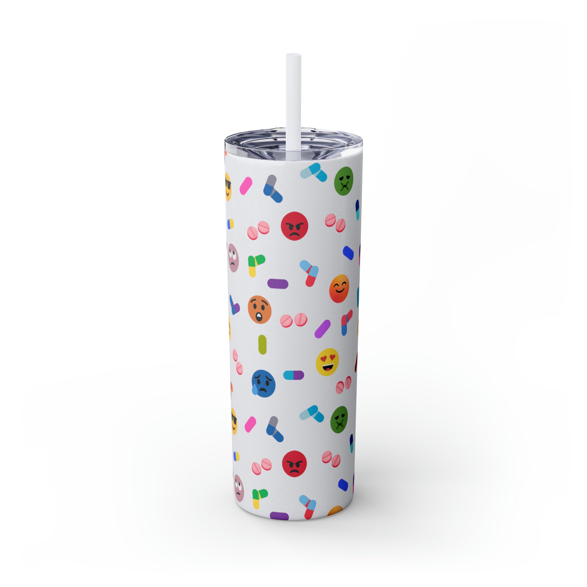 Pill-Popping Positivity Skinny Tumbler with Straw 20 oz (multiple colors)
