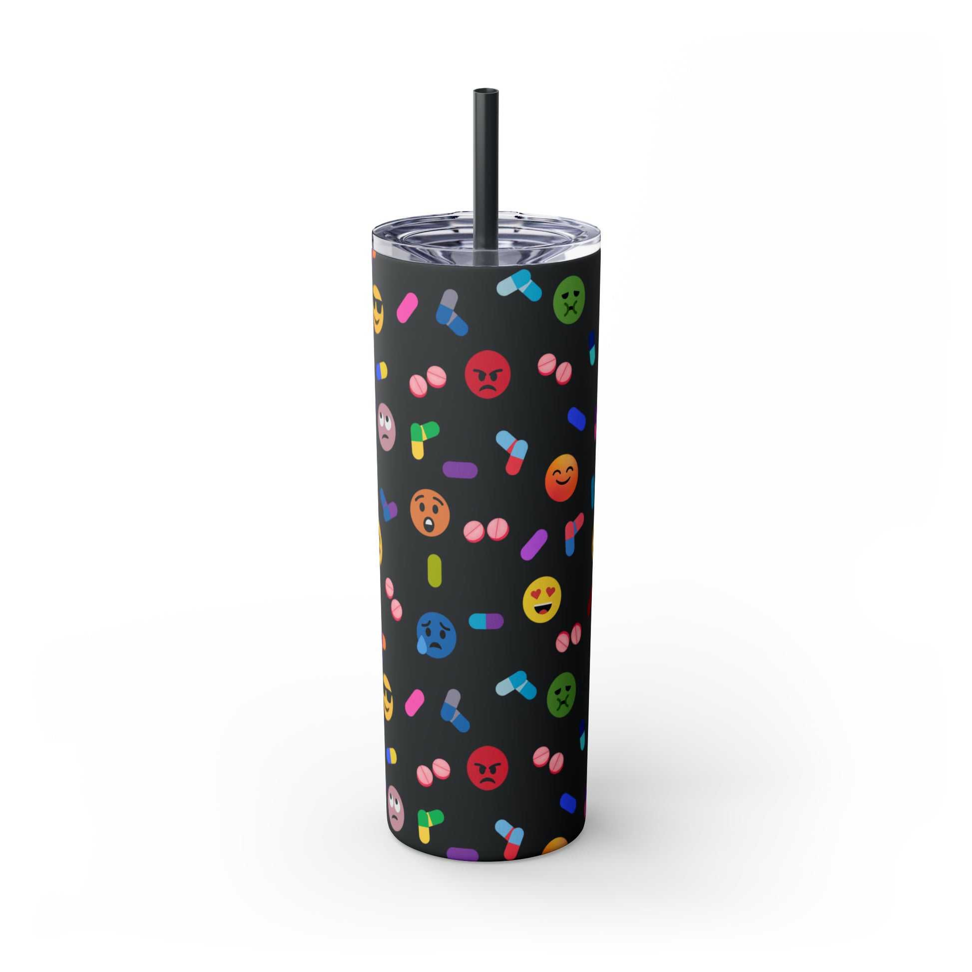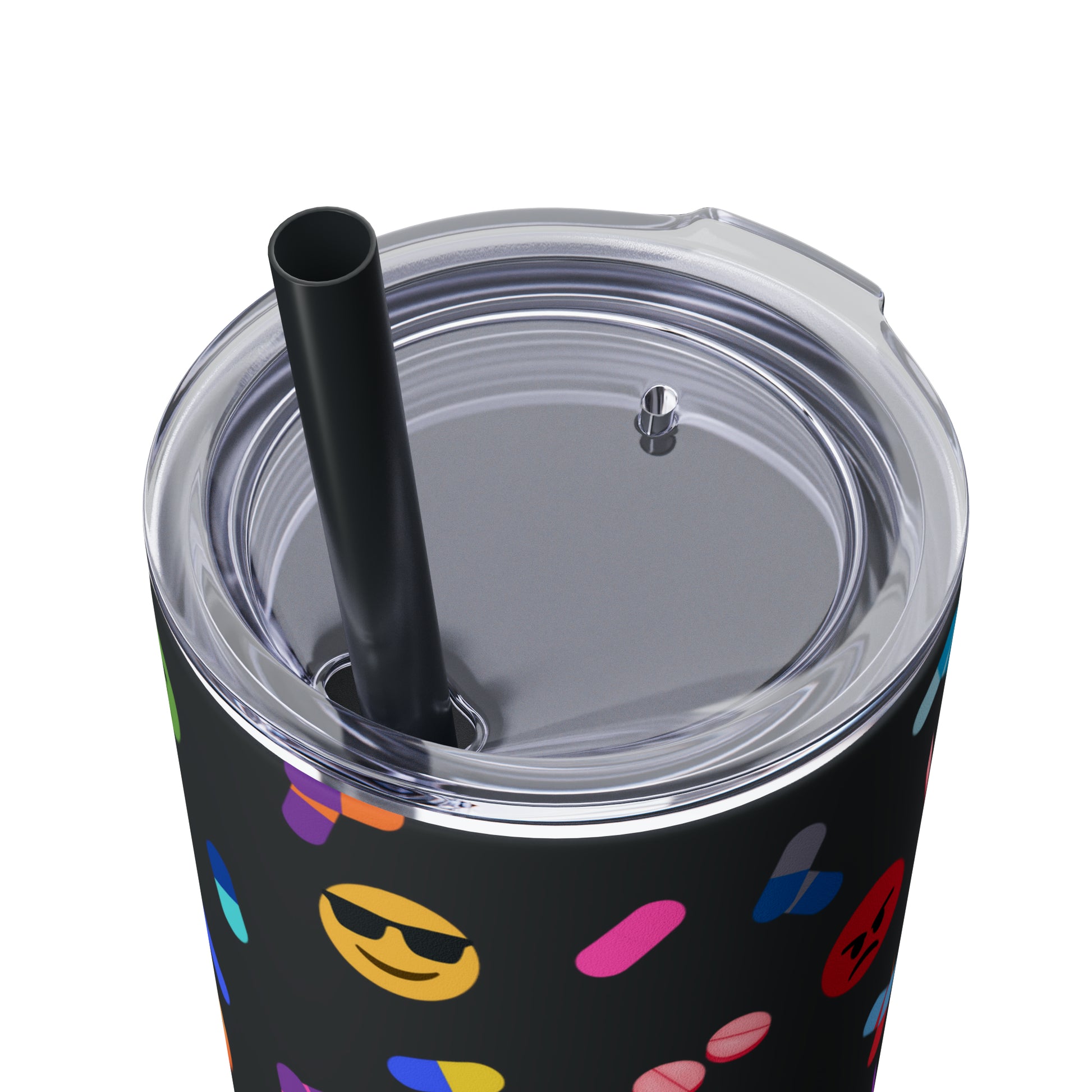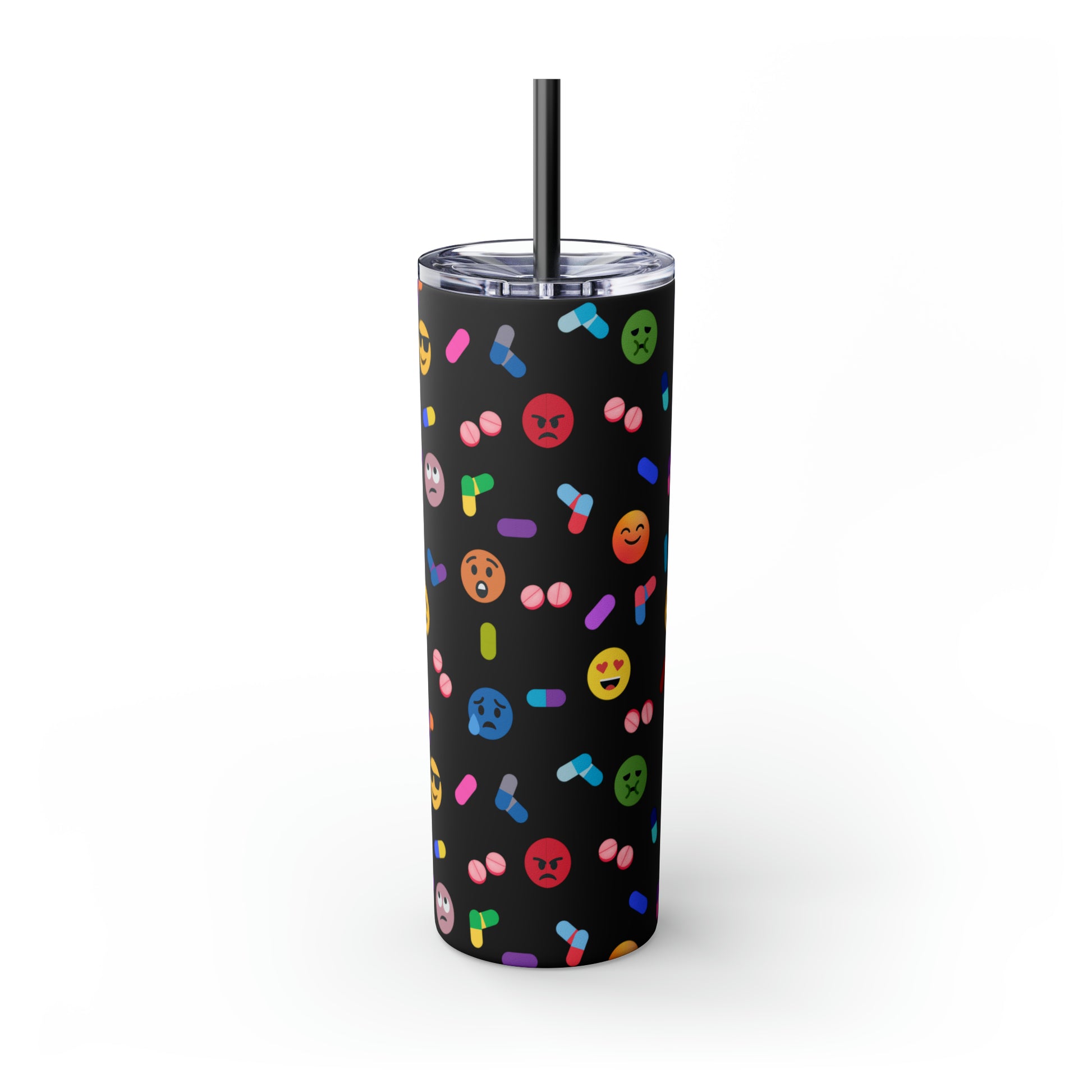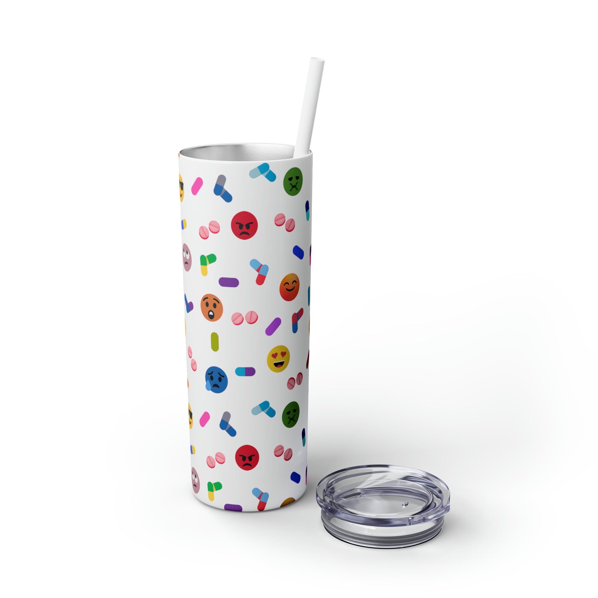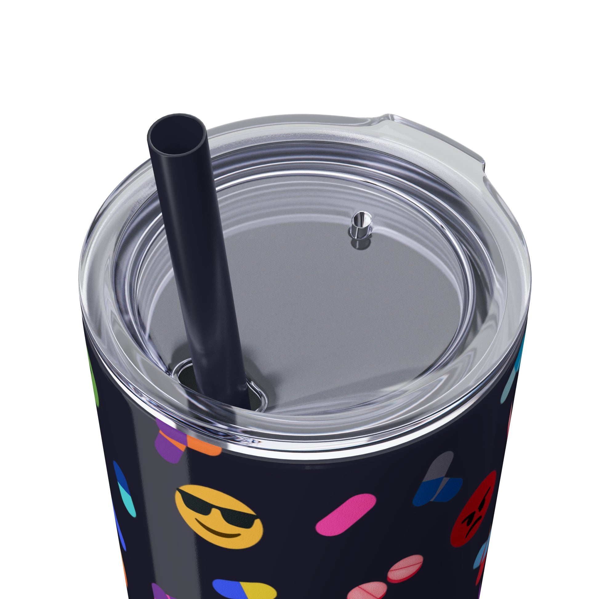 Pill-Popping Positivity Skinny Tumbler with Straw 20 oz (multiple colors)