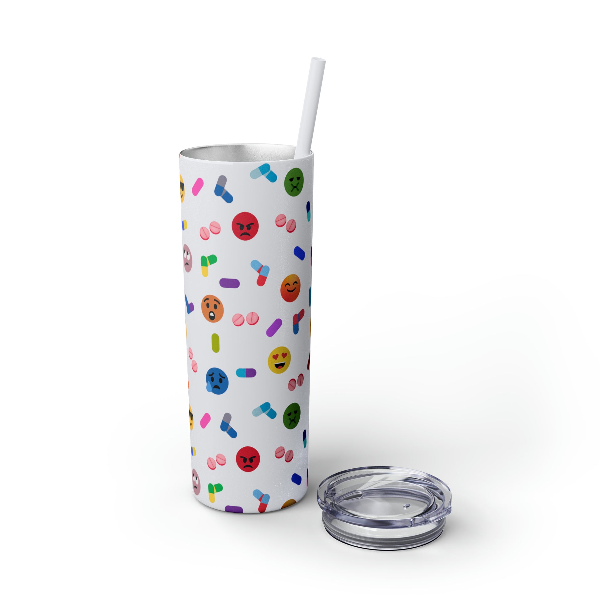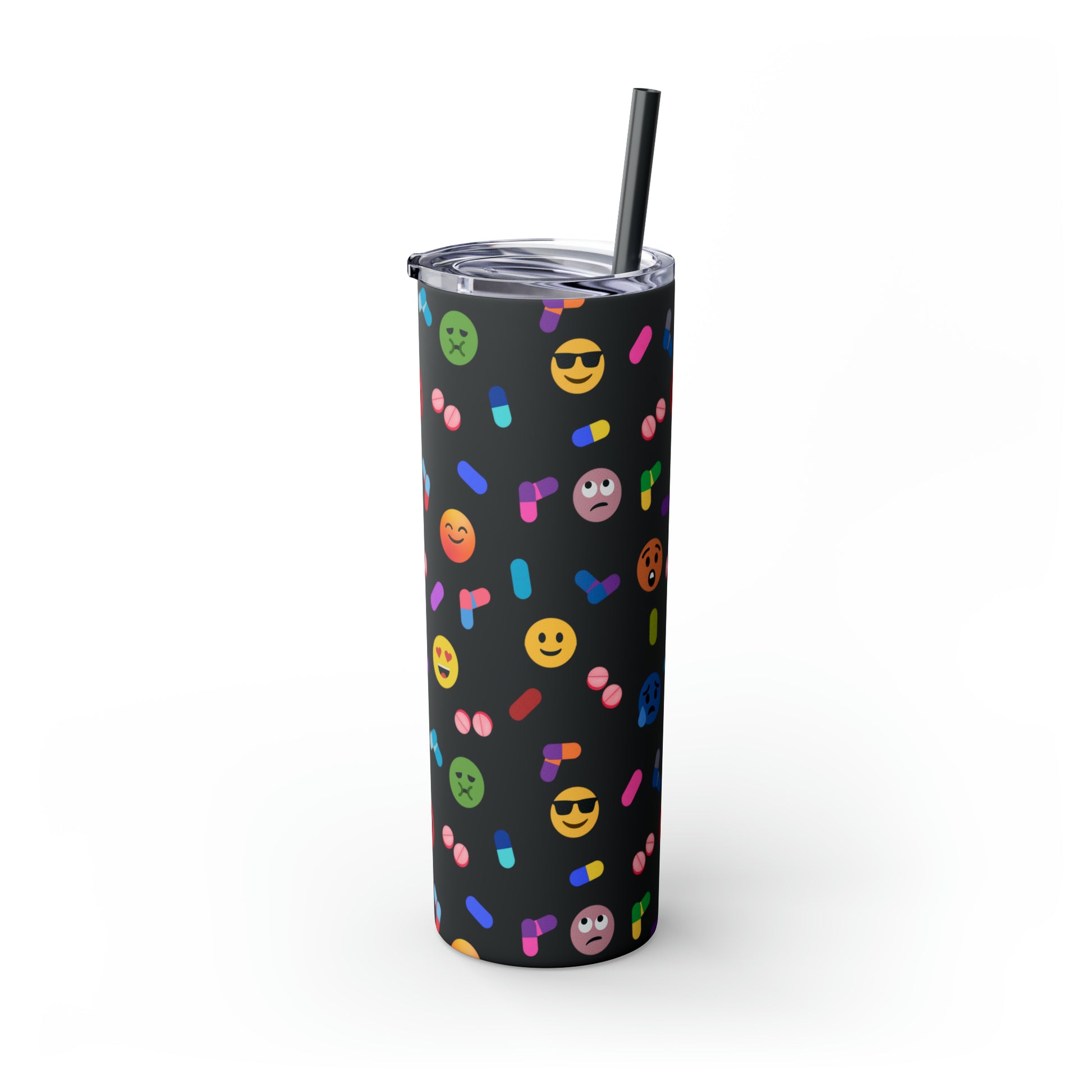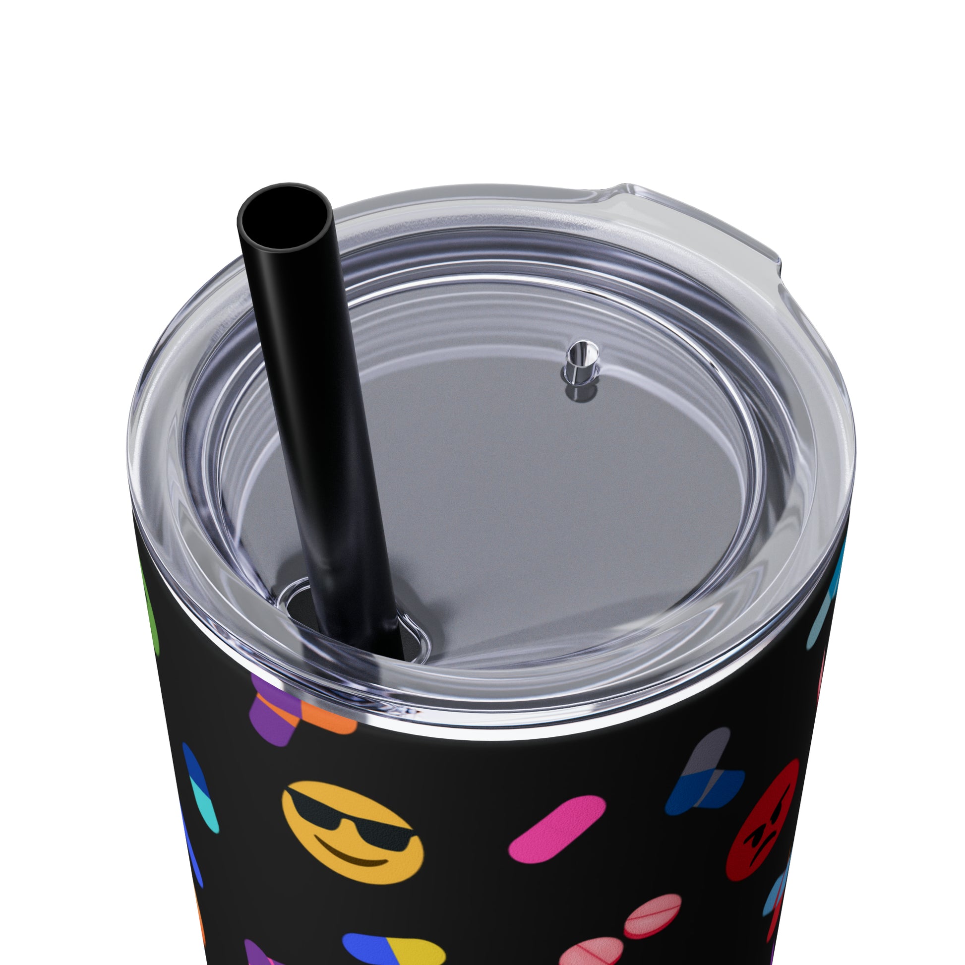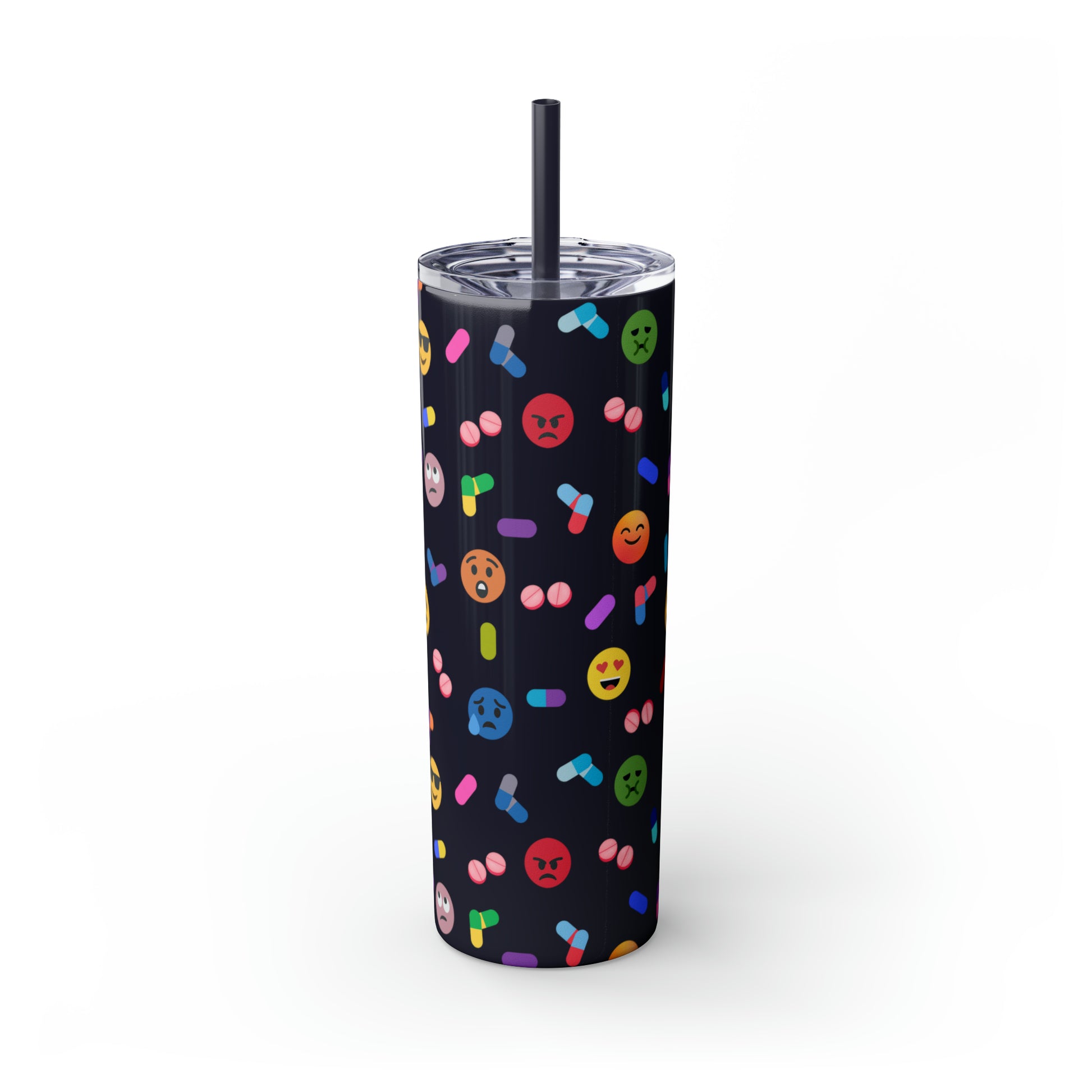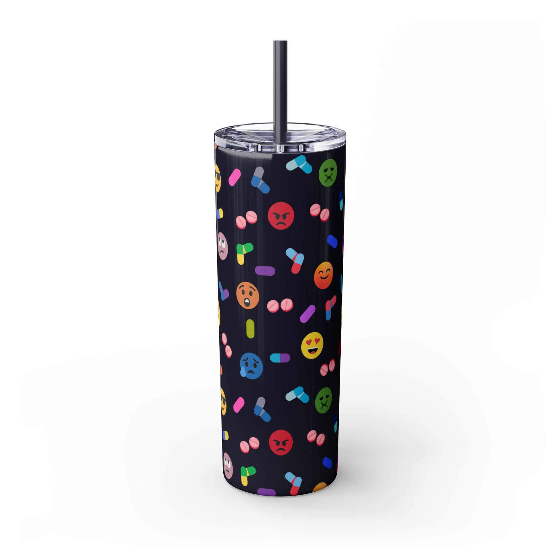 Pill-Popping Positivity Skinny Tumbler with Straw 20 oz (multiple colors)