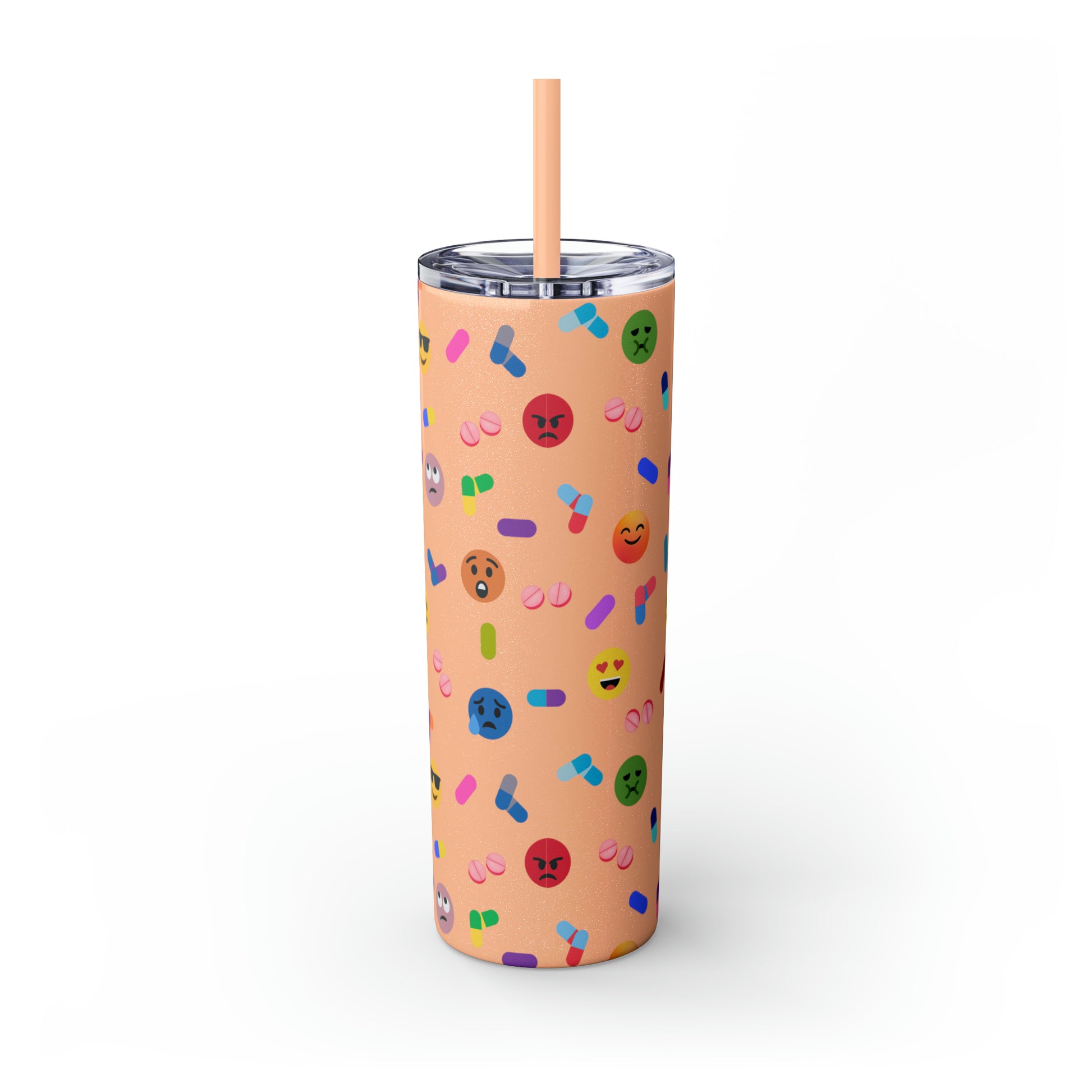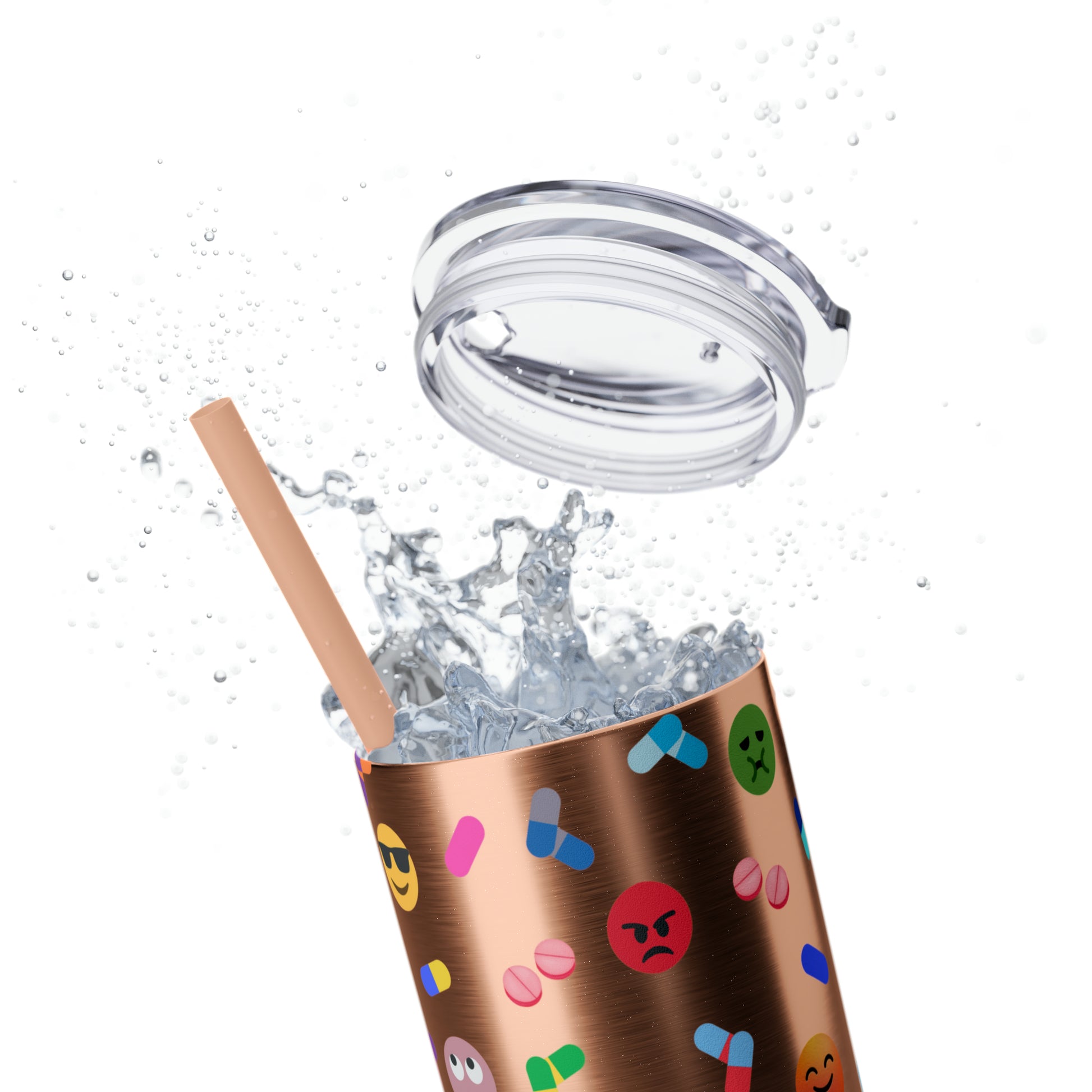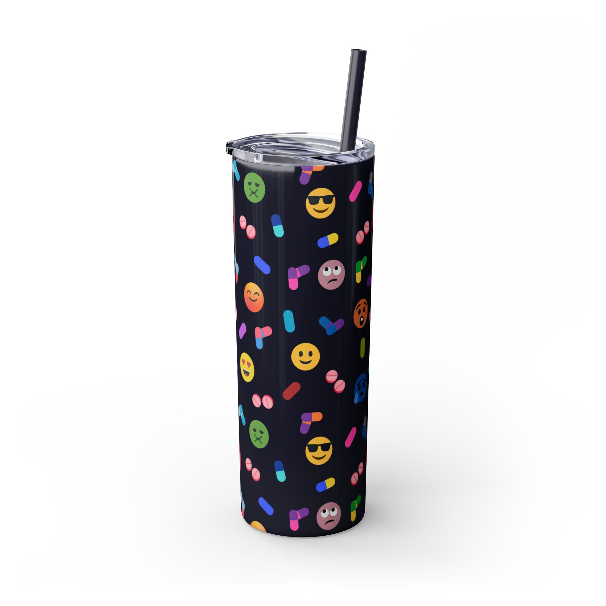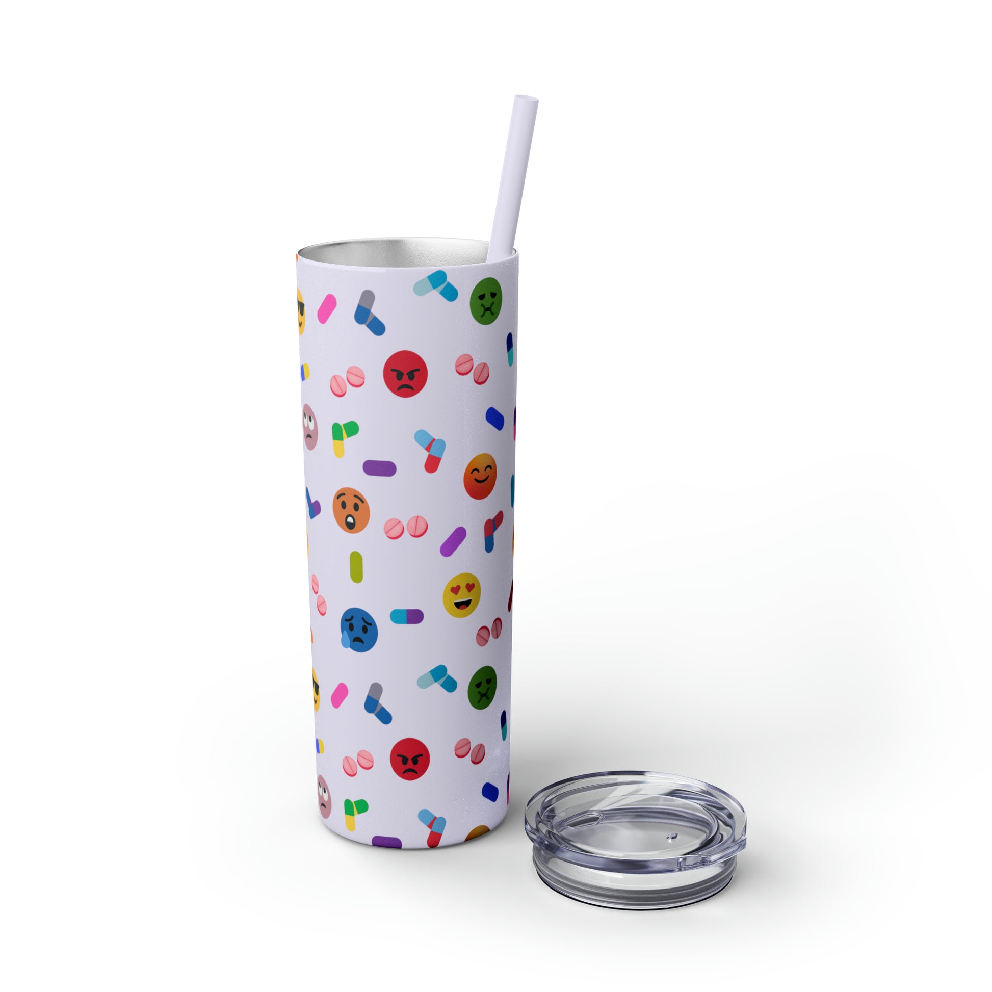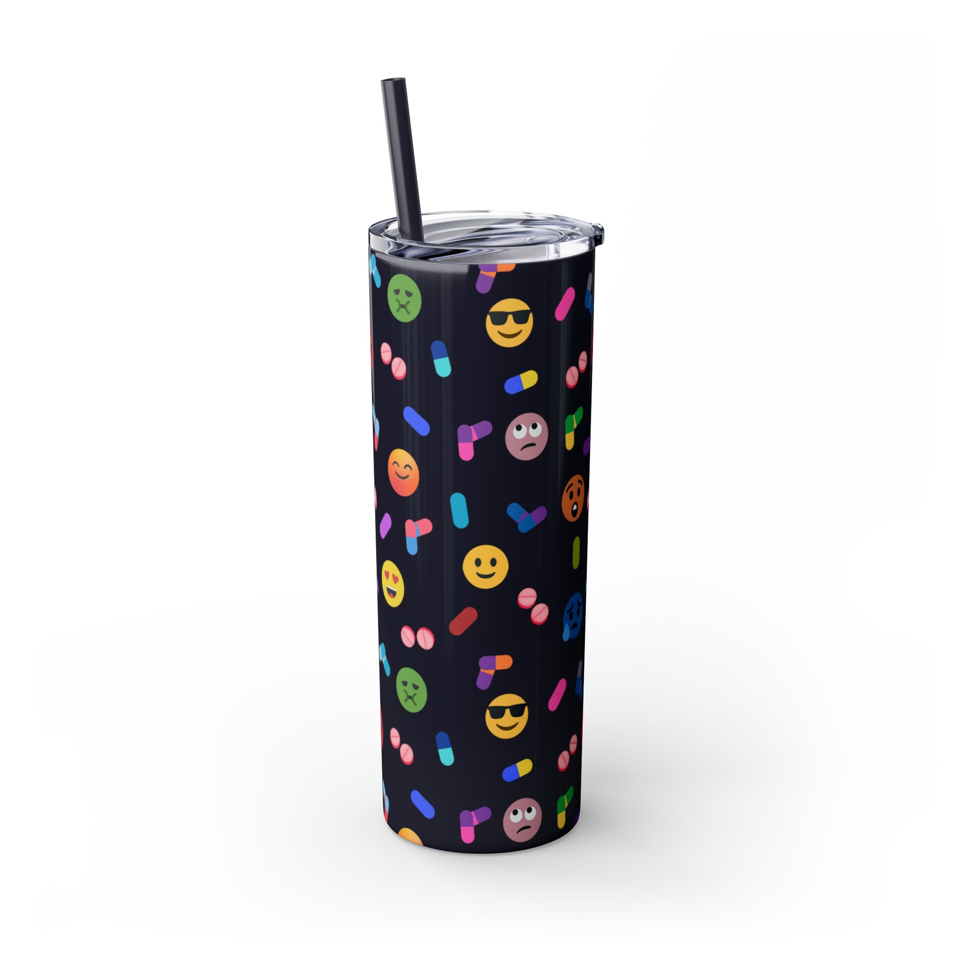 Pill-Popping Positivity Skinny Tumbler with Straw 20 oz (multiple colors)