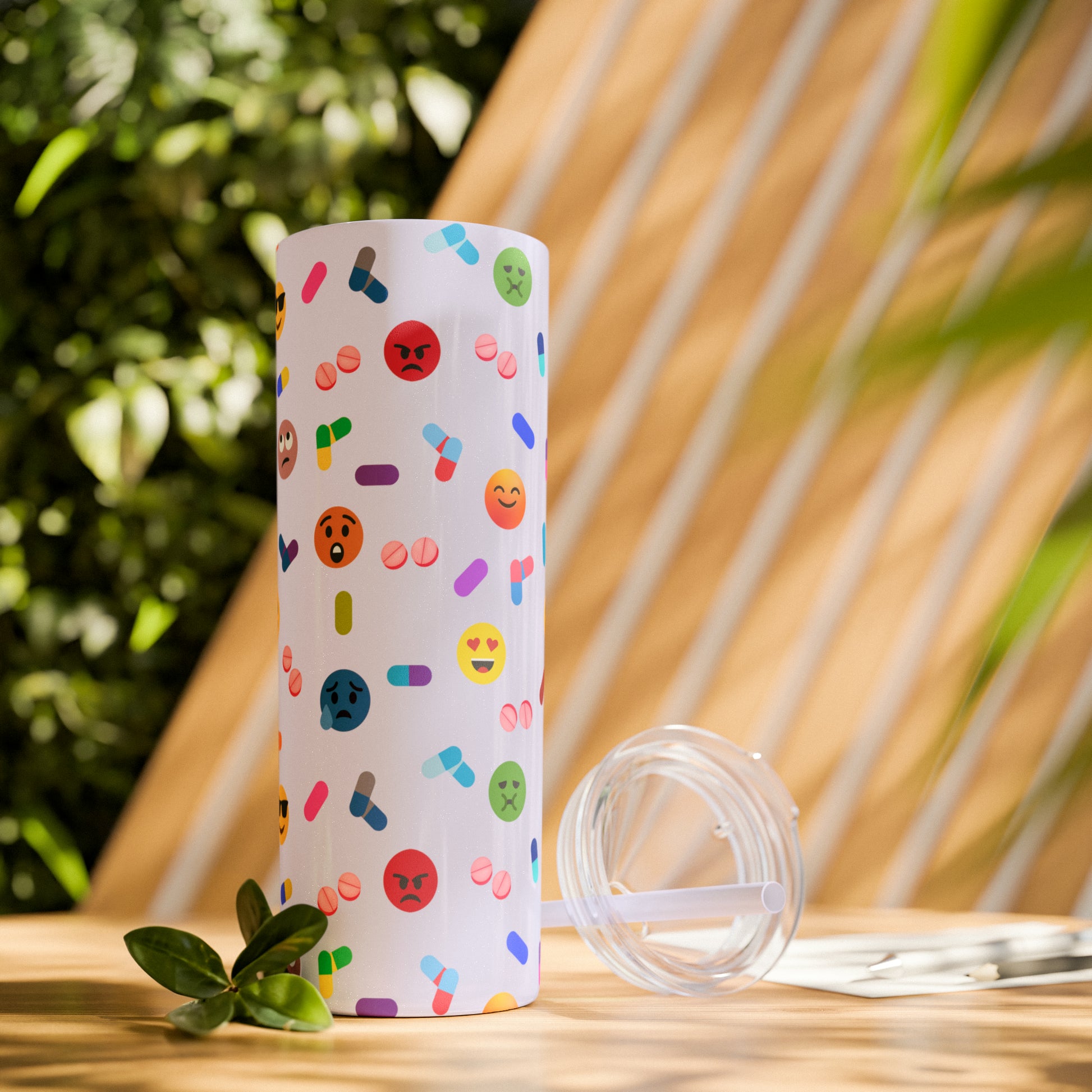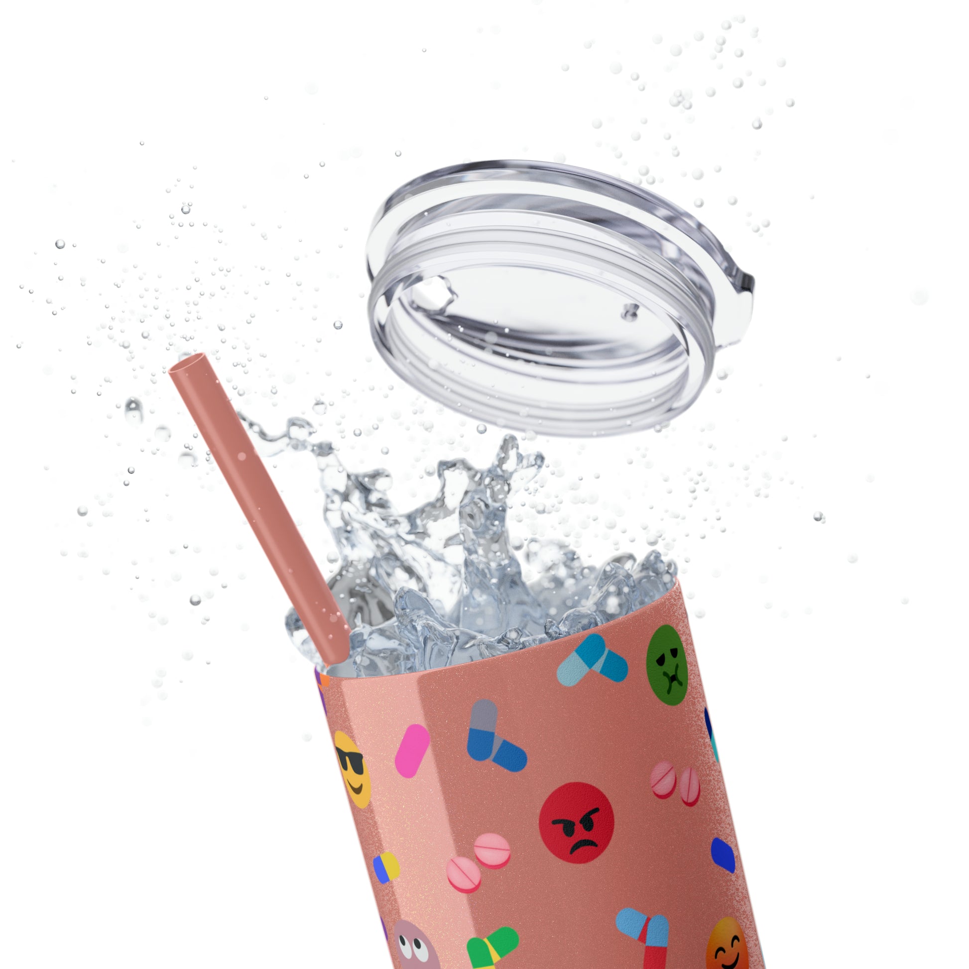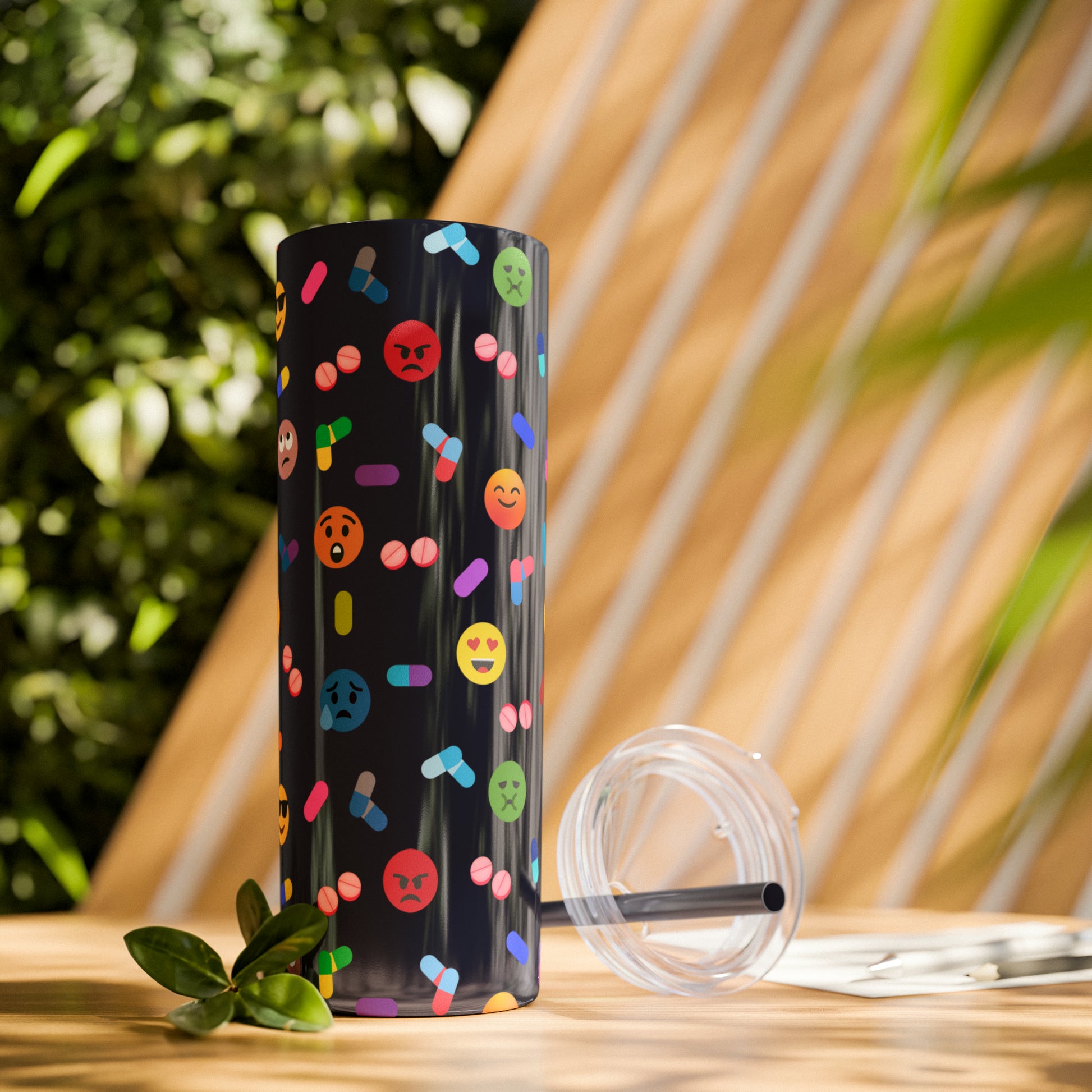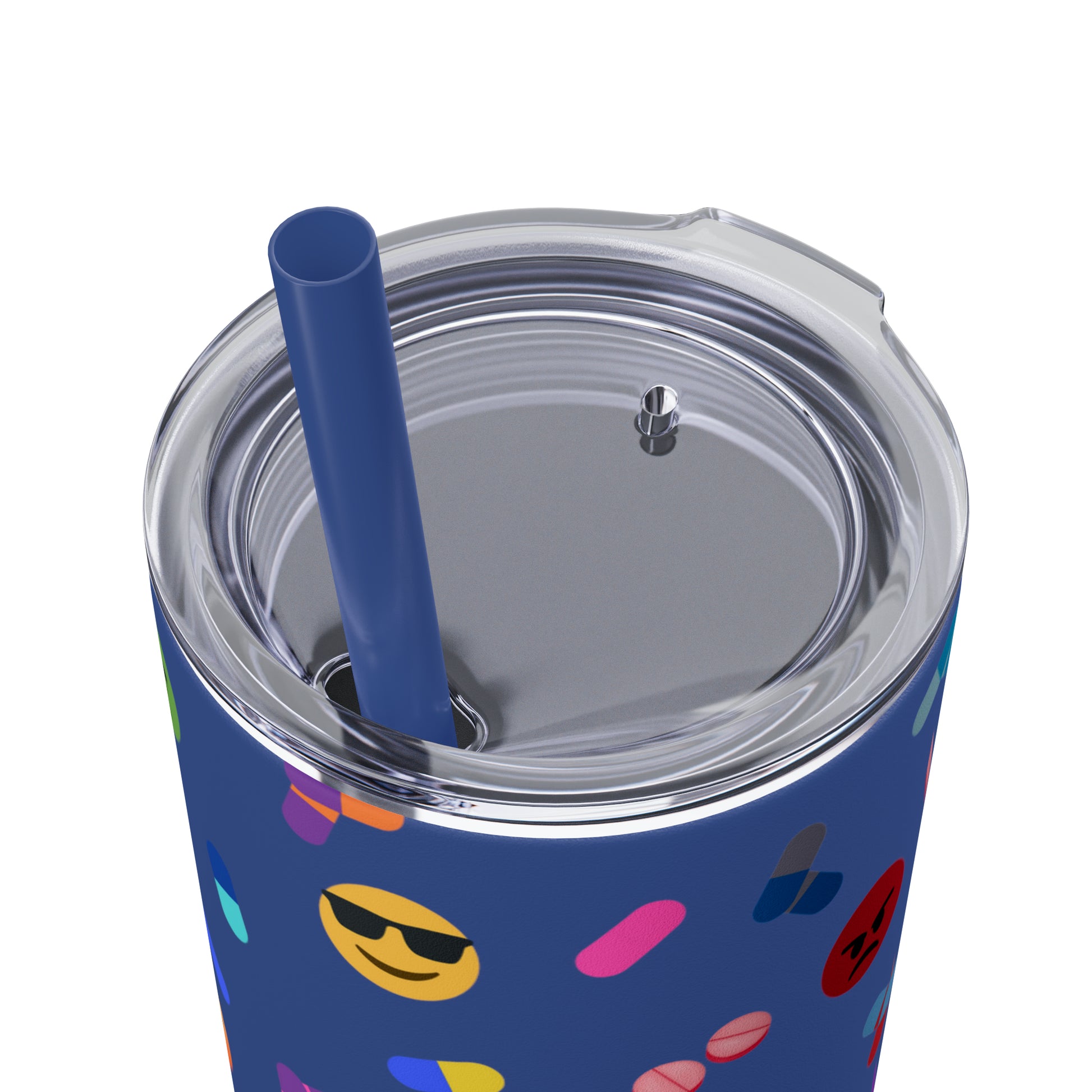 Pill-Popping Positivity Skinny Tumbler with Straw 20 oz (multiple colors)