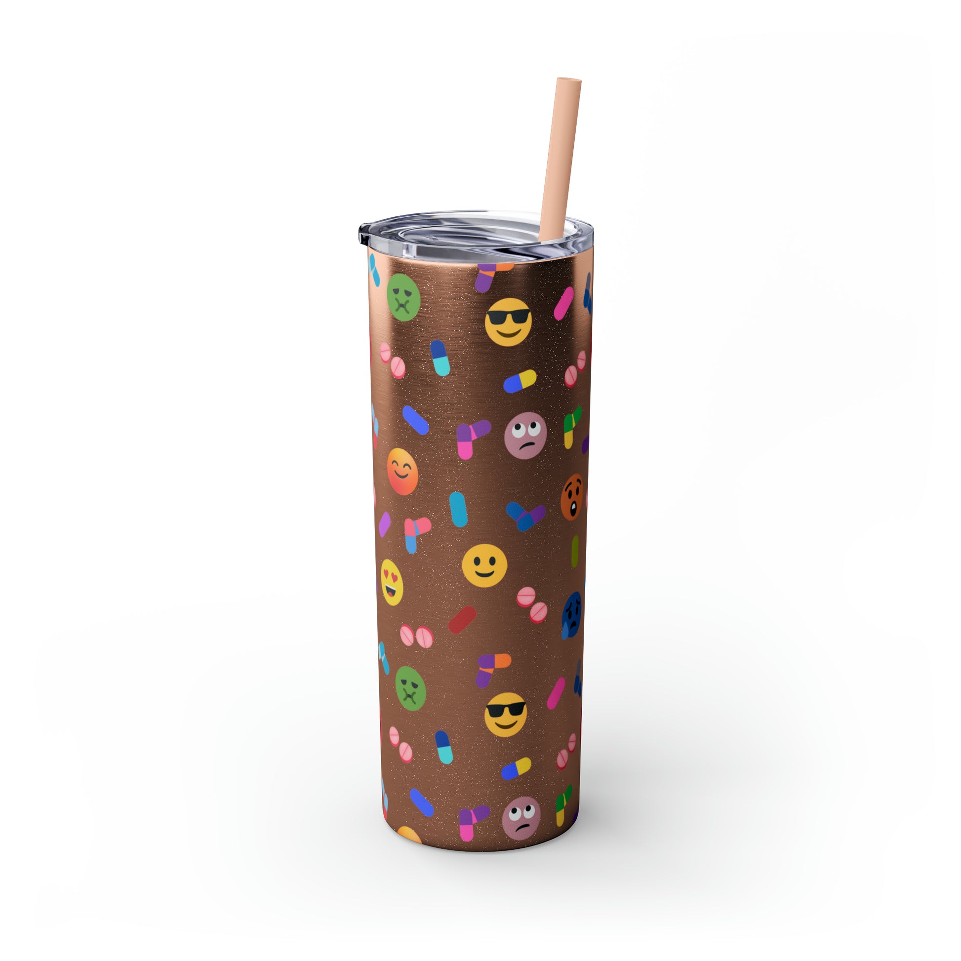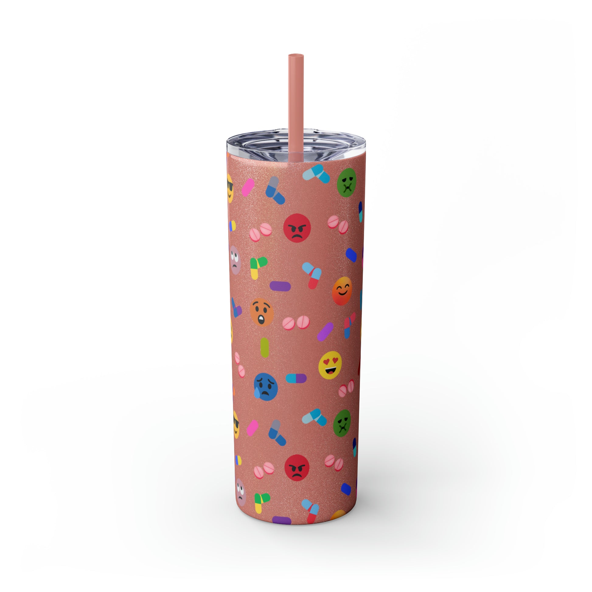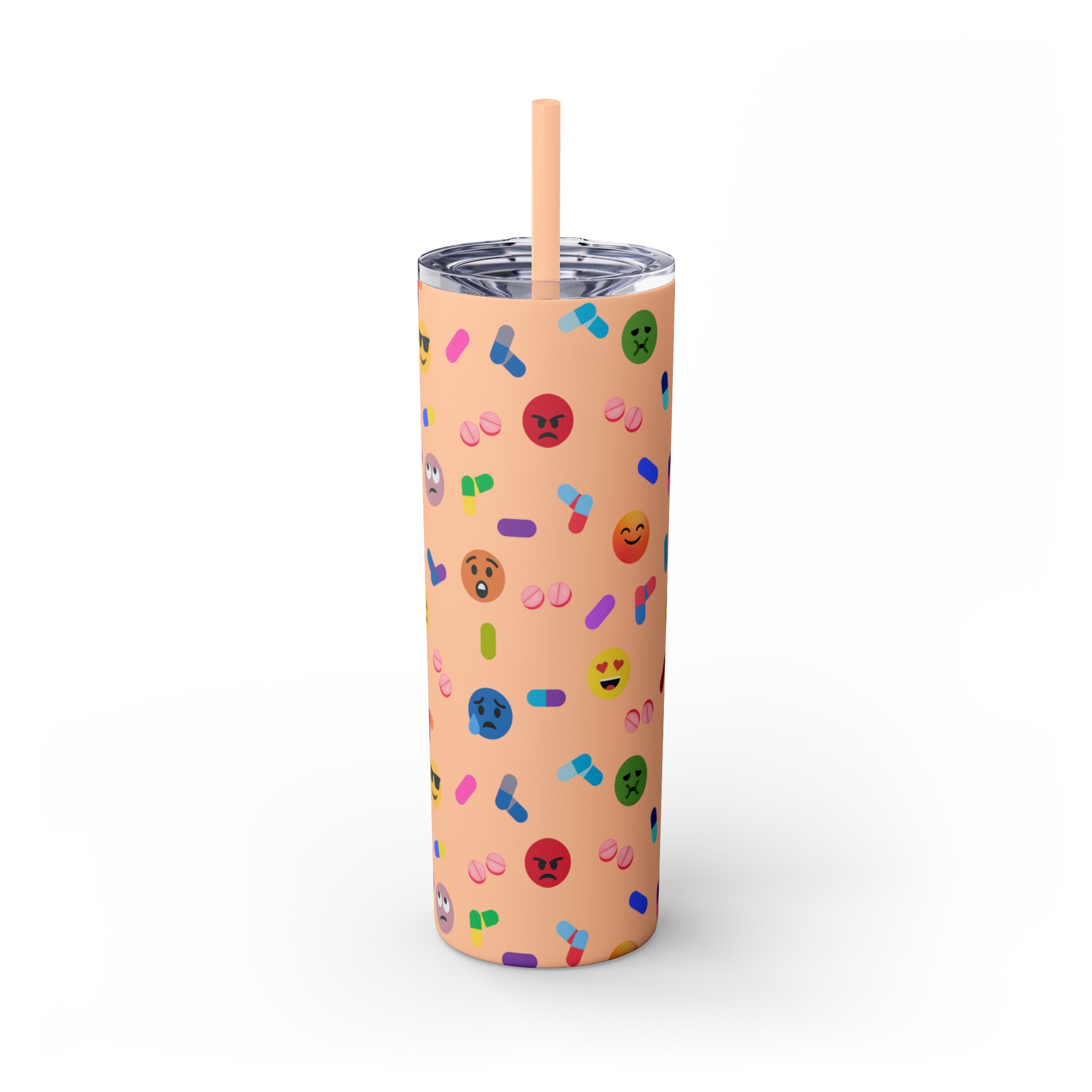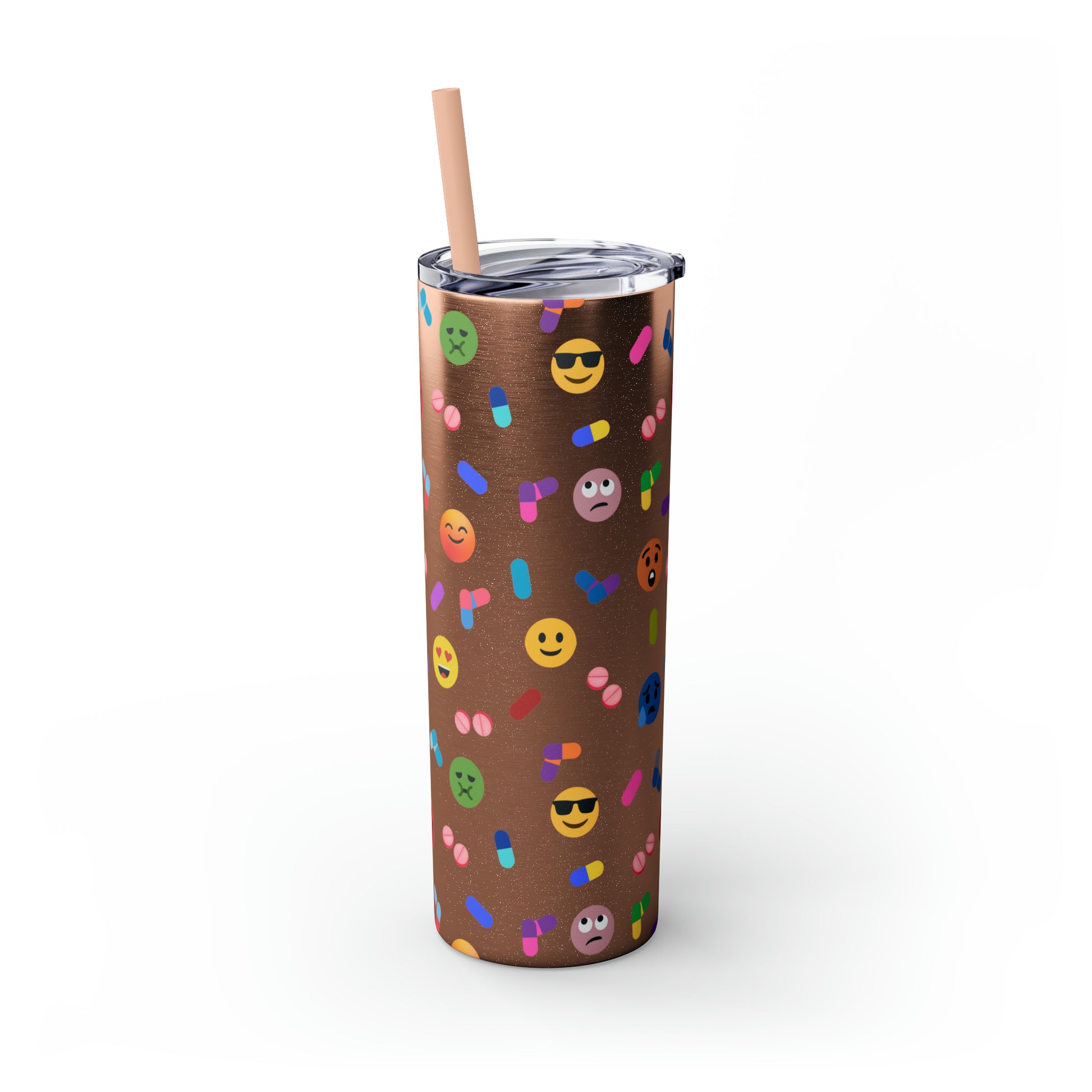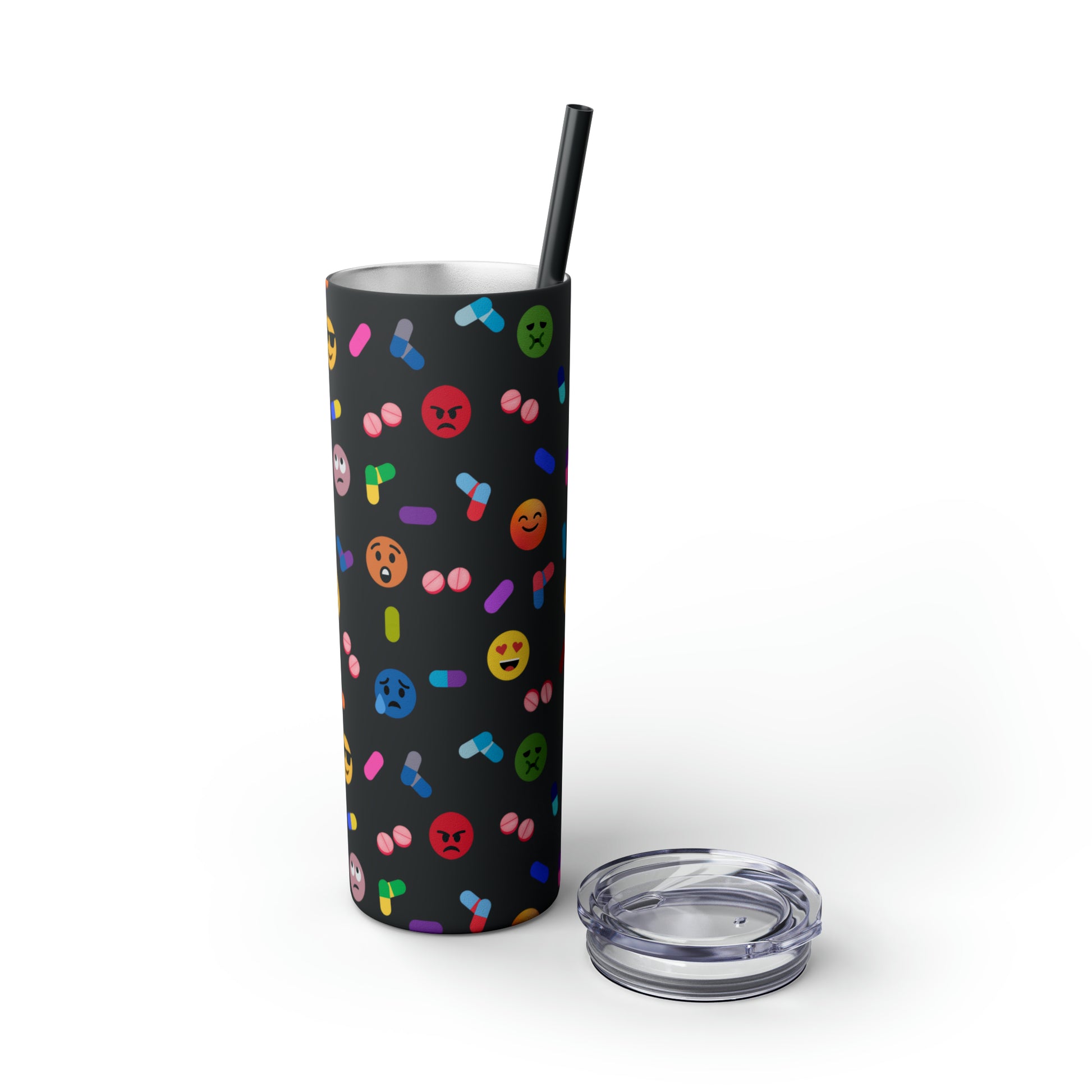 Pill-Popping Positivity Skinny Tumbler with Straw 20 oz (multiple colors)