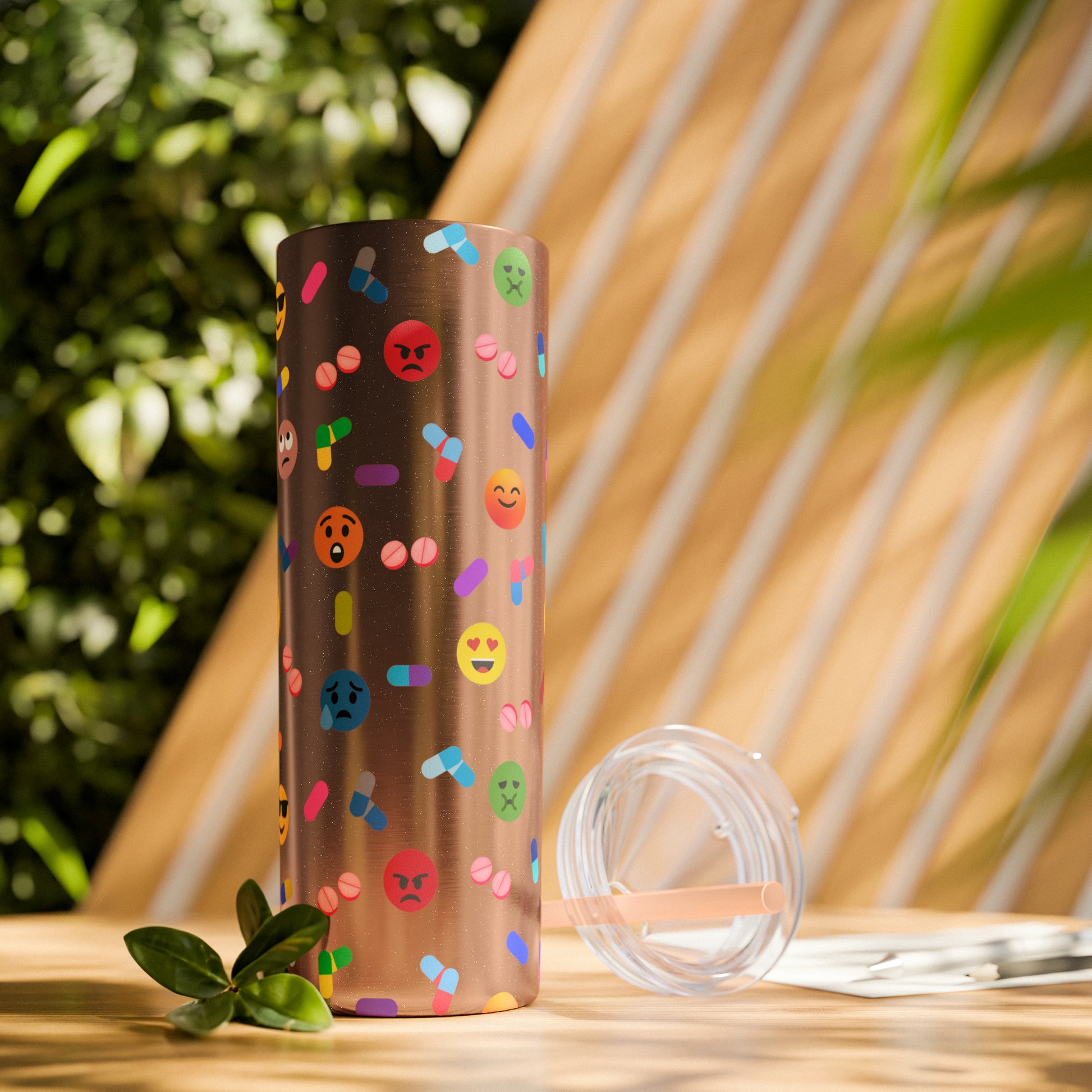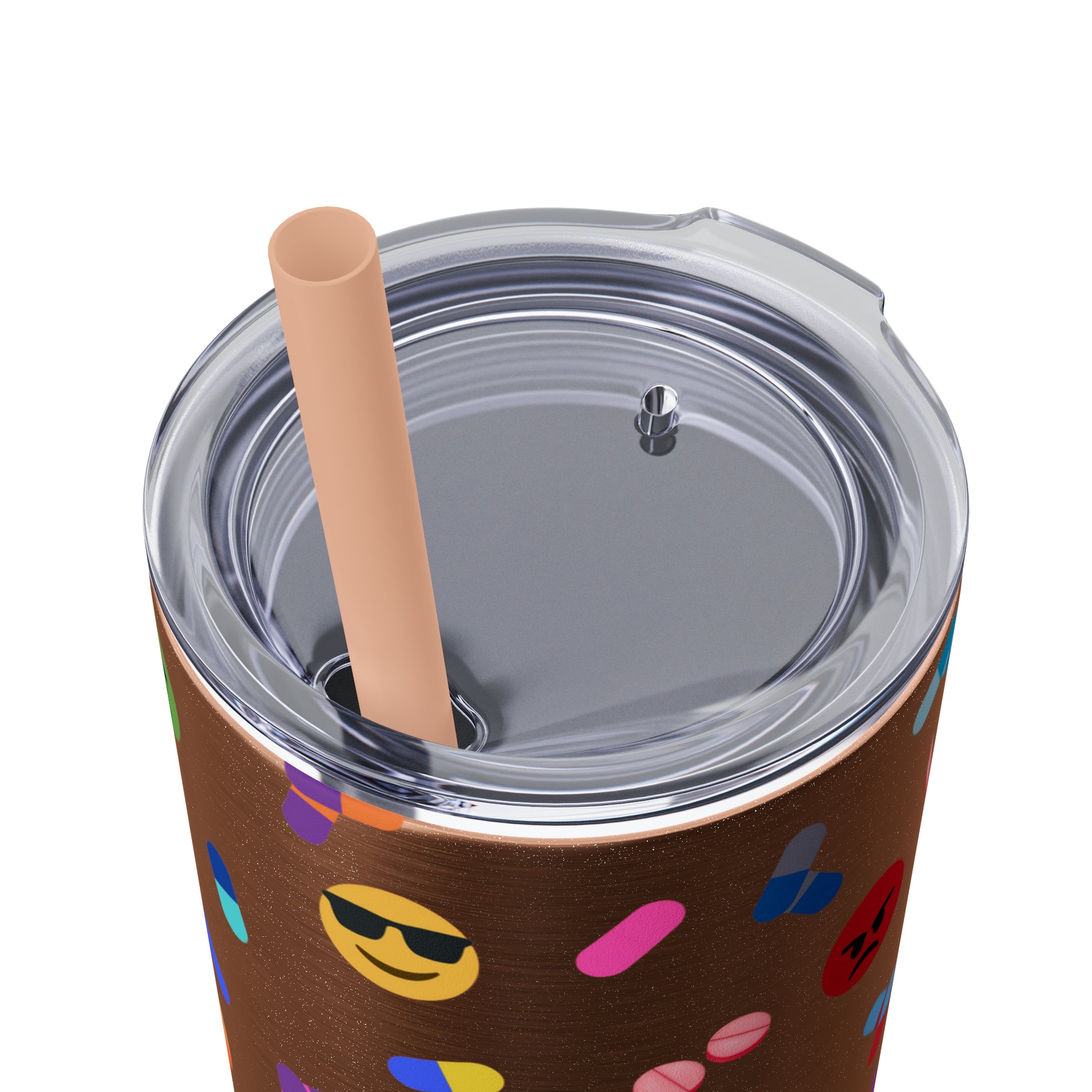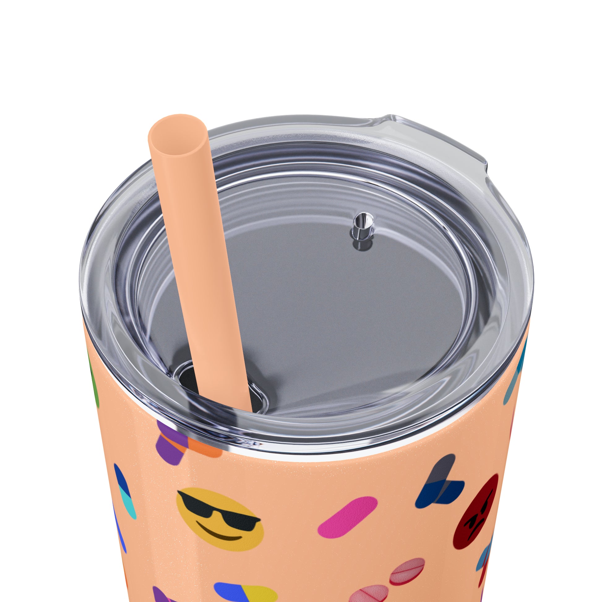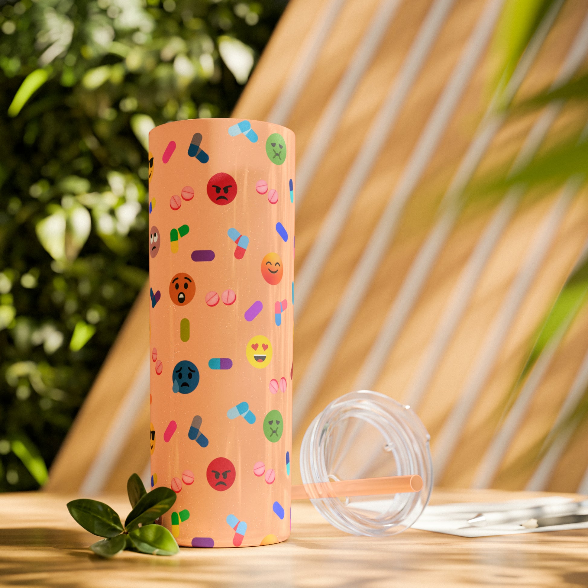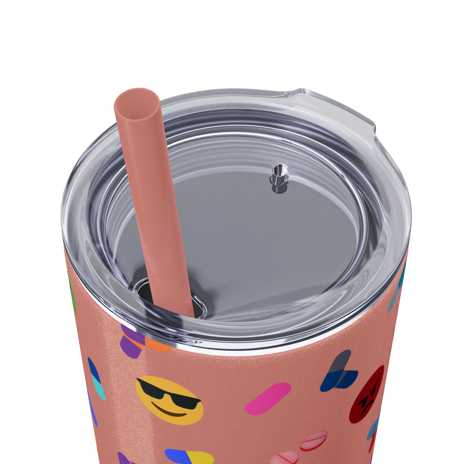 Pill-Popping Positivity Skinny Tumbler with Straw 20 oz (multiple colors)