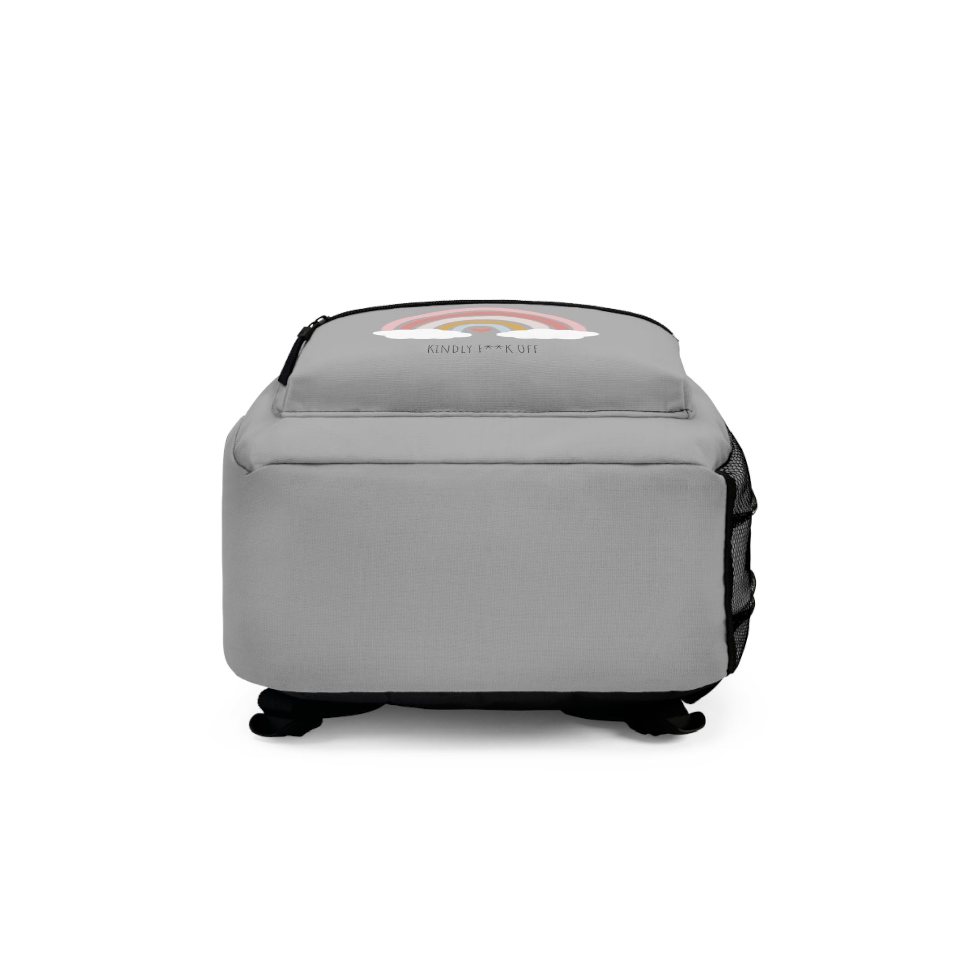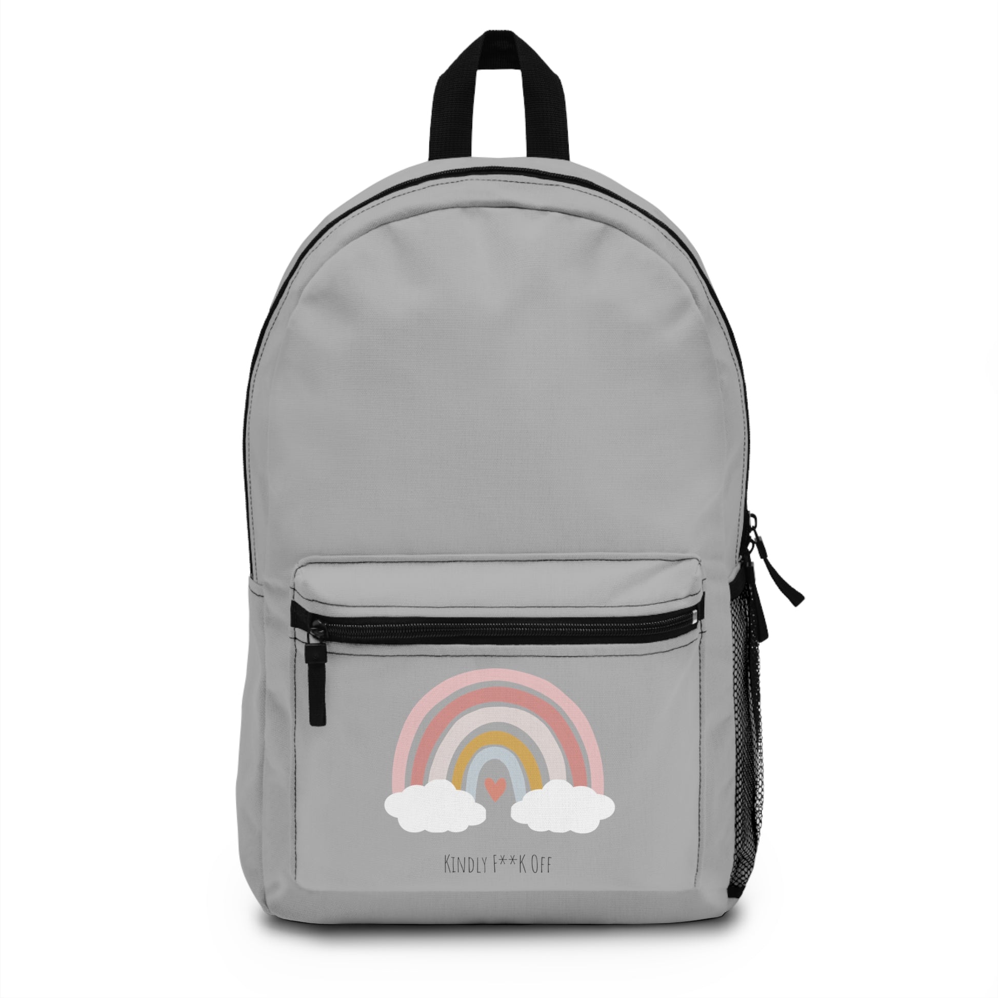 Step into a world of vibrant self-expression with our Rainbow Kindly F**k Off Backpack. This backpack is not just an accessory—it's a statement, a bold narrative of individuality and attitude.