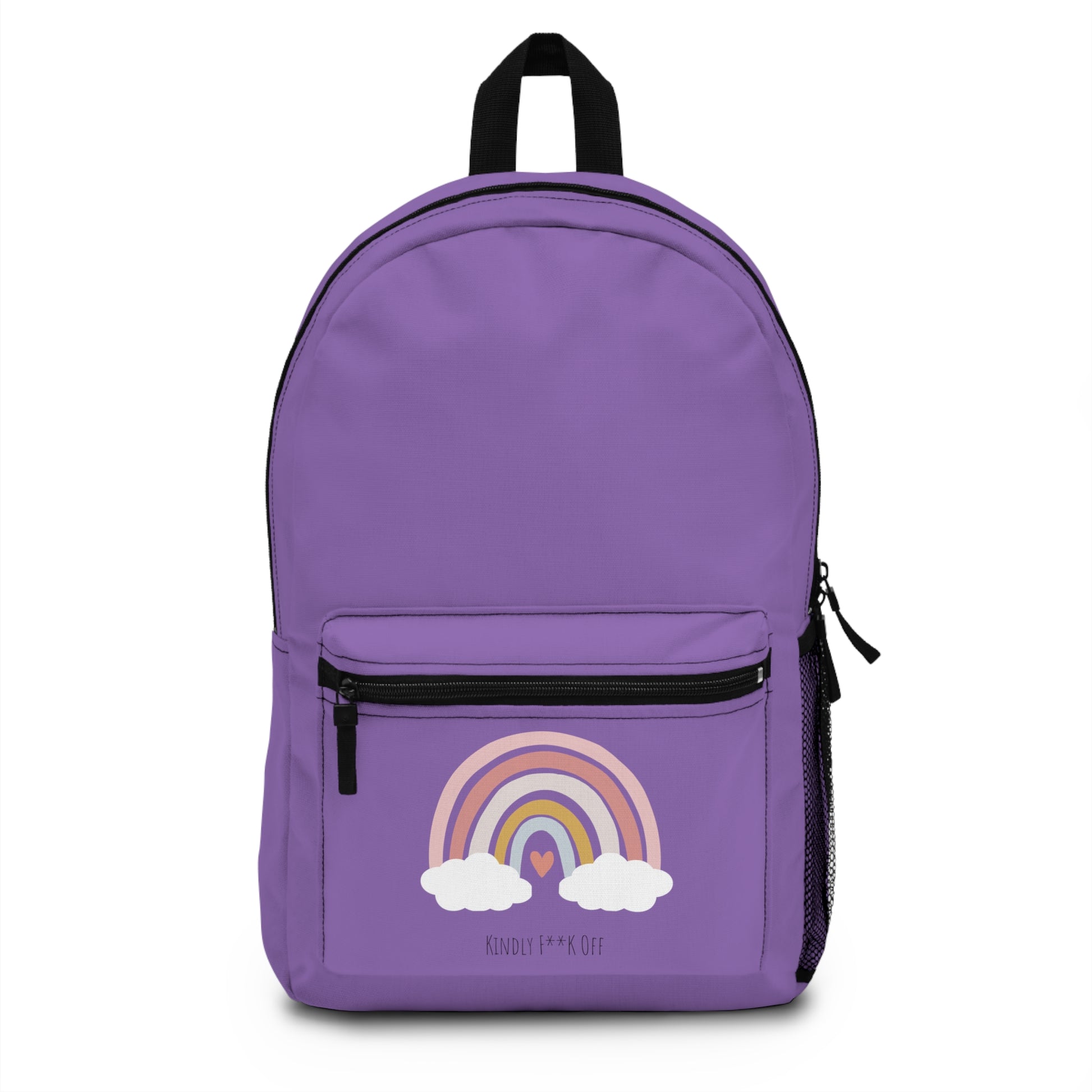 Step into a world of vibrant self-expression with our Rainbow Kindly F**k Off Backpack. This backpack is not just an accessory—it's a statement, a bold narrative of individuality and attitude.