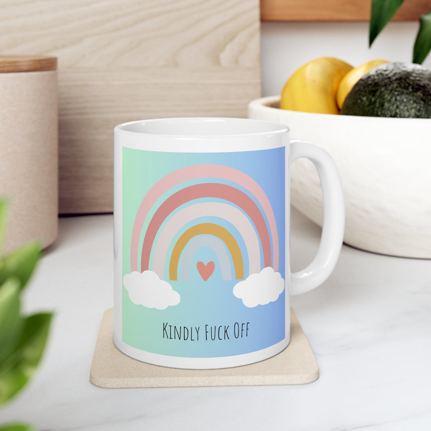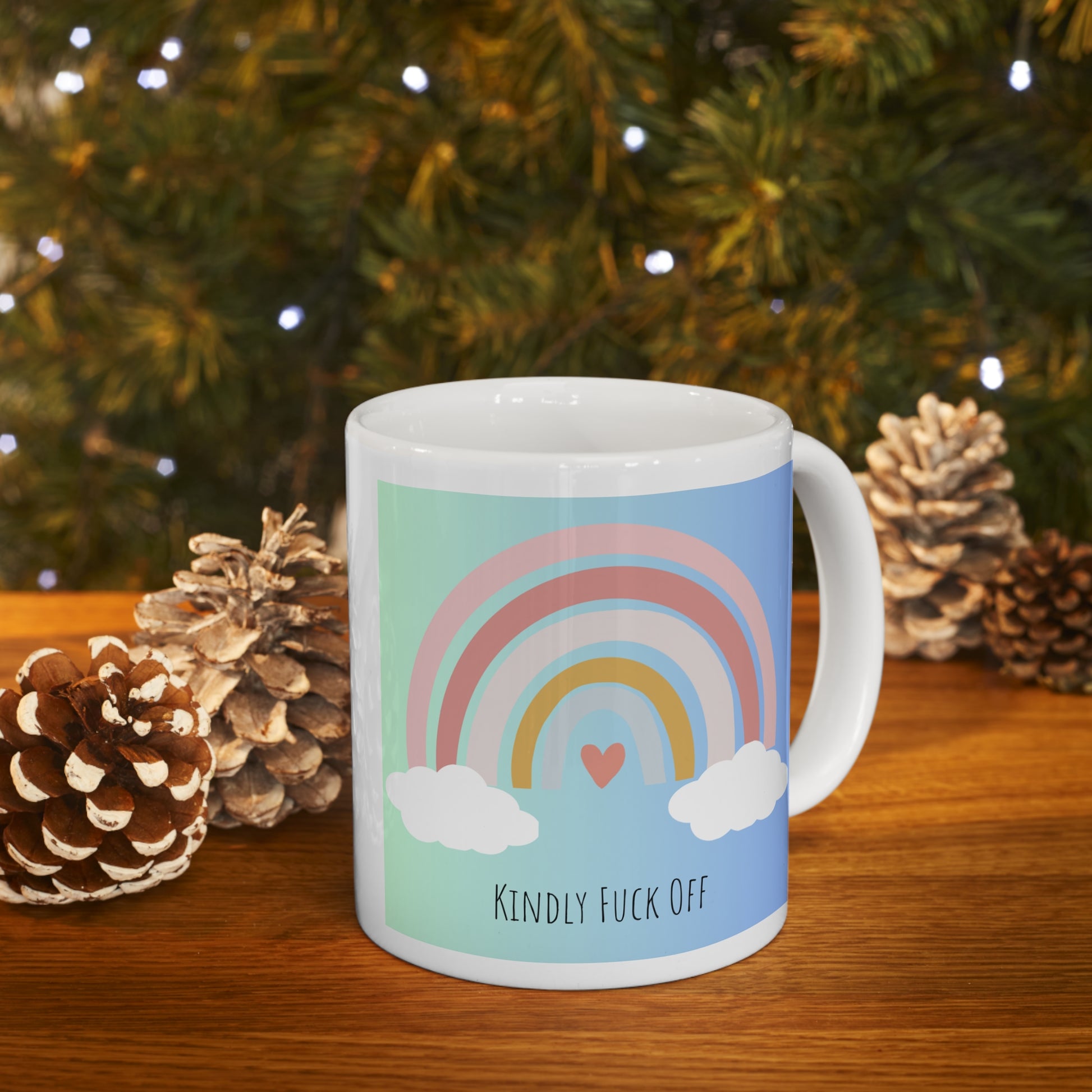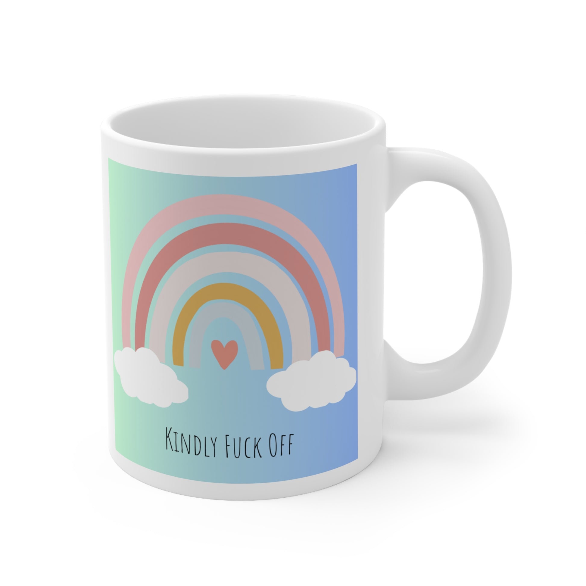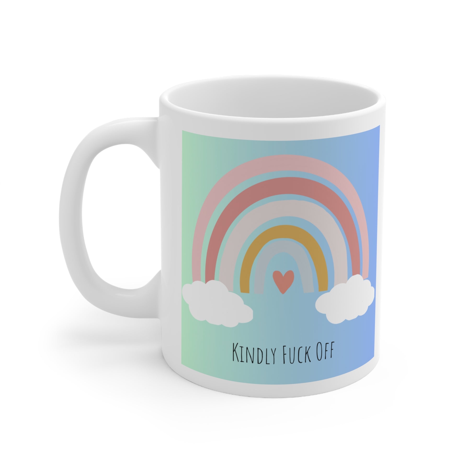 Rainbow Ceramic Mug 11oz- Kindly Fuck Off (green/blue)