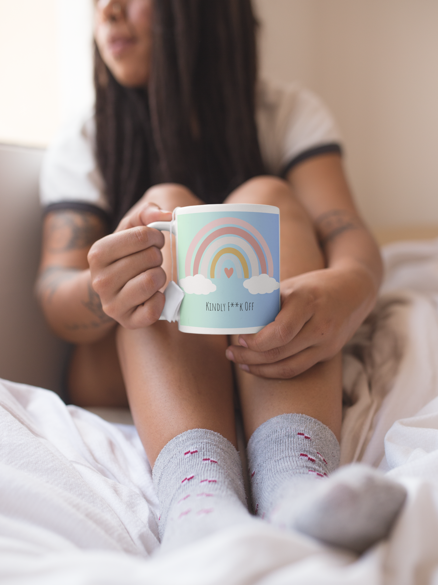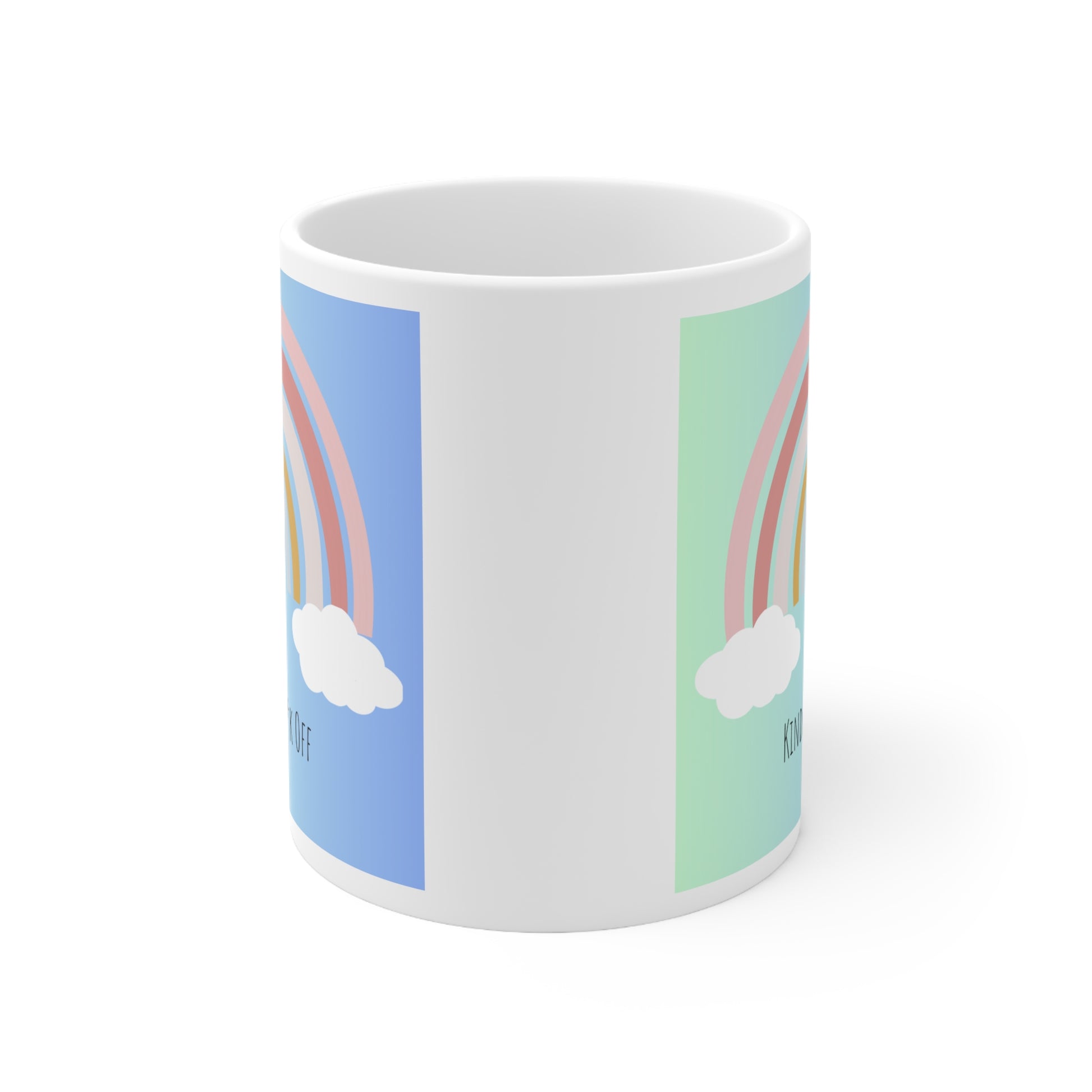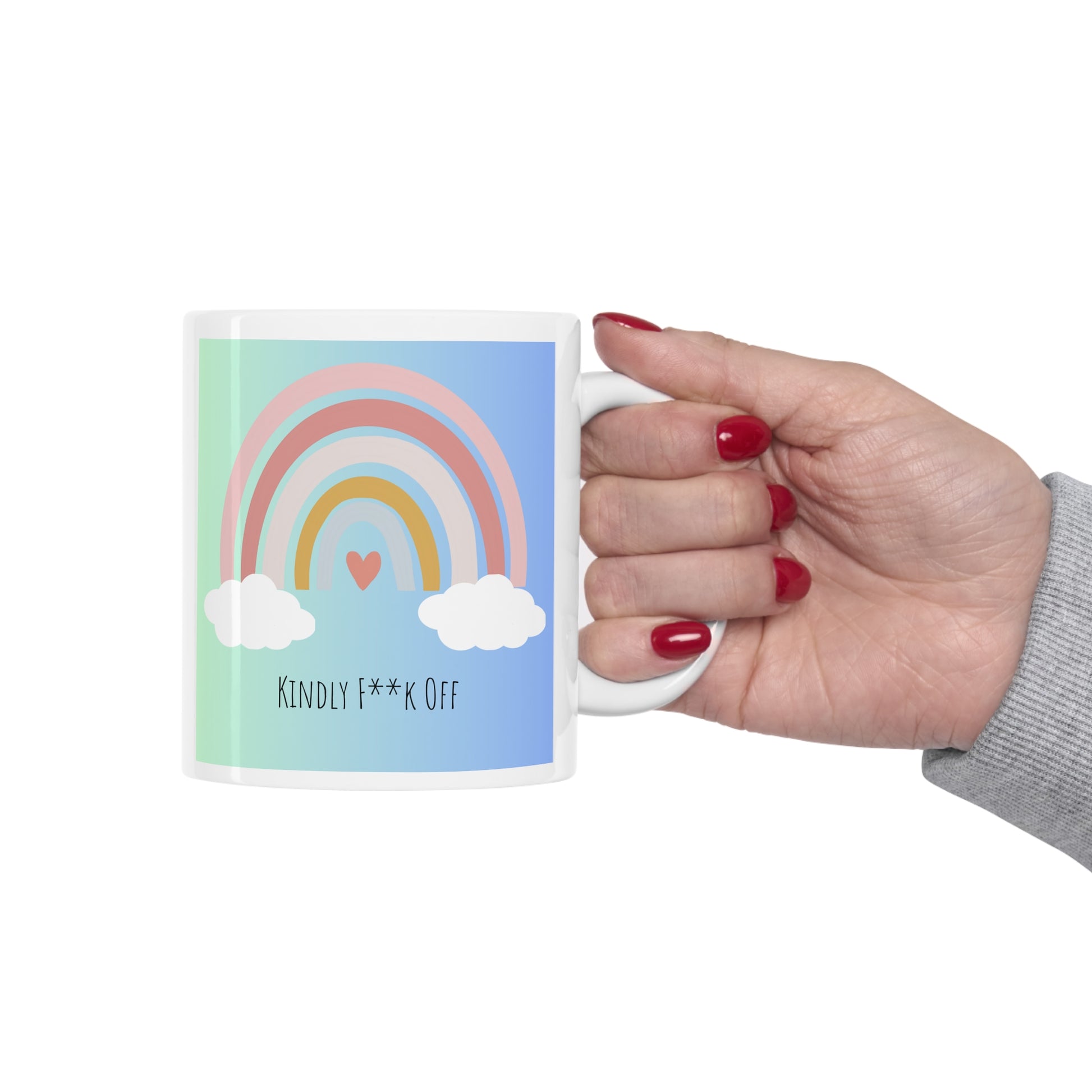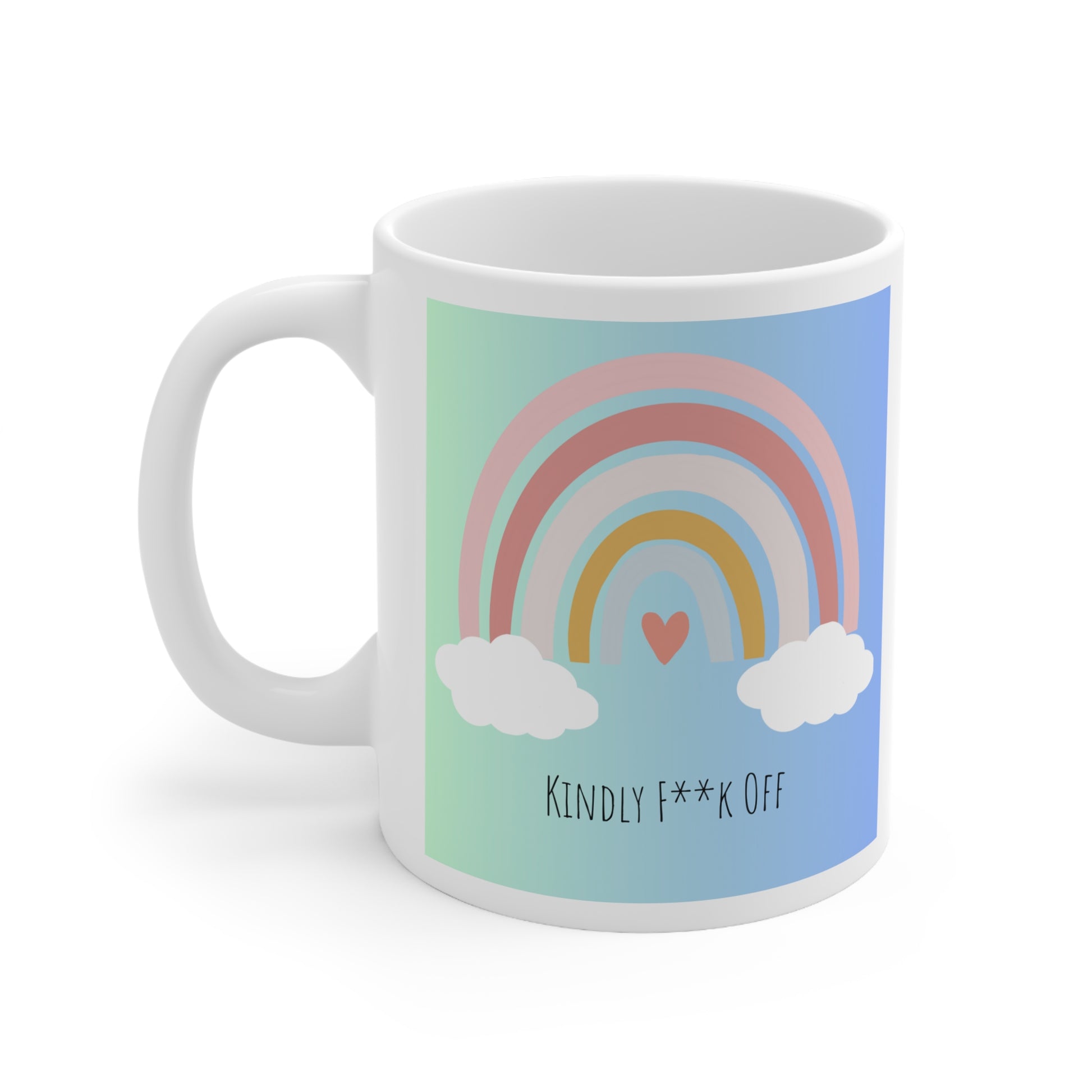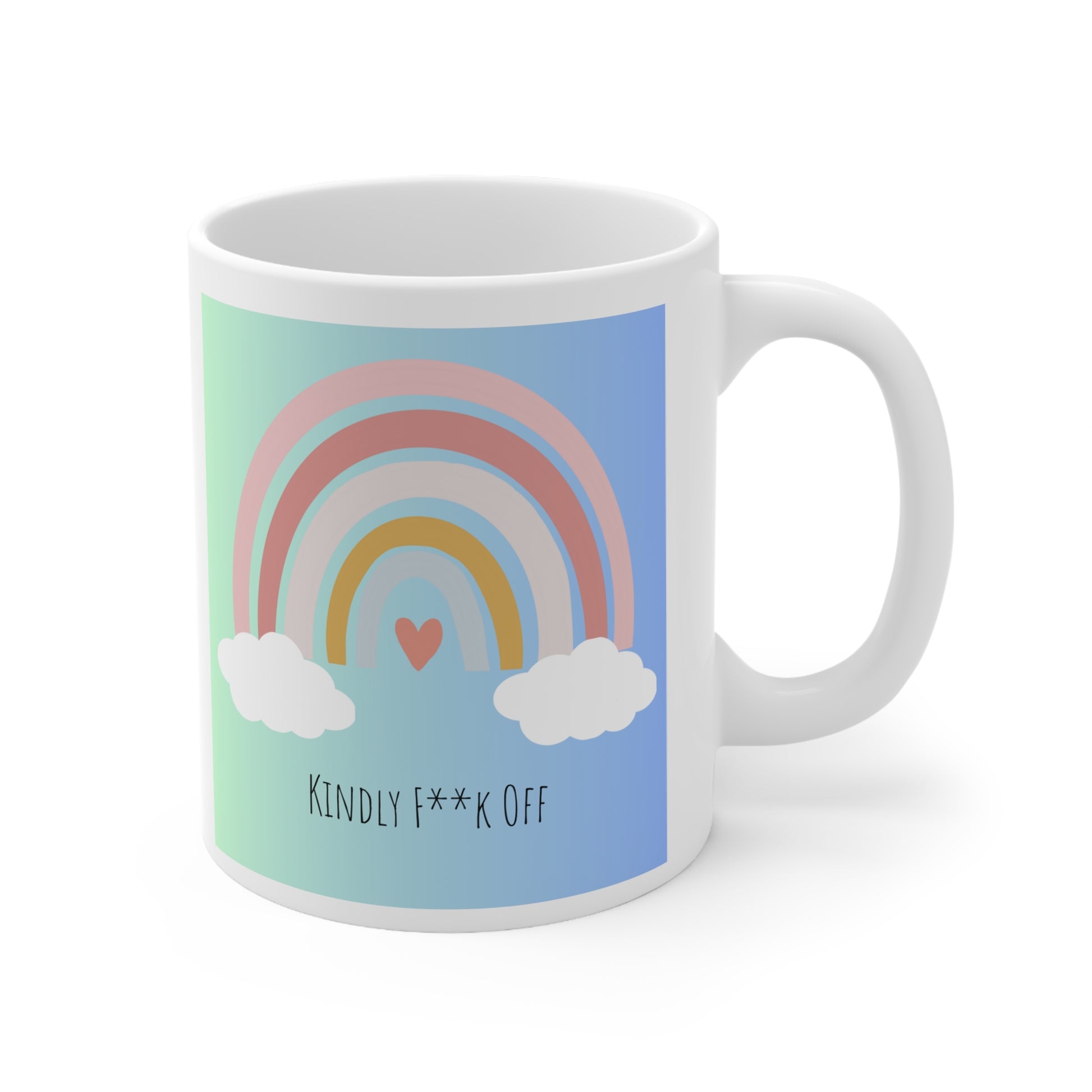 Rainbow Ceramic Mug 11oz- Kindly F**k Off (blue/green)