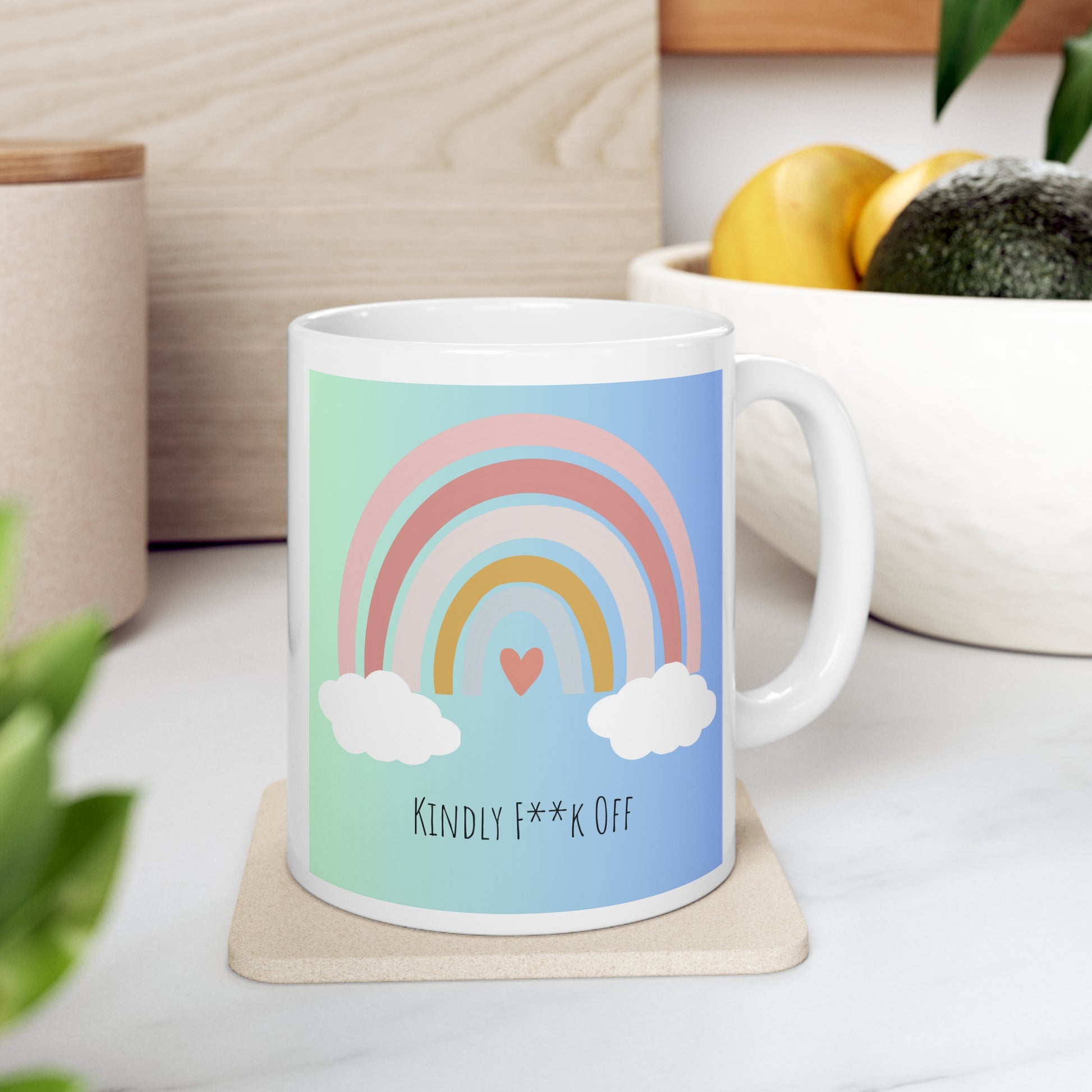 When you're enjoying a peaceful morning alone or sending a clear message to those around you, our "Rainbow, F**k Off" Coffee Mug is a fun and expressive addition to your drinkware collection. It also makes a great gift for friends, family members, or coworkers who appreciate a touch of humor and a splash of color in their daily routine.