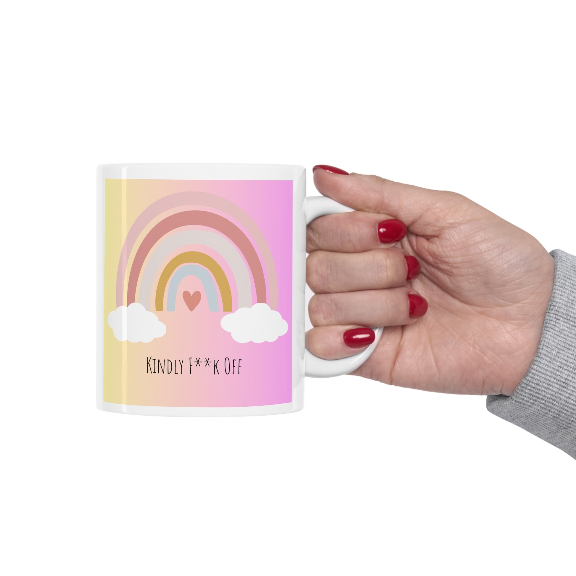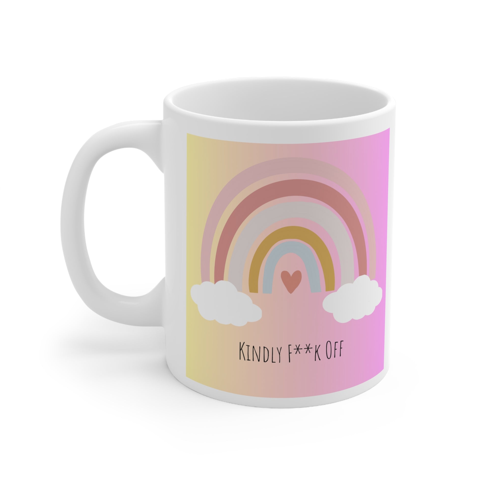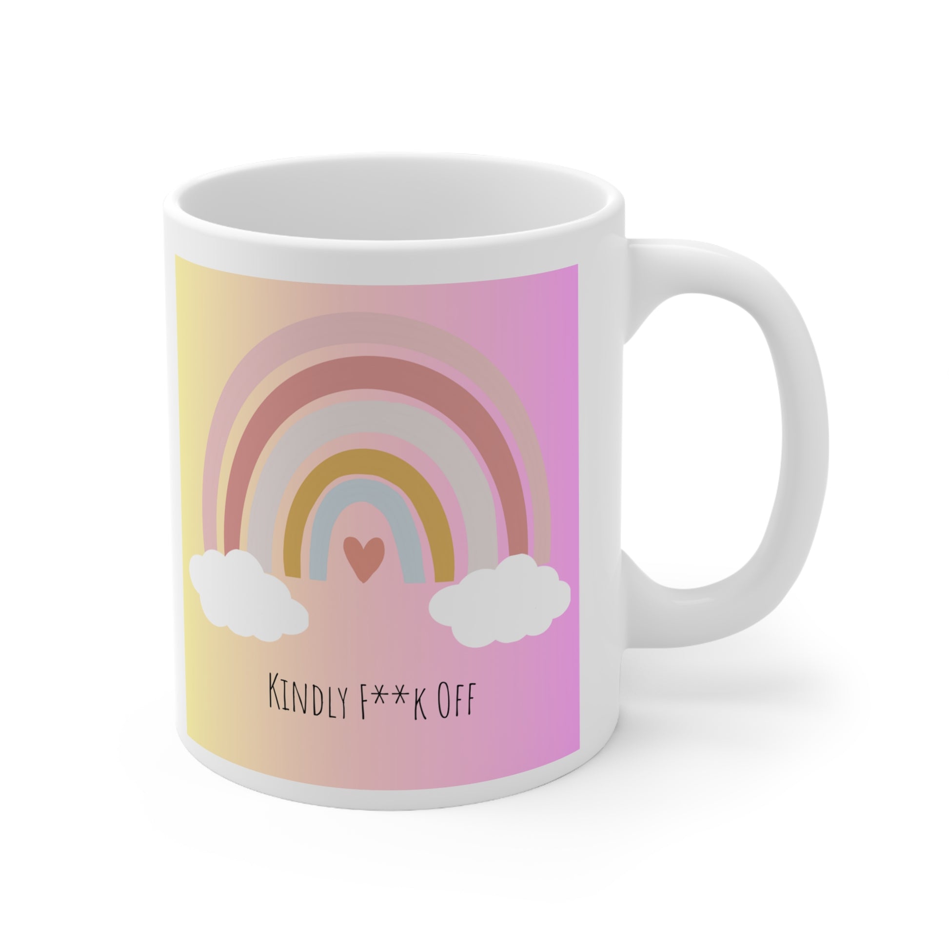 Rainbow Ceramic Mug 11oz- Kindly F**K Off (pink)