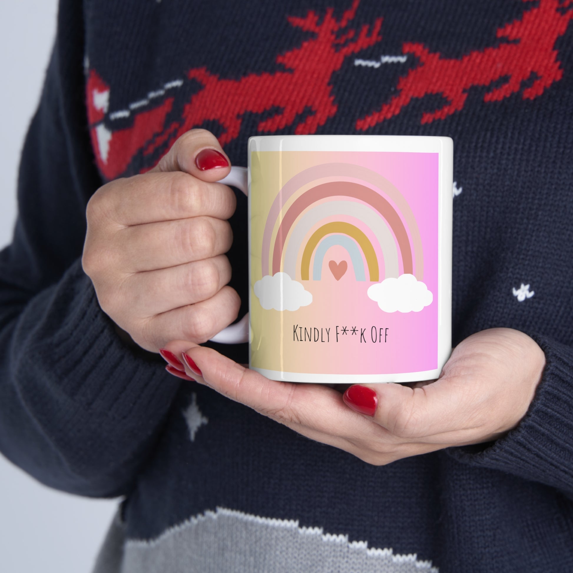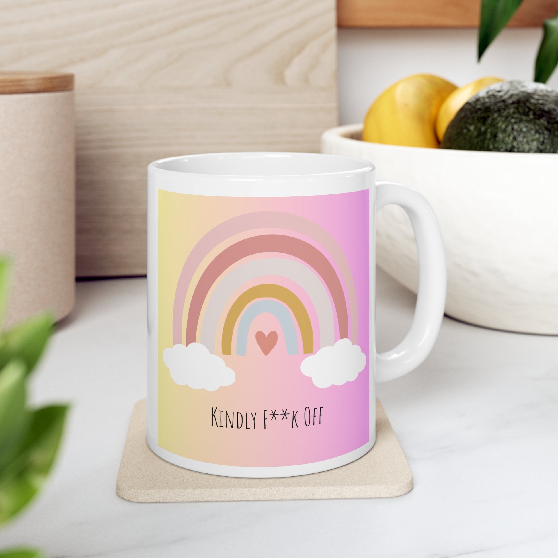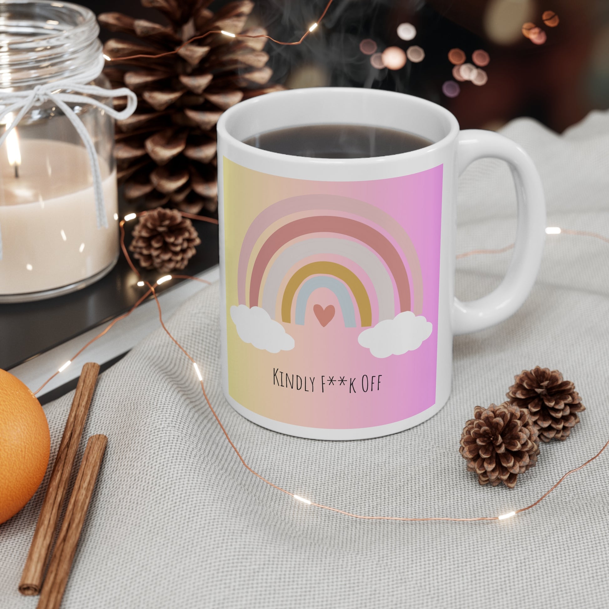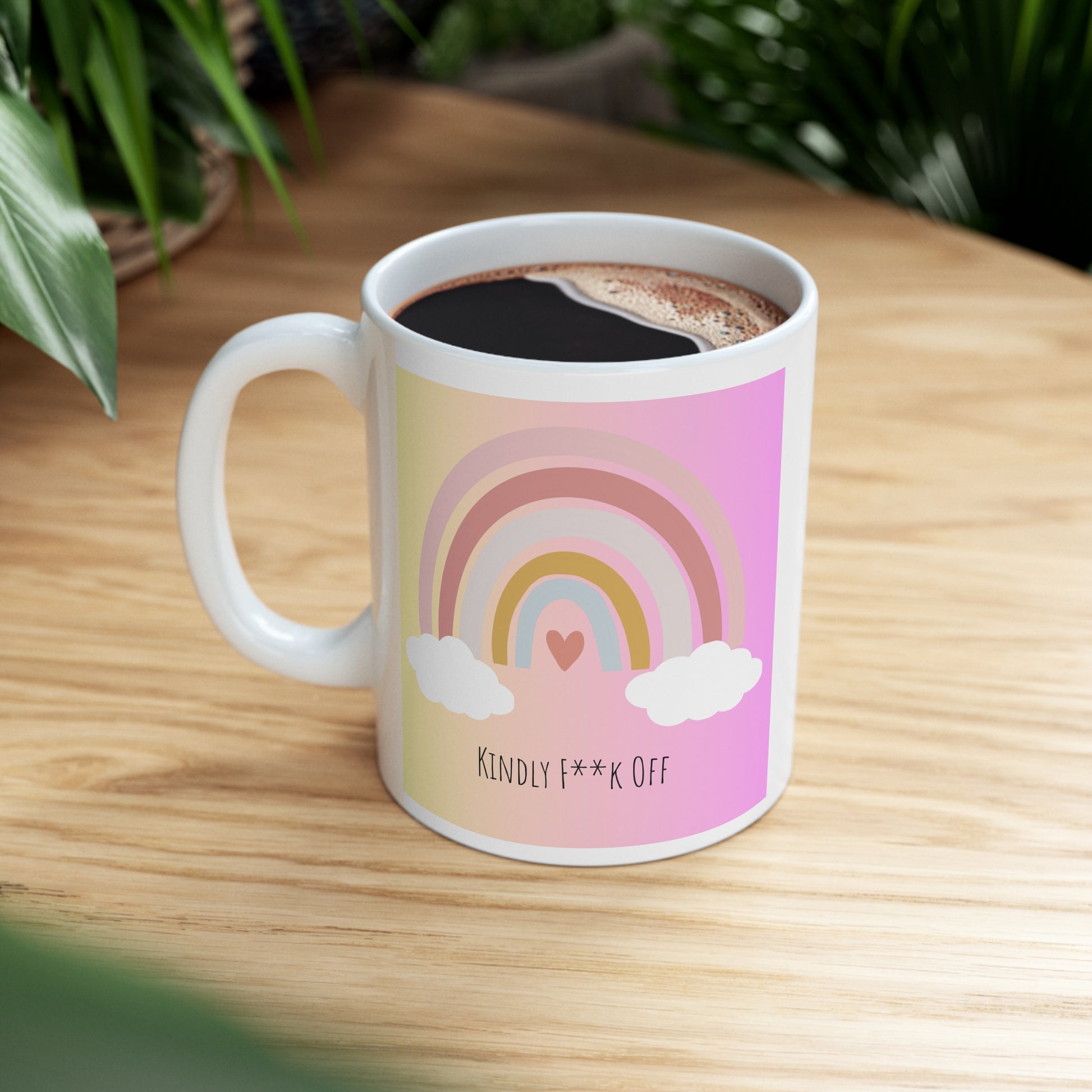 Rainbow Ceramic Mug 11oz- Kindly F**K Off (pink)