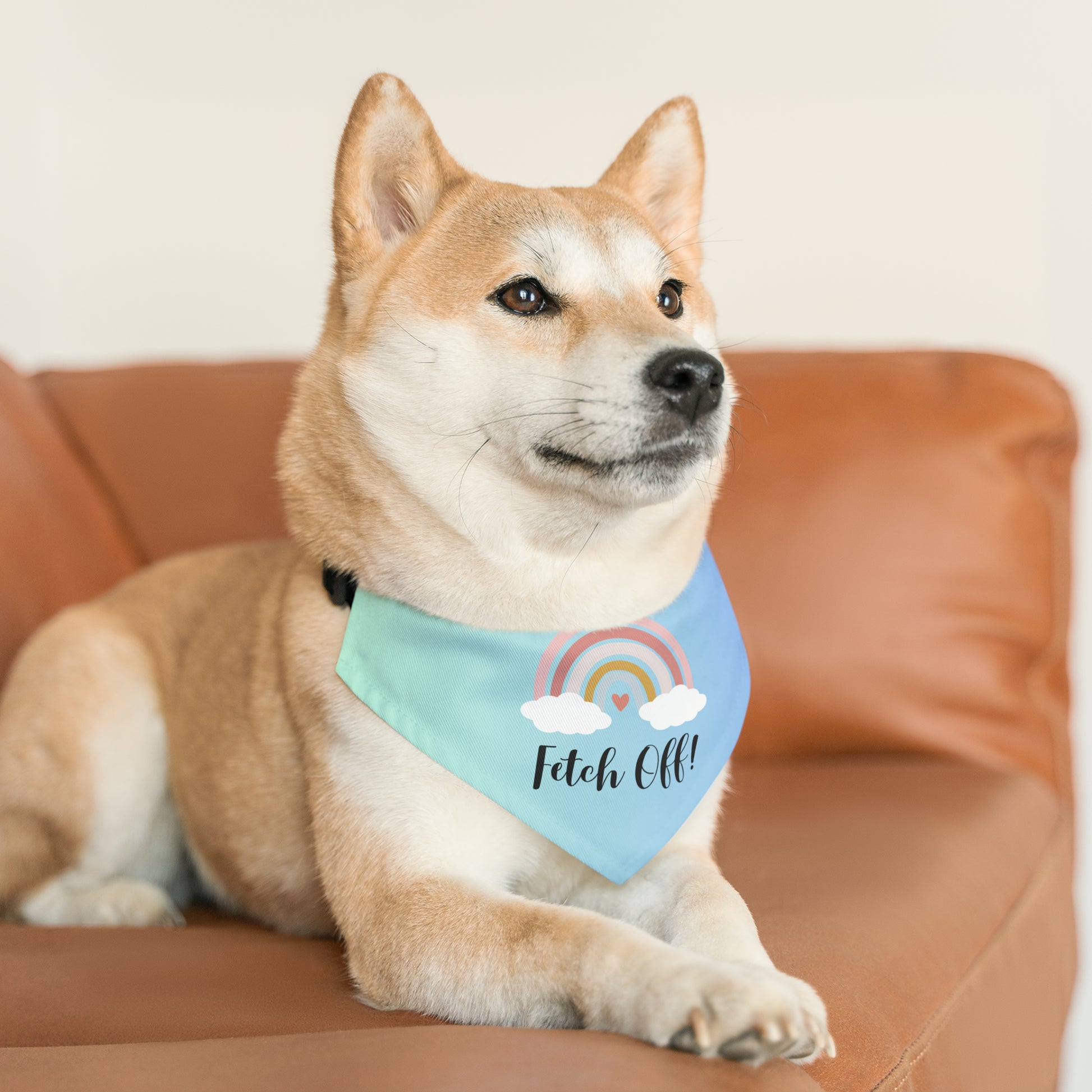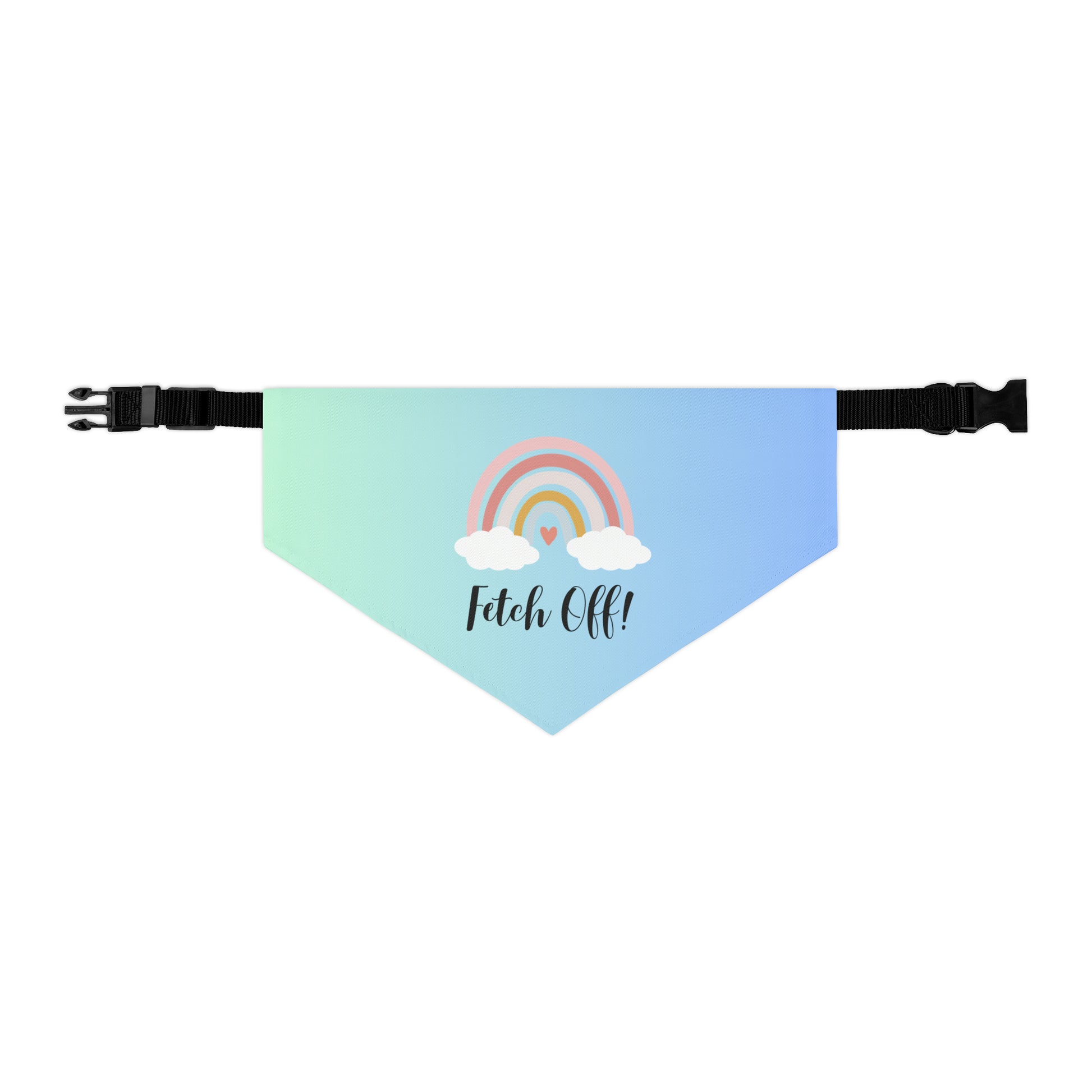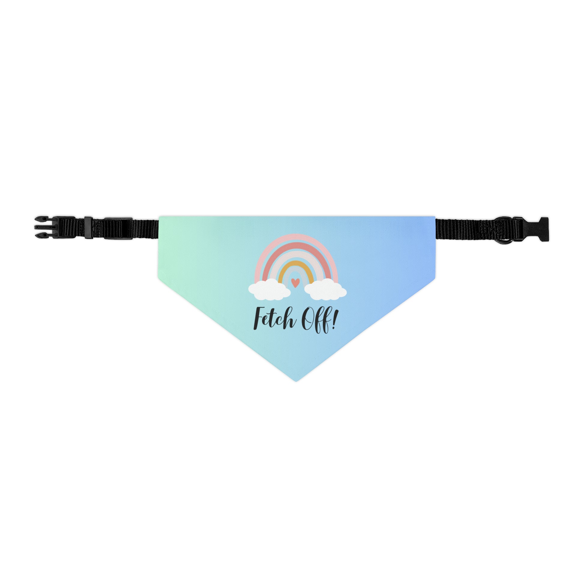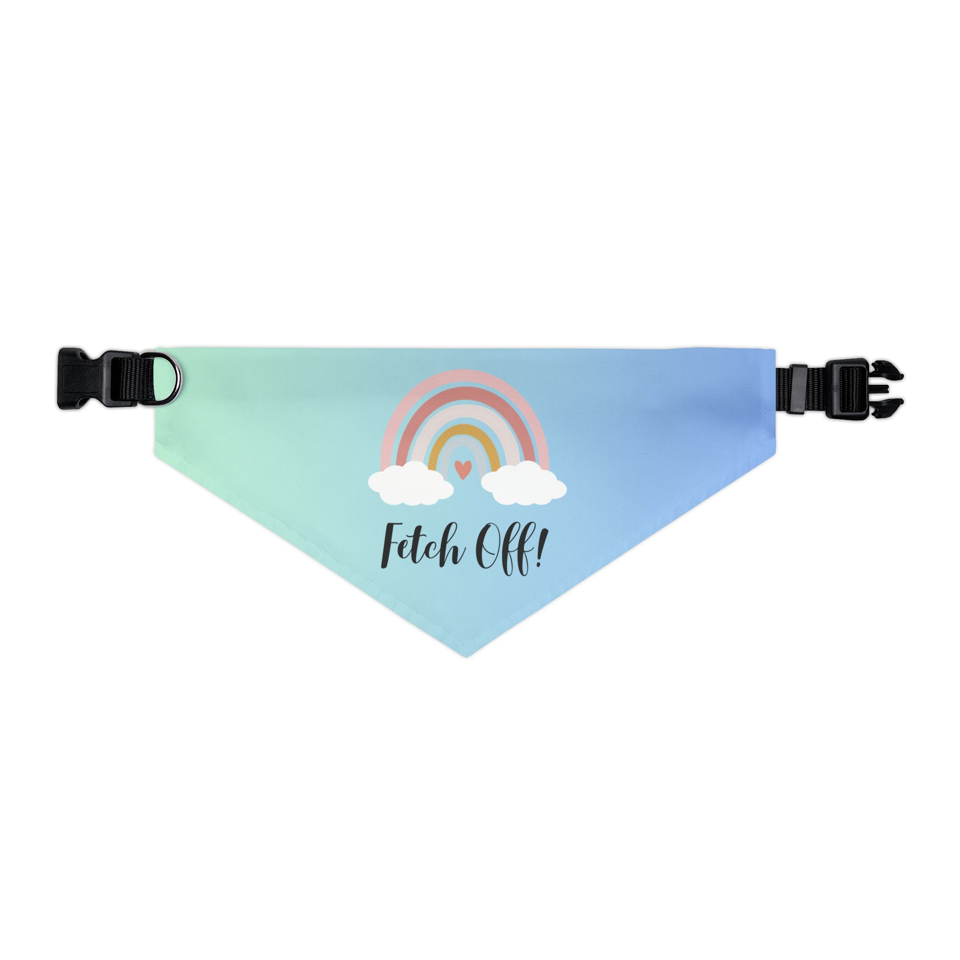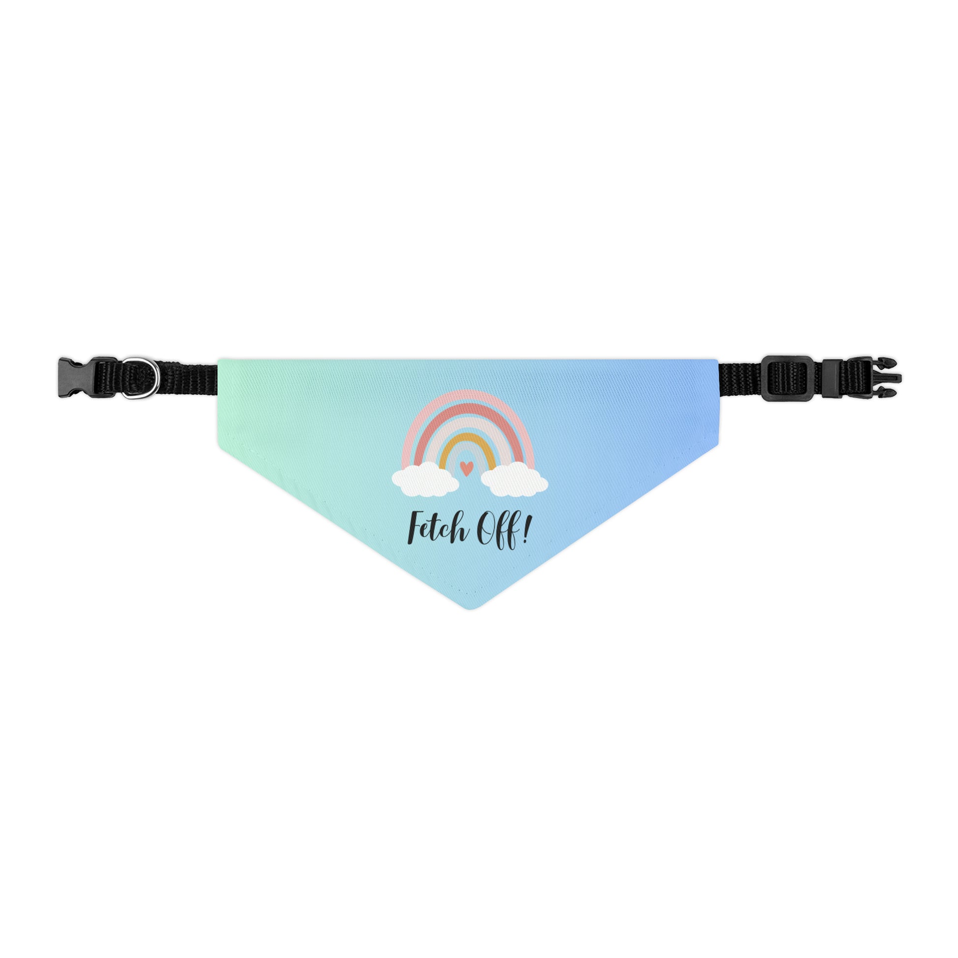 Our "Fetch Off" Rainbow Pet Collar Bandana the perfect accessory for your furry companion who embraces their unique personality and isn't afraid to make a statement.