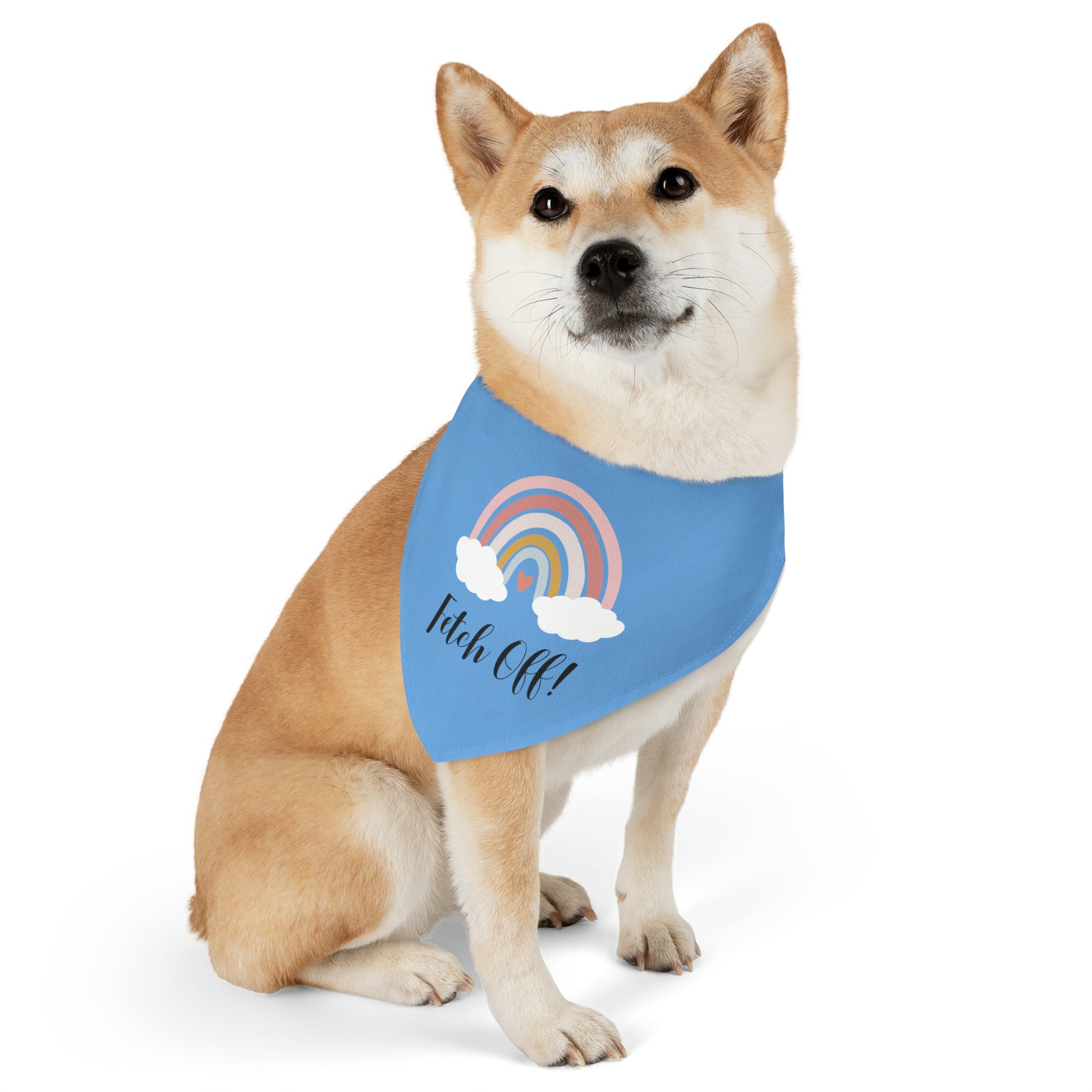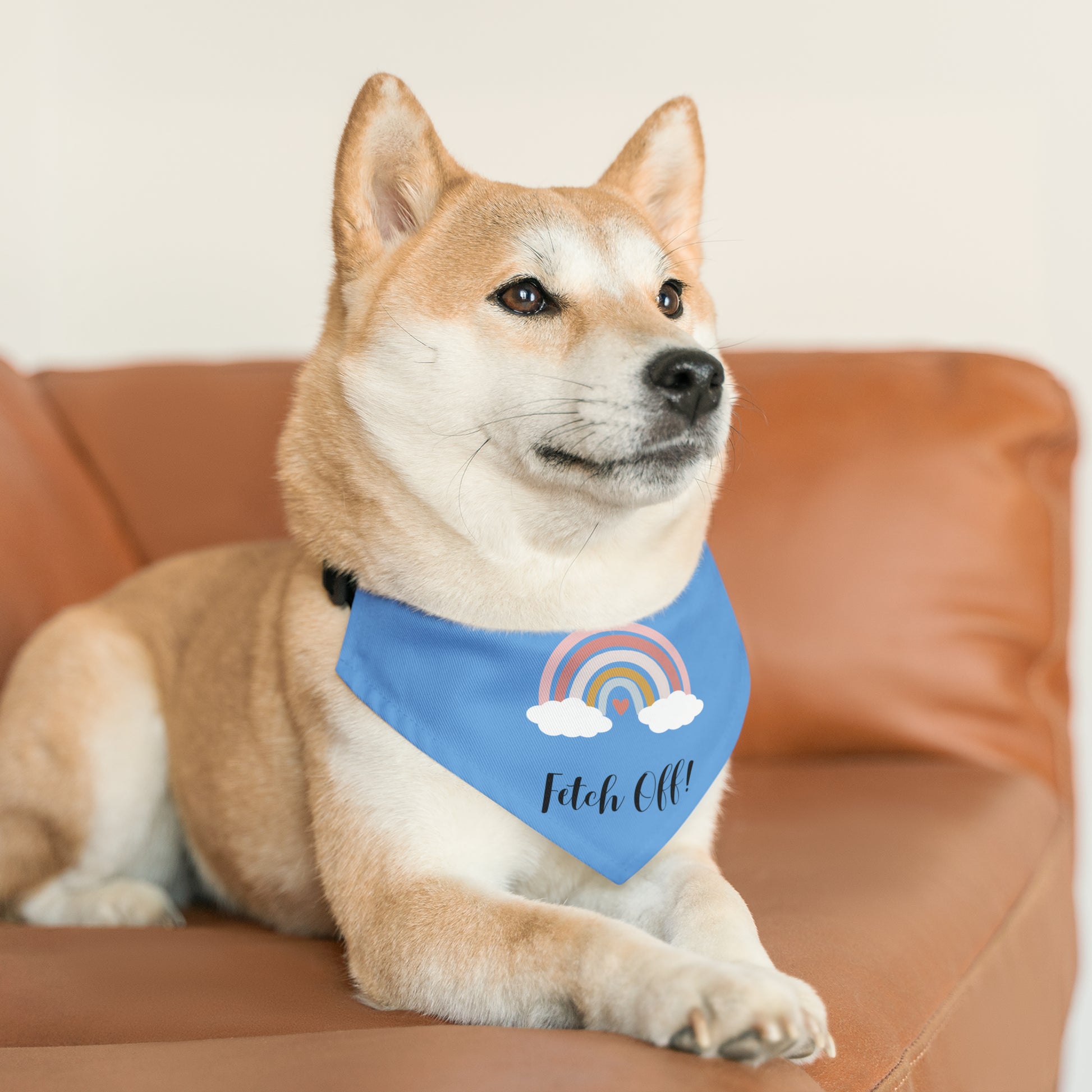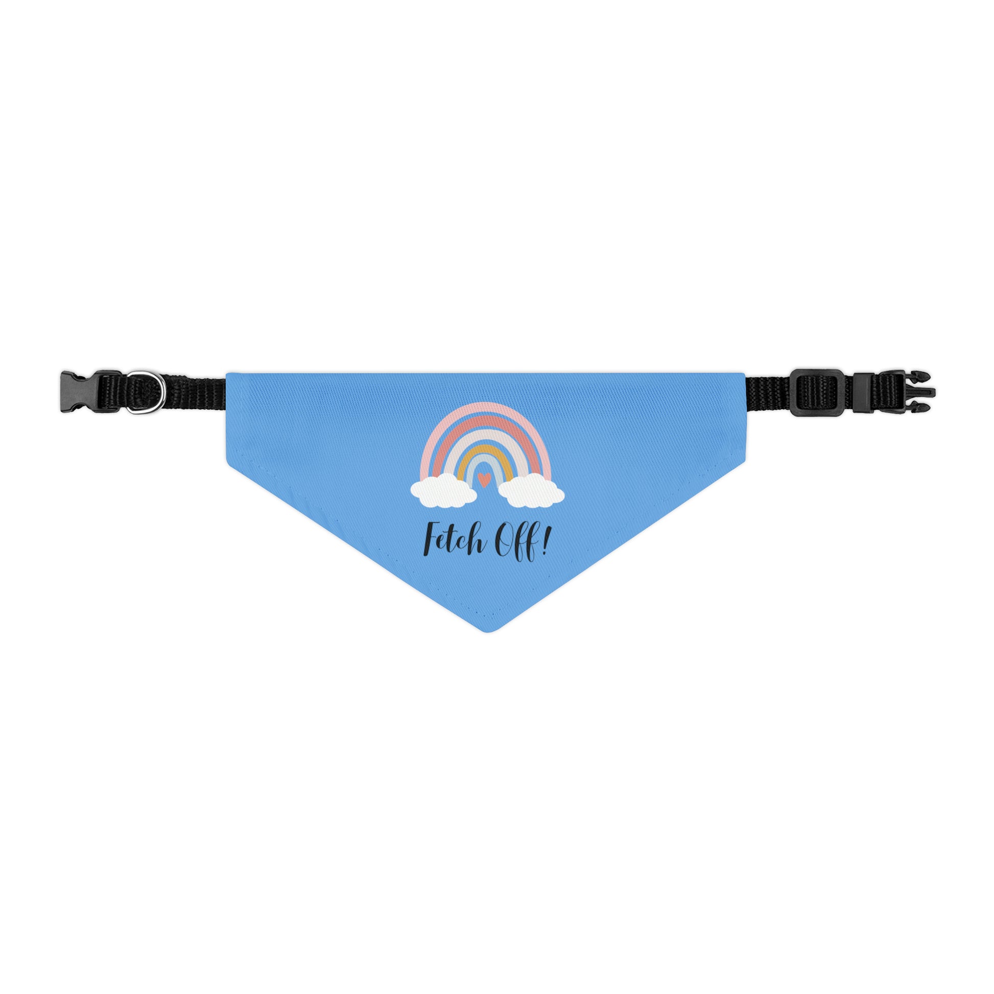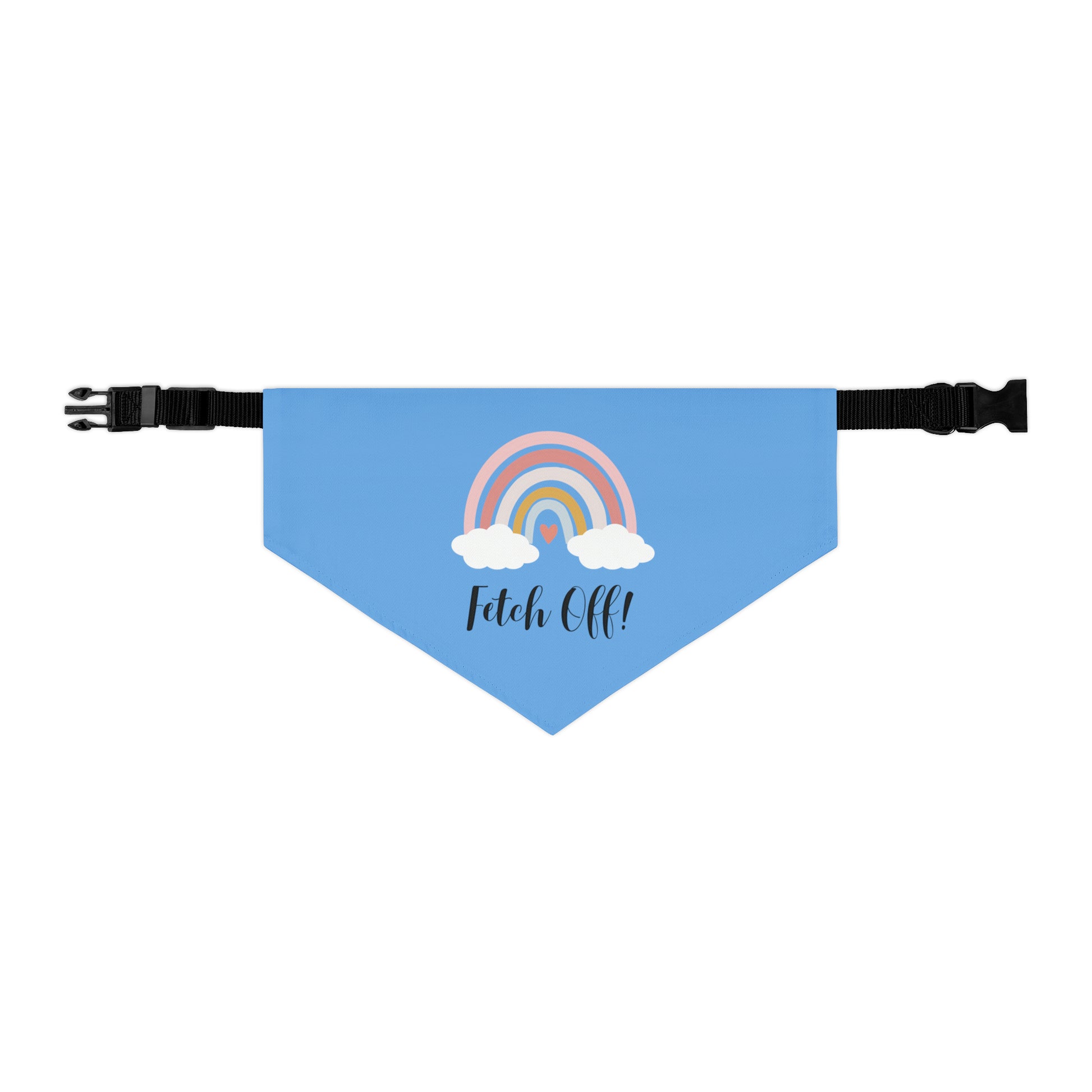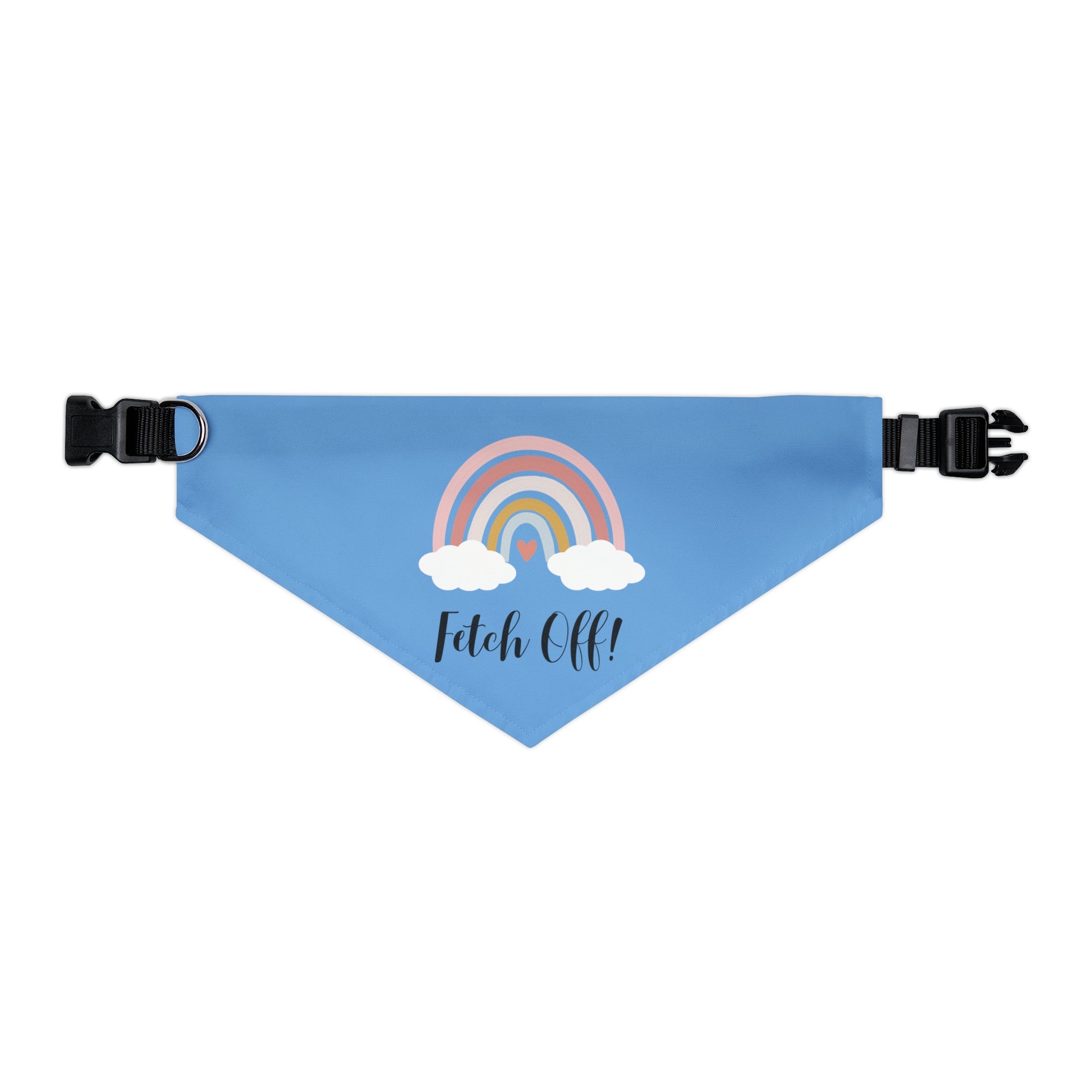 Our "Fetch Off" Rainbow Pet Collar Bandana, the perfect accessory for your furry companion who embraces their unique personality and isn't afraid to make a statement.