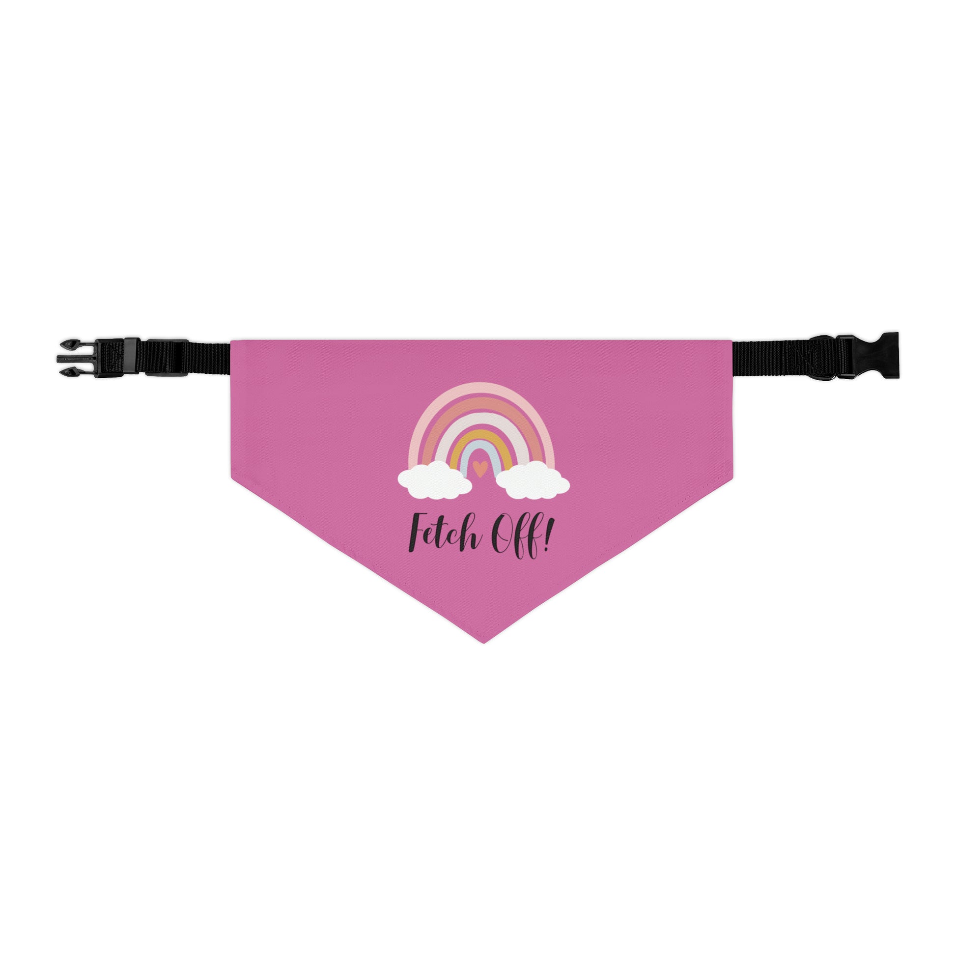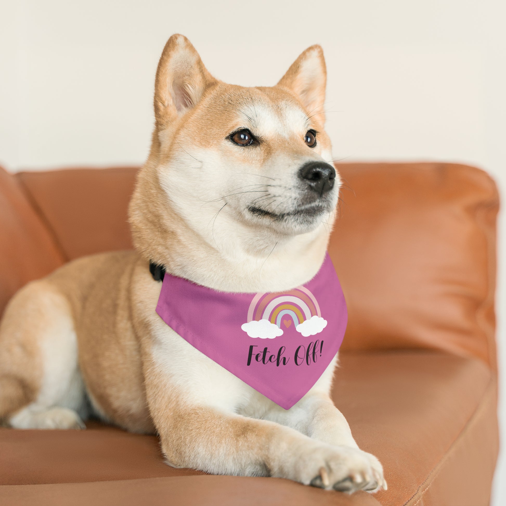 Our "Fetch Off" Rainbow Pet Collar Bandana, the perfect accessory for your furry companion who embraces their unique personality and isn't afraid to make a statement.
