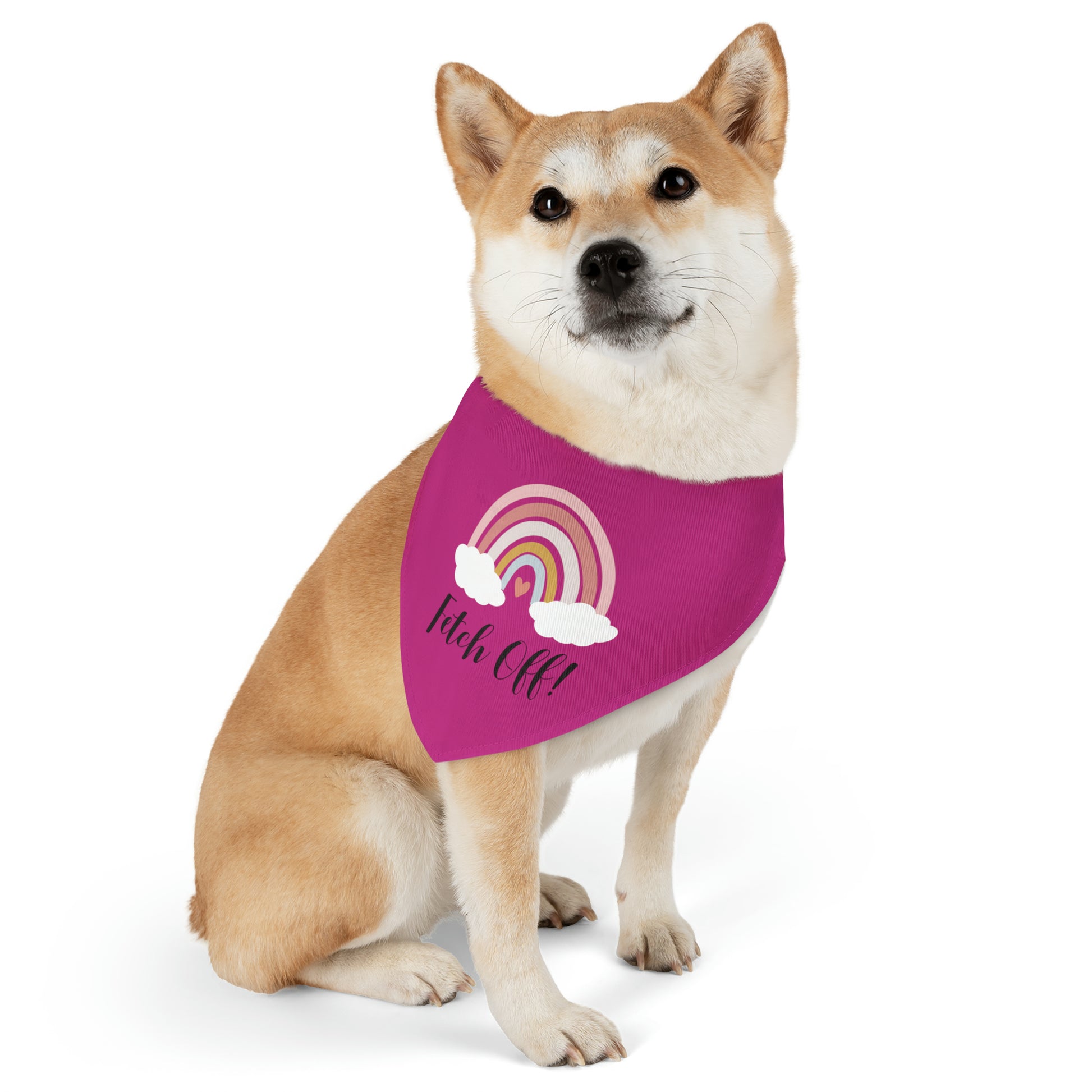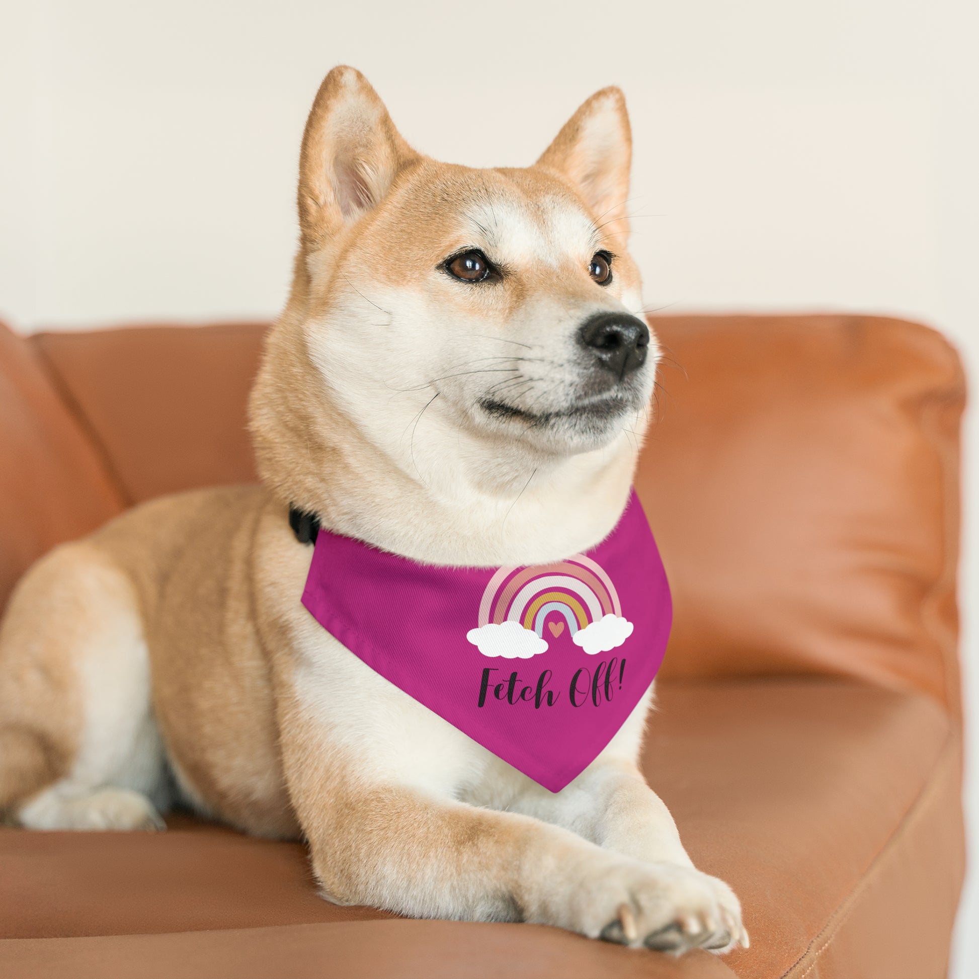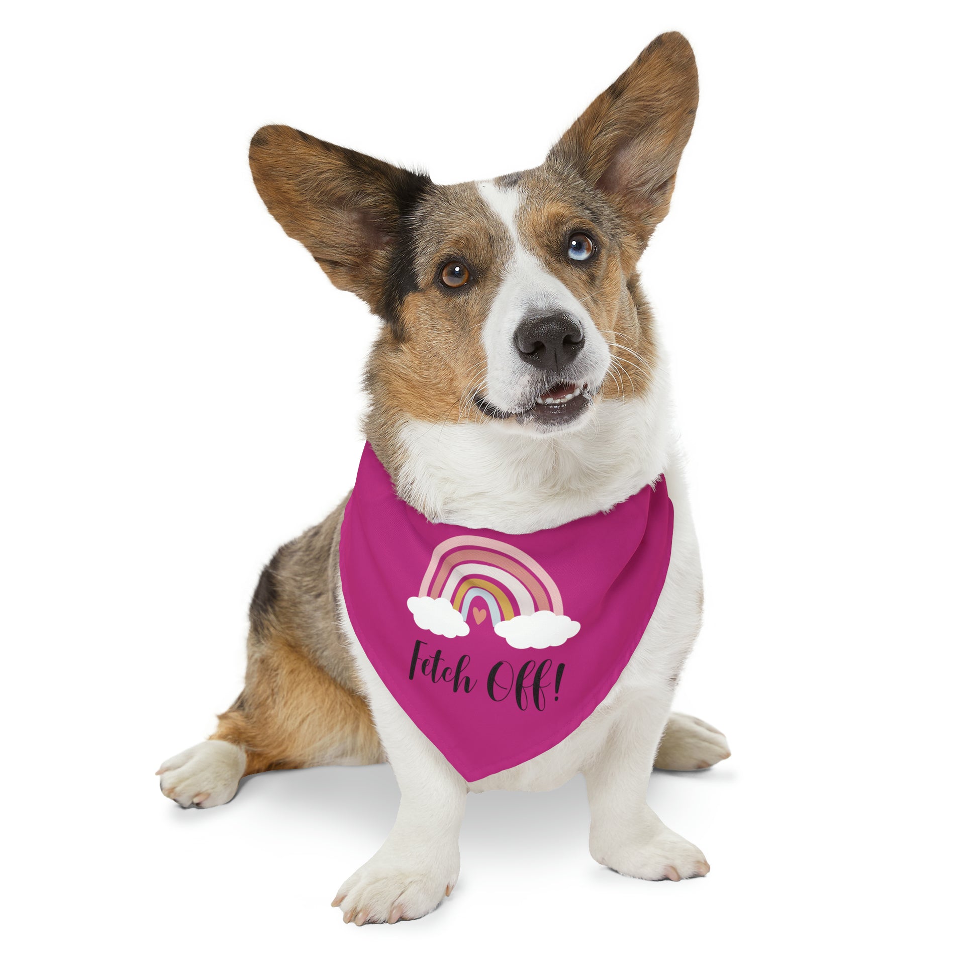 Our "Fetch Off" Rainbow Pet Bandana Collar, the perfect accessory for your furry companion who embraces their unique personality and isn't afraid to make a statement.