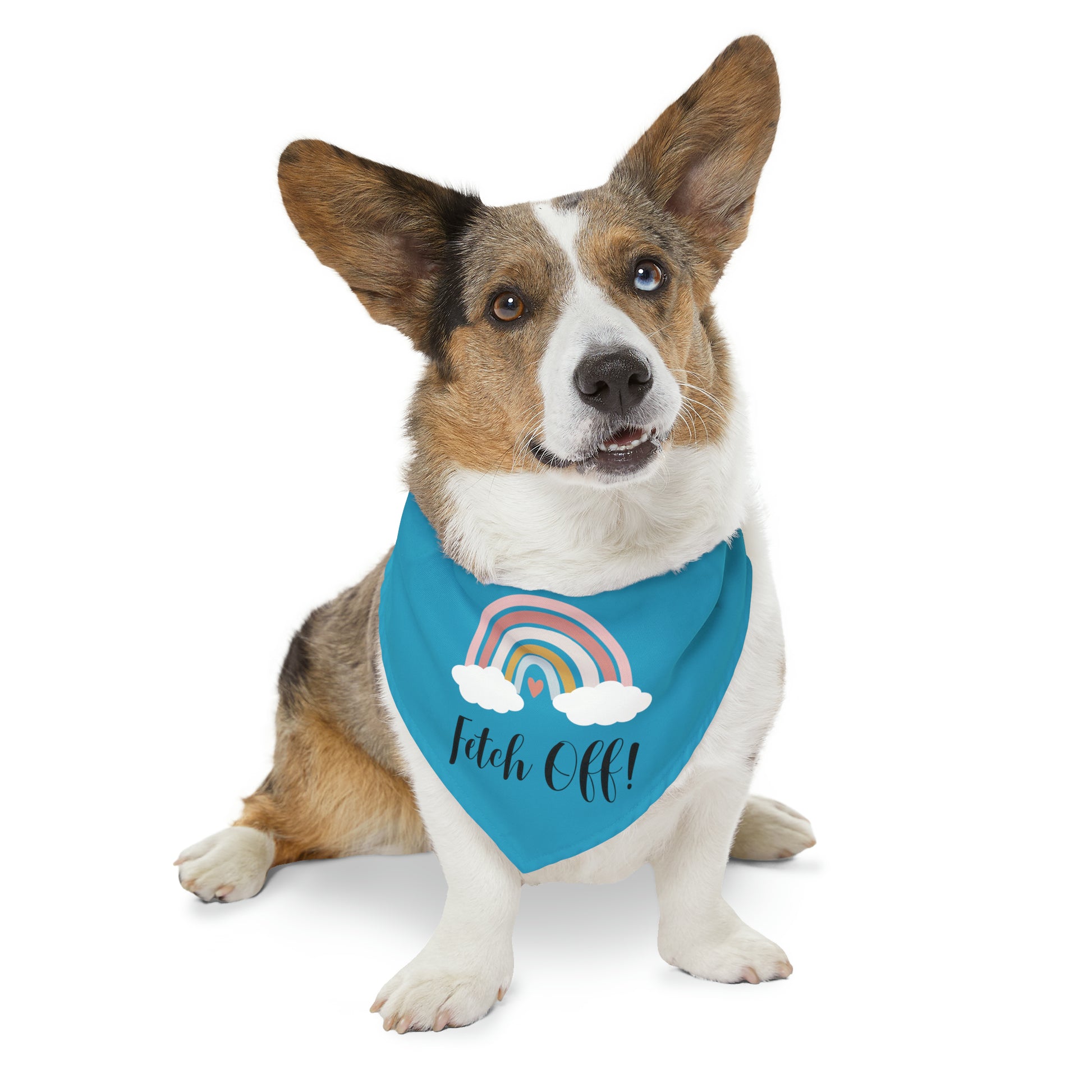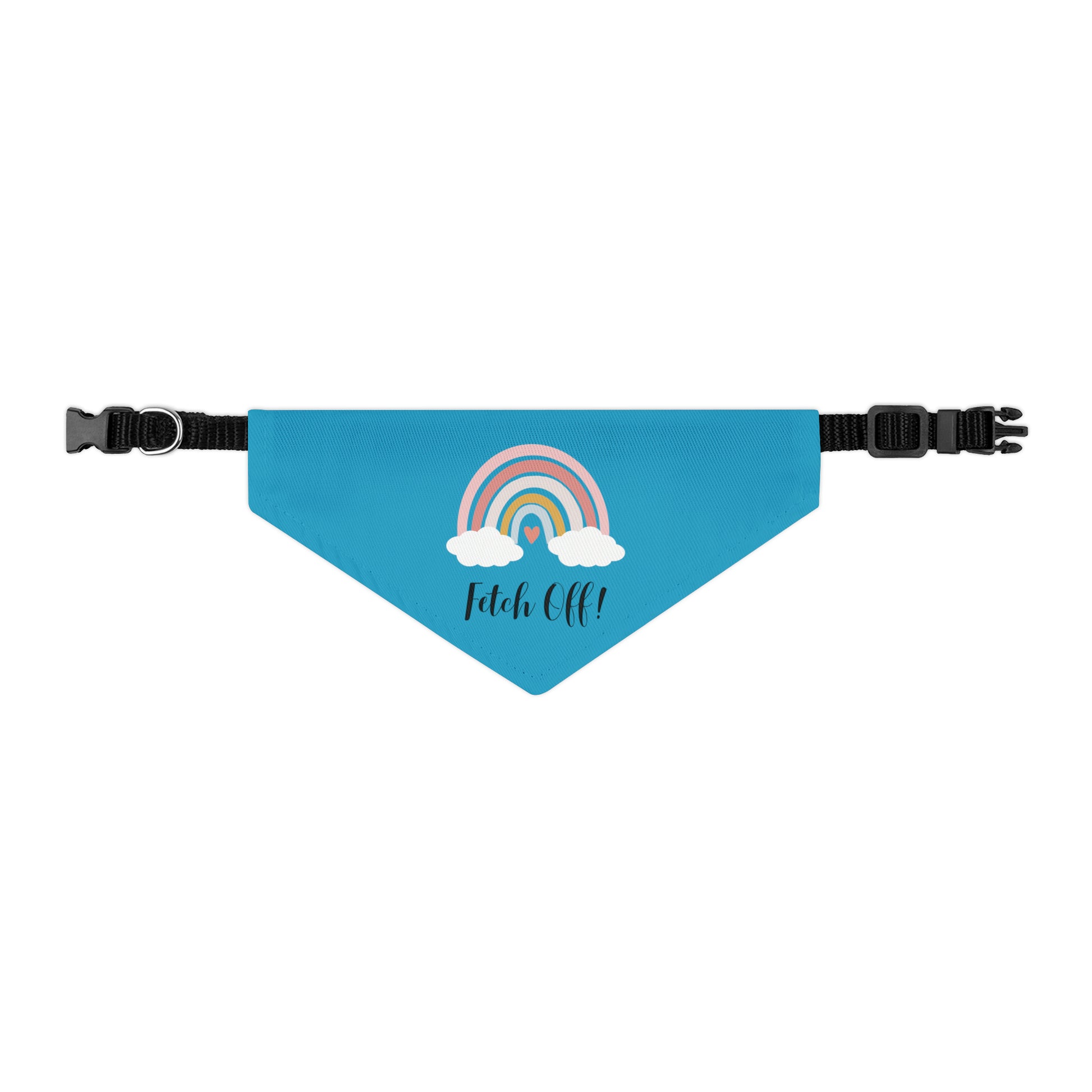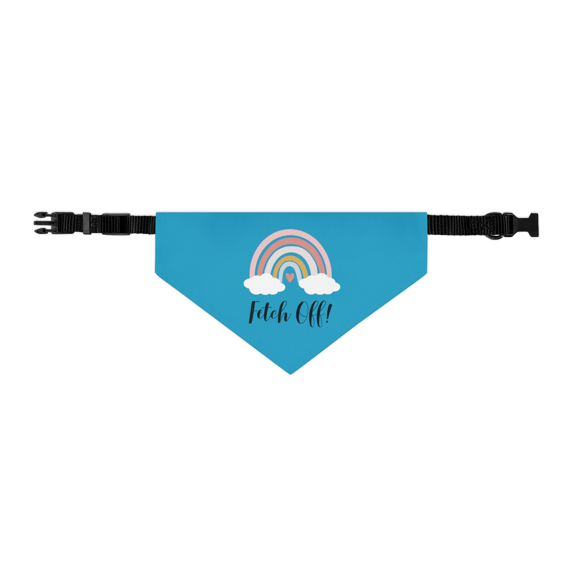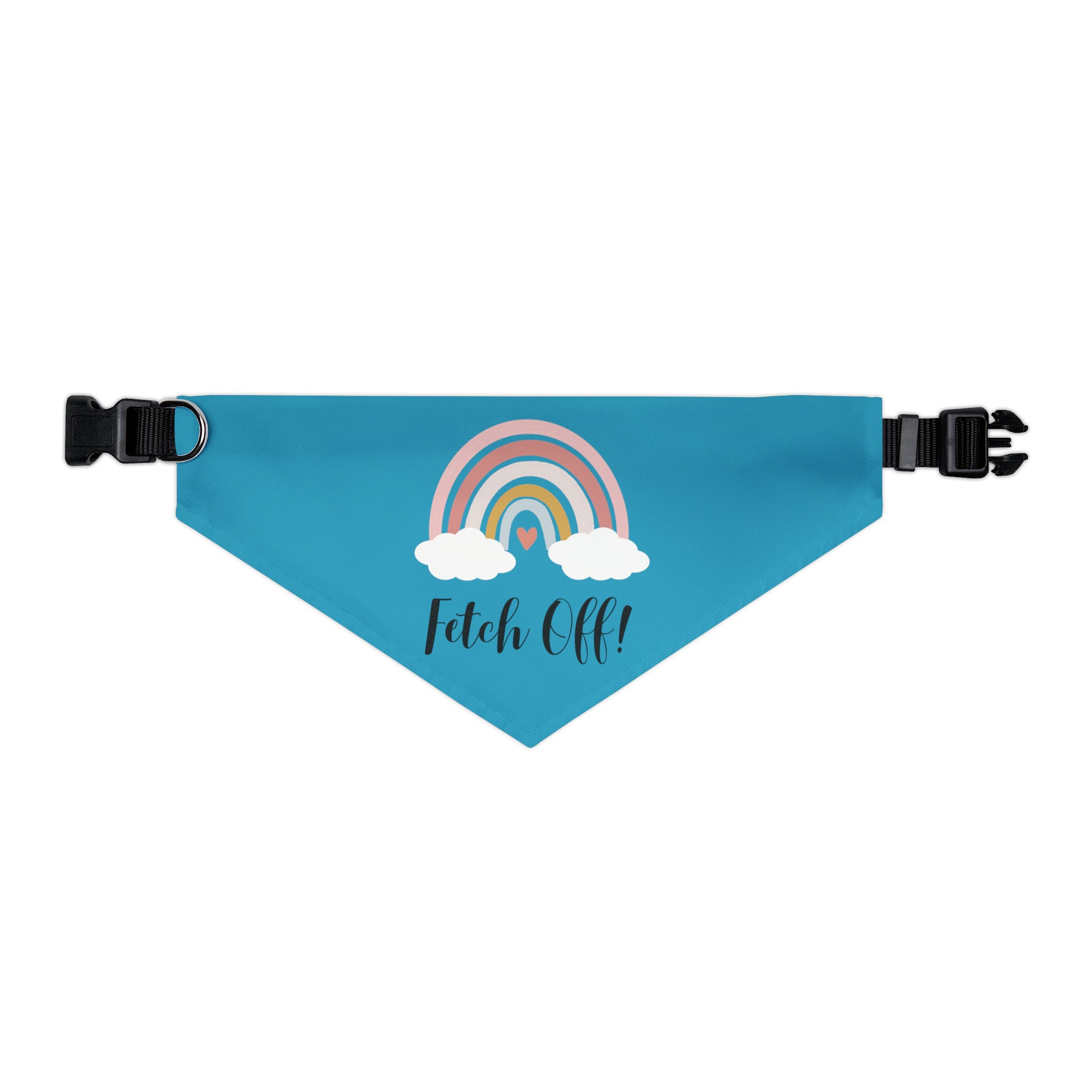Our "Fetch Off" Rainbow Pet Collar Bandana, the perfect accessory for your furry companion who embraces their unique personality and isn't afraid to make a statement.