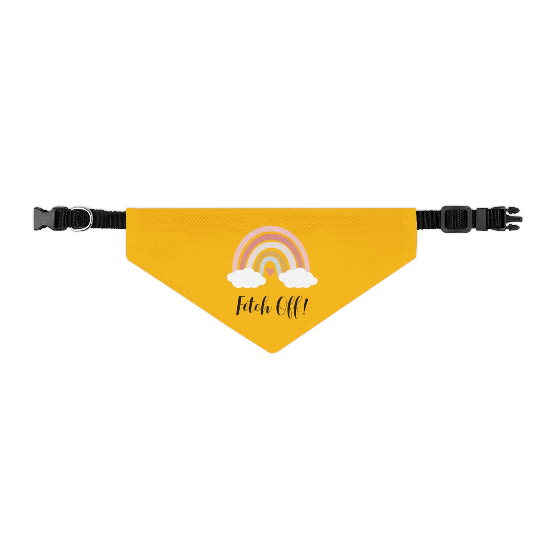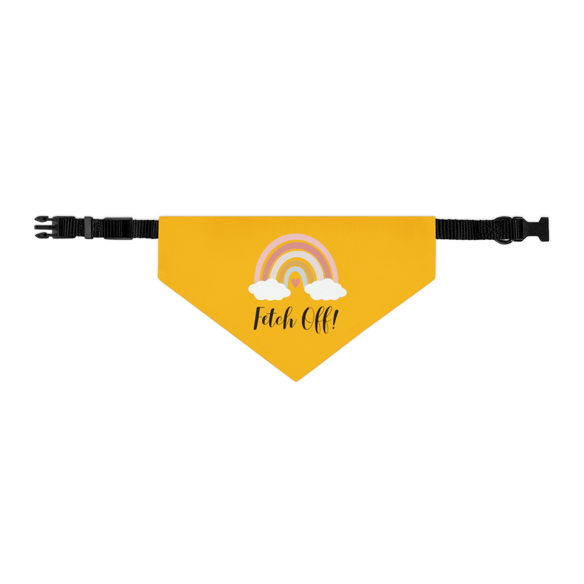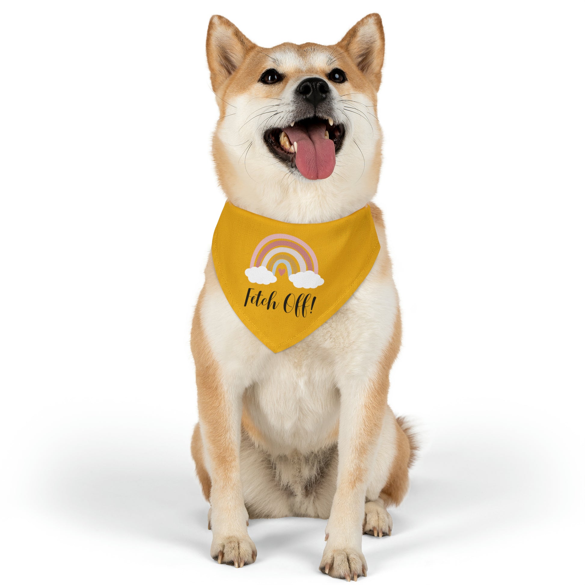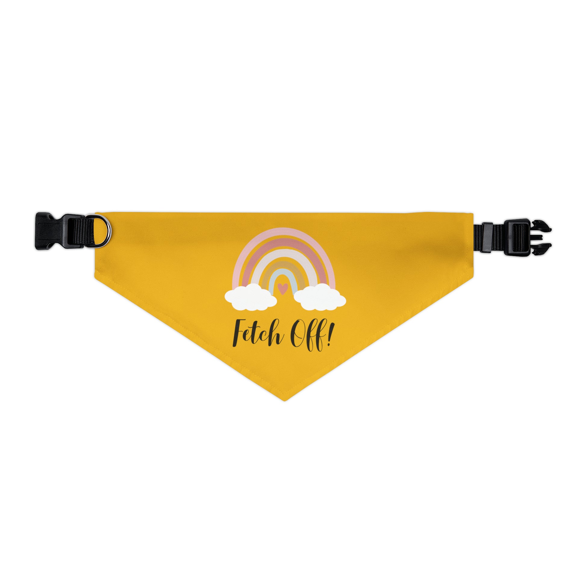 Our "Fetch Off" Rainbow Pet Collar Bandana is the perfect accessory for your furry companion who embraces their unique personality and isn't afraid to make a statement.