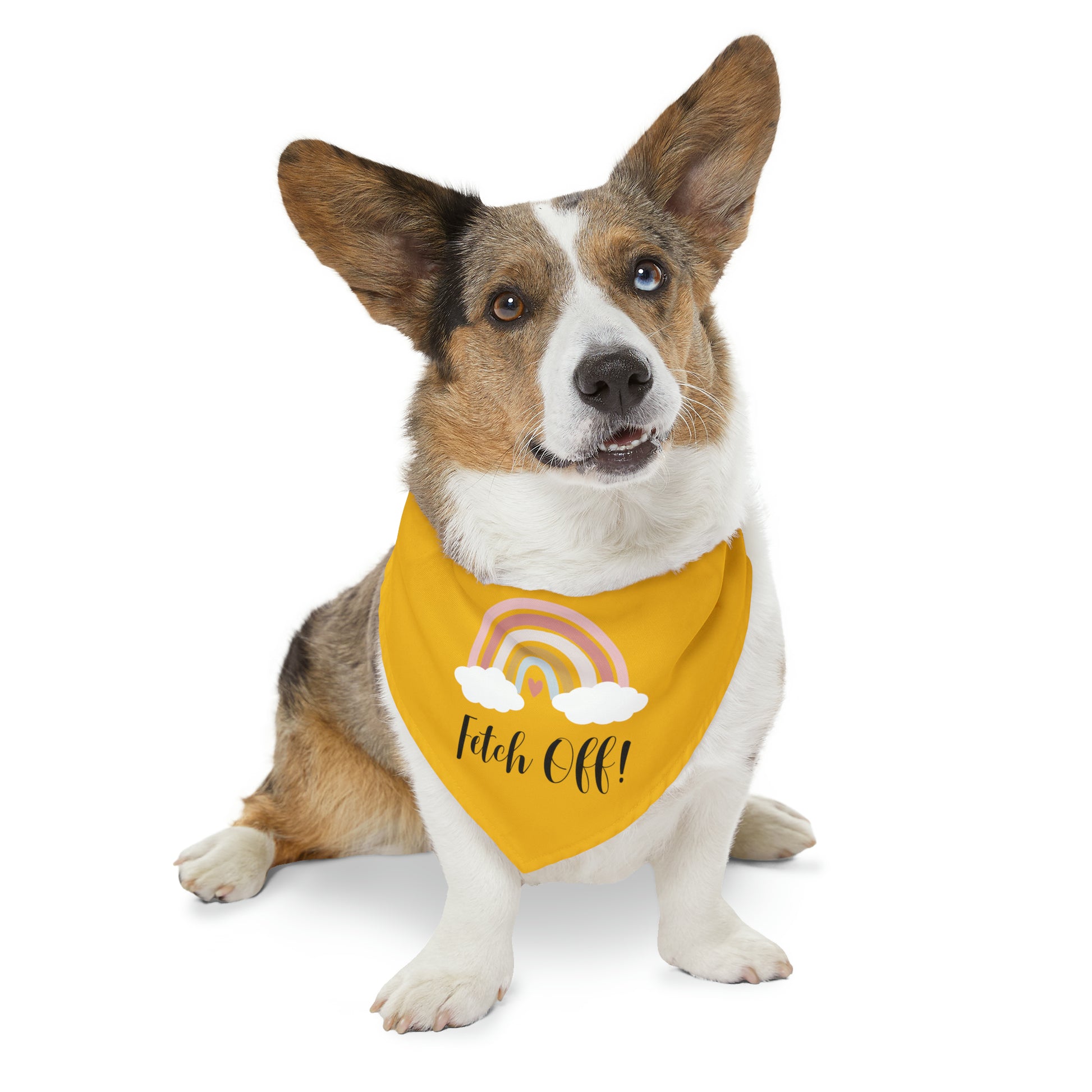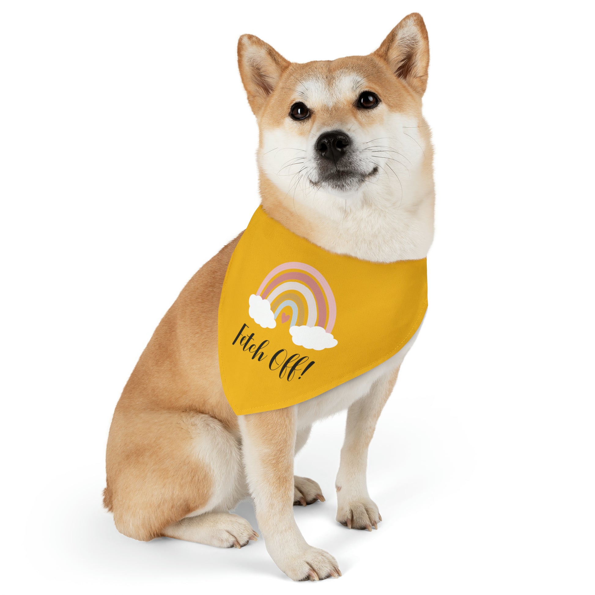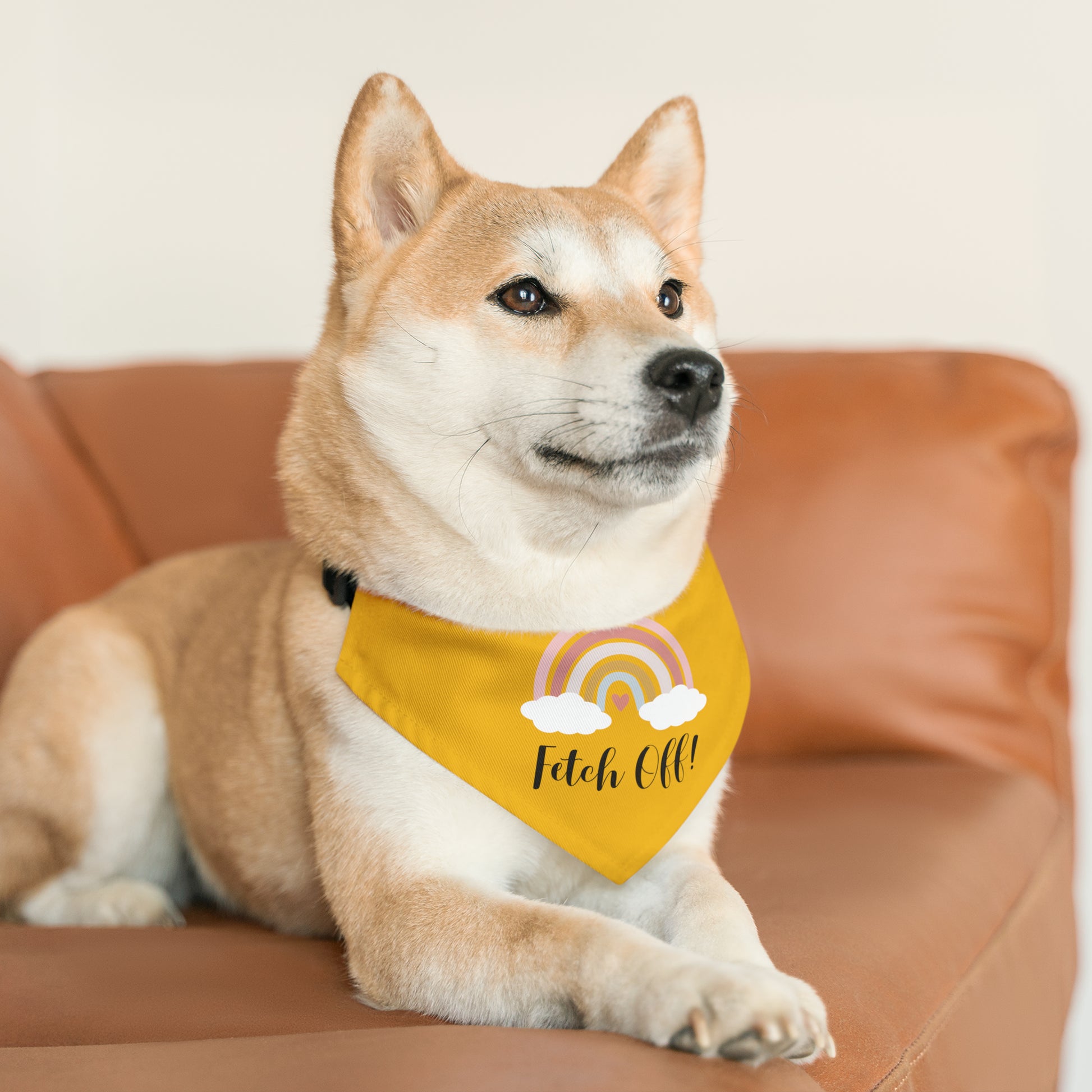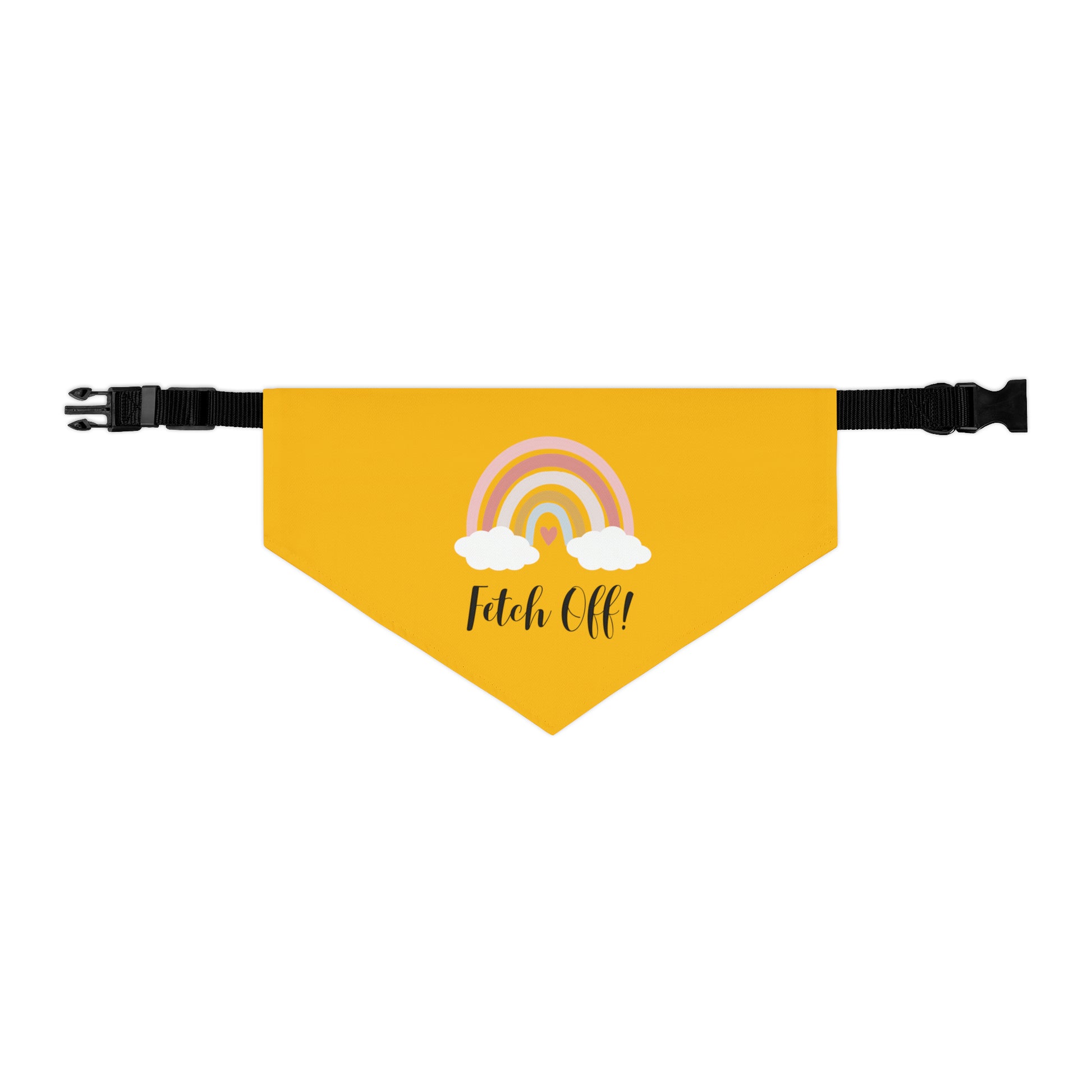 Our "Fetch Off" Rainbow Pet Collar Bandana is the perfect accessory for your furry companion who embraces their unique personality and isn't afraid to make a statement.