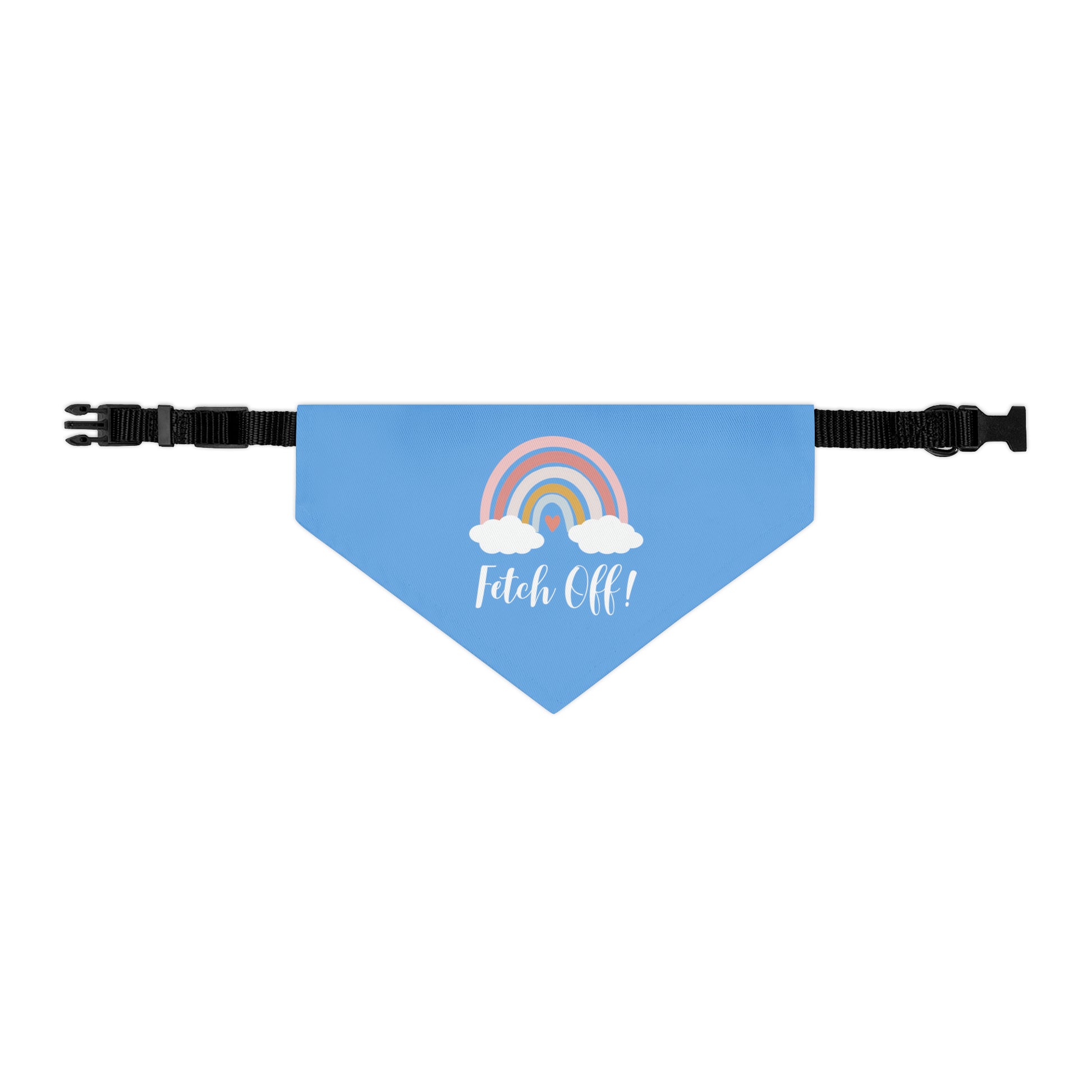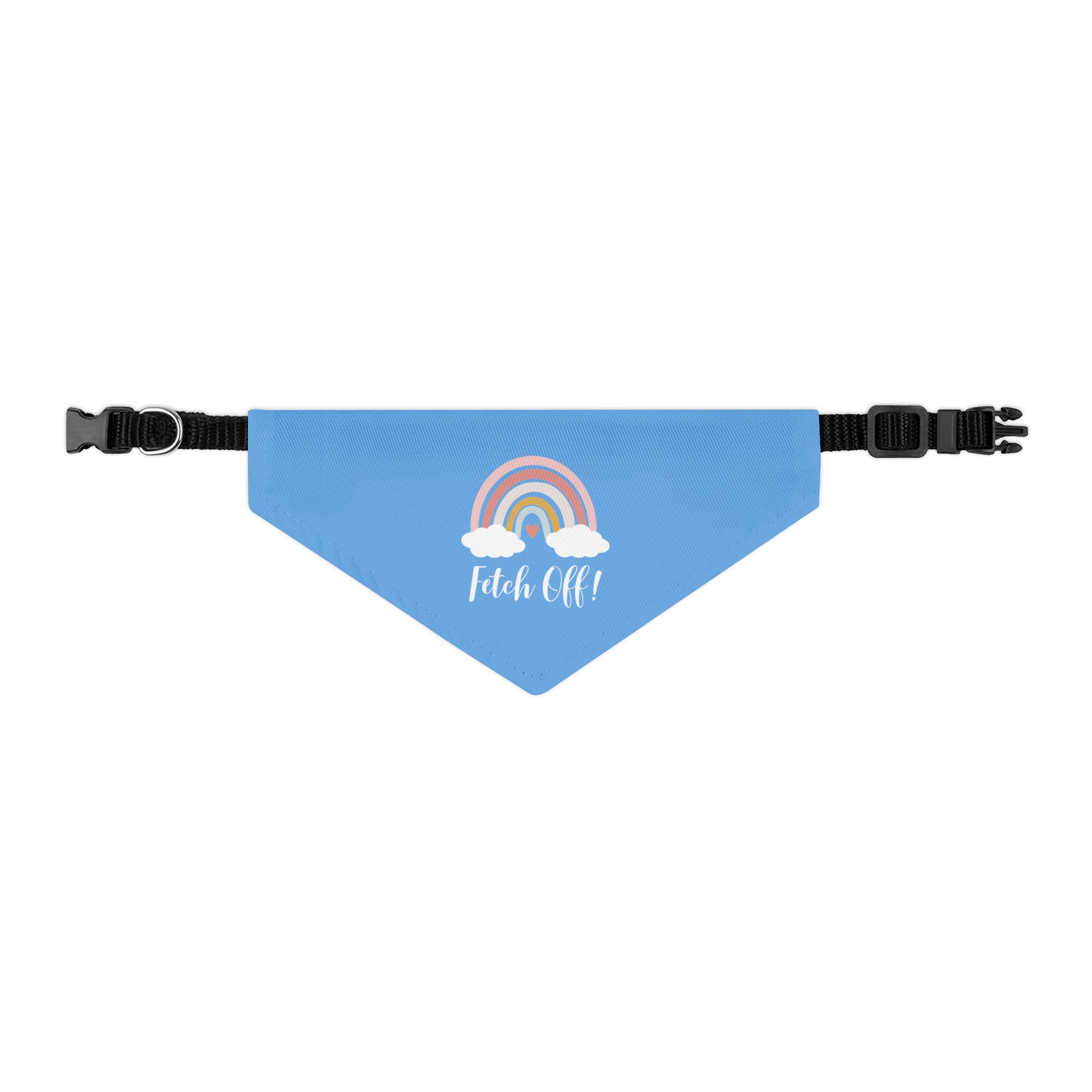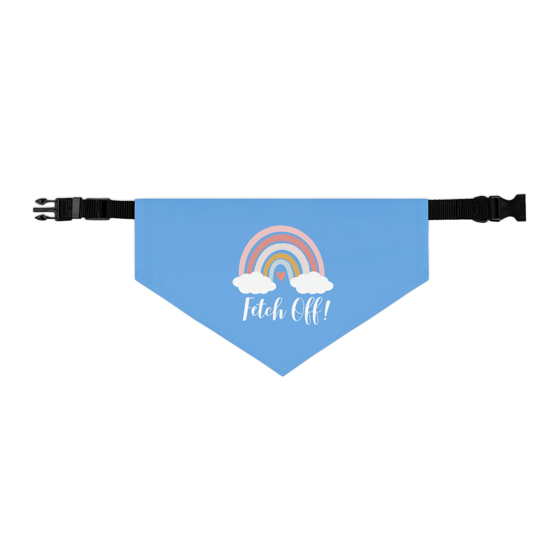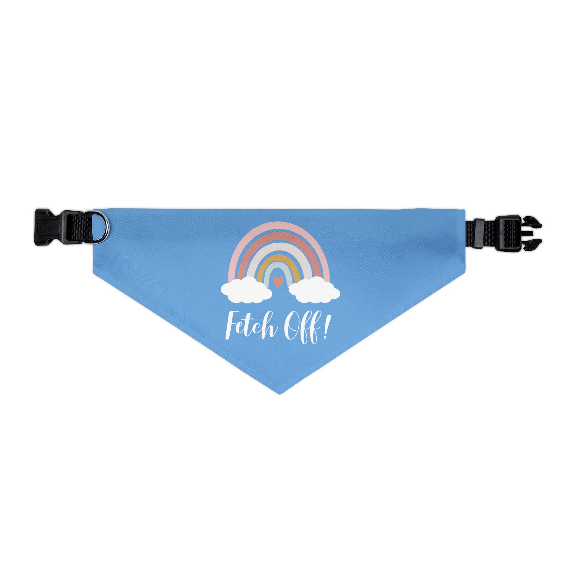 Our "Fetch Off" Rainbow Pet Bandana Collar, the perfect accessory for your furry companion who embraces their unique personality and isn't afraid to make a statement.