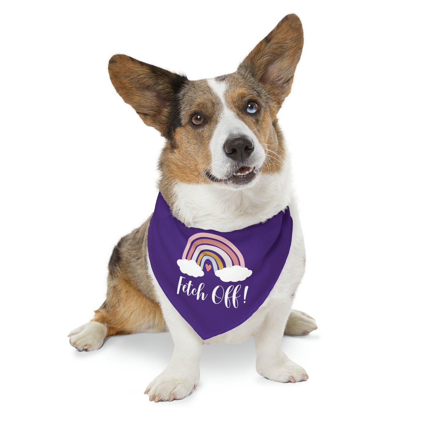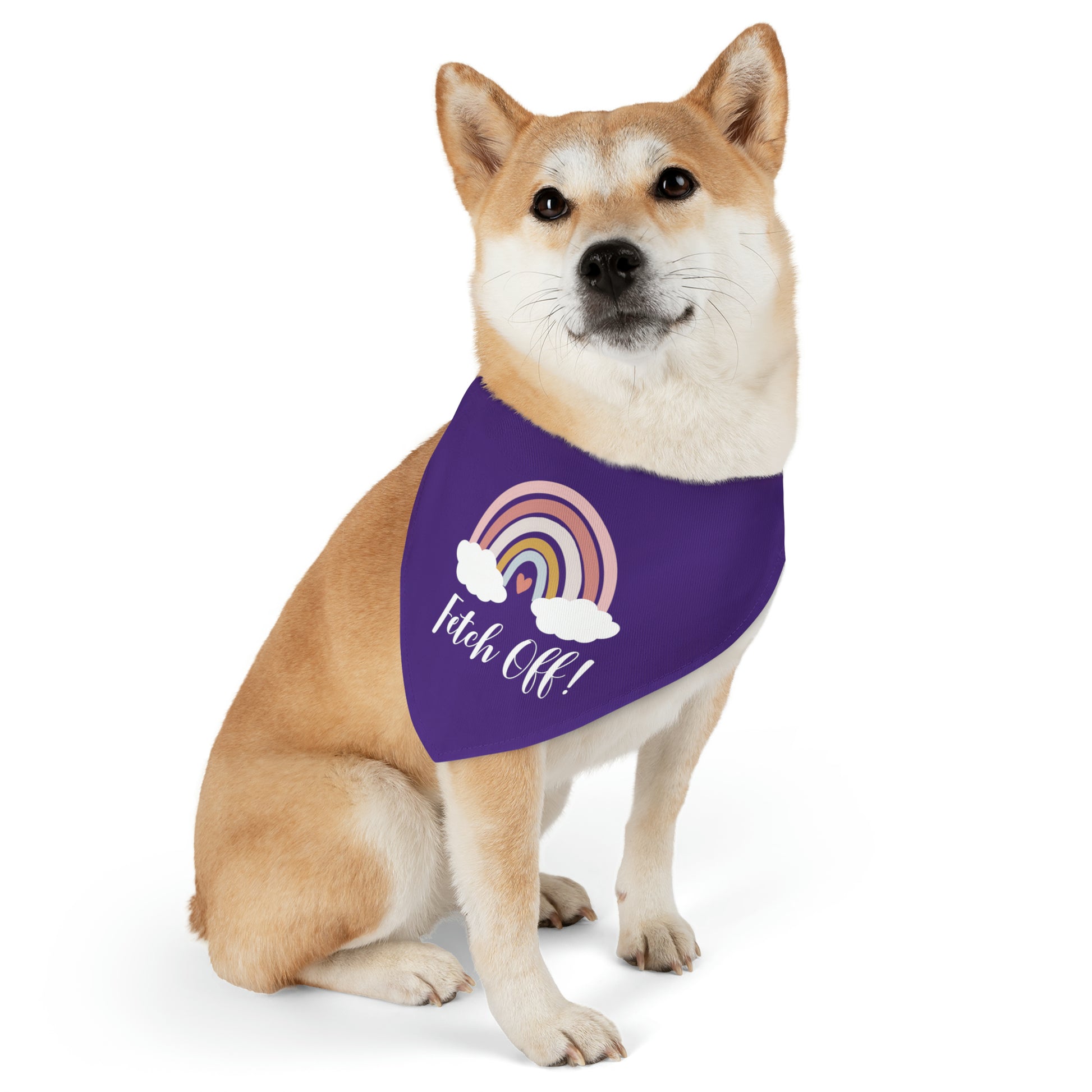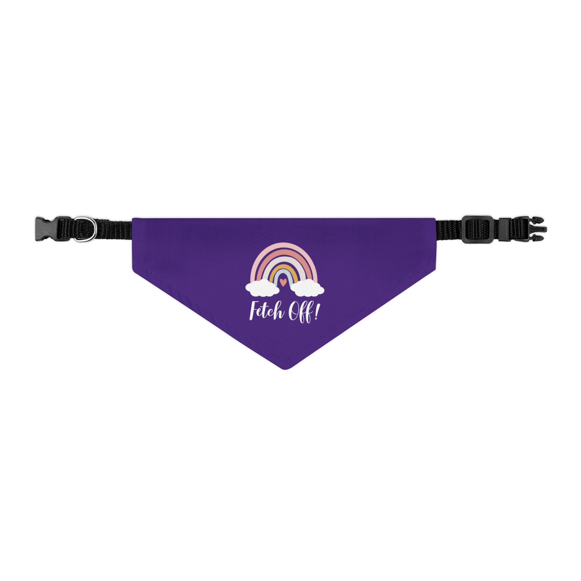 Our "Fetch Off" Rainbow Pet Bandana Collar, the perfect accessory for your furry companion who embraces their unique personality and isn't afraid to make a statement.