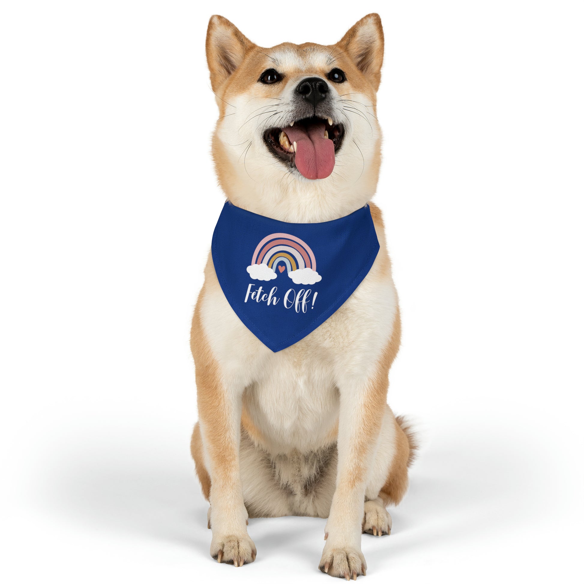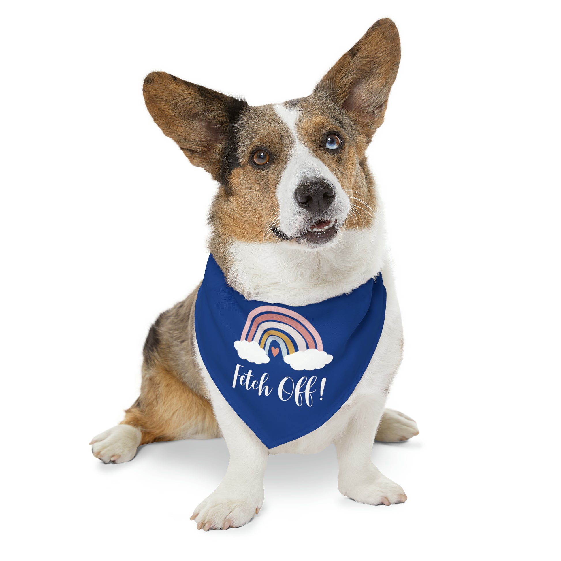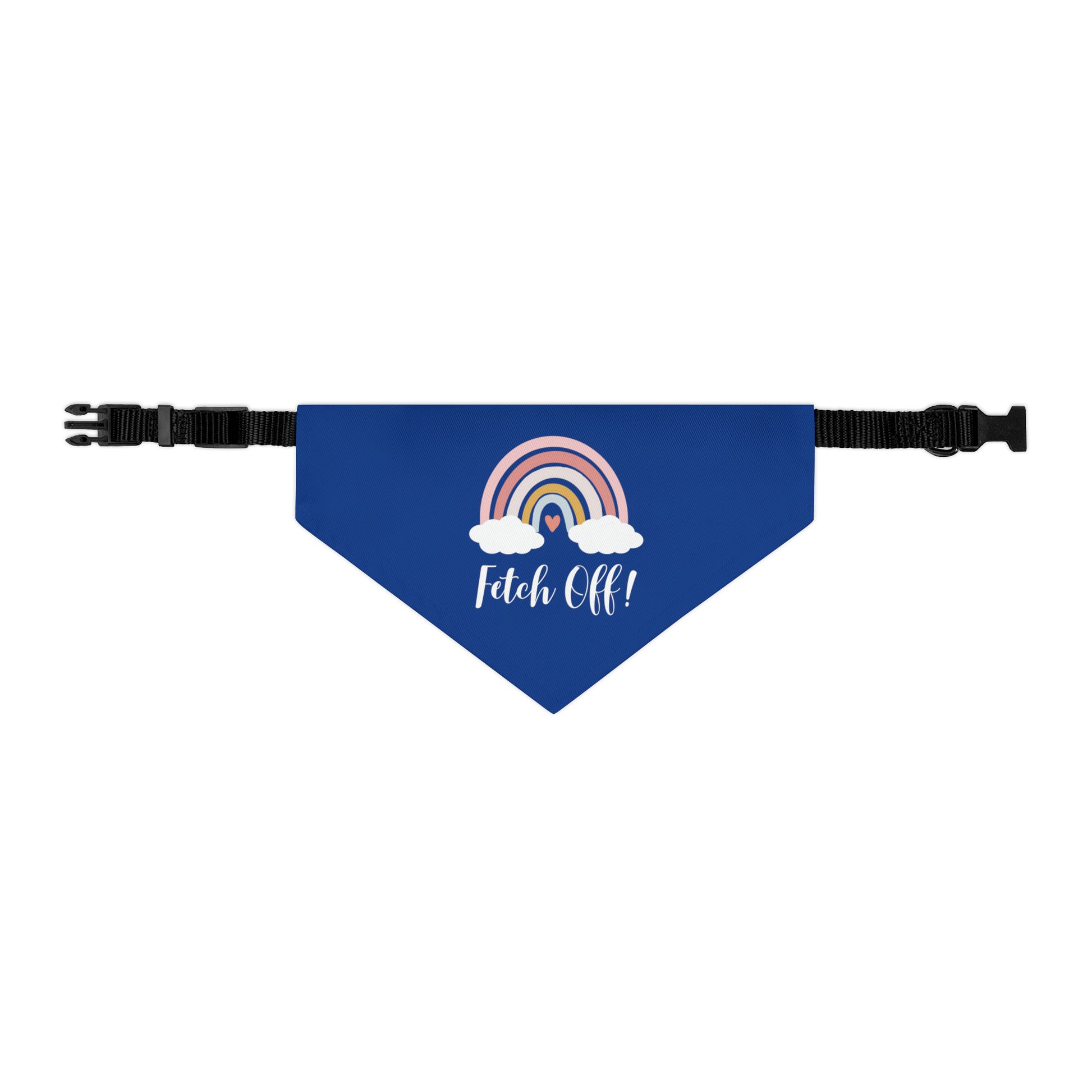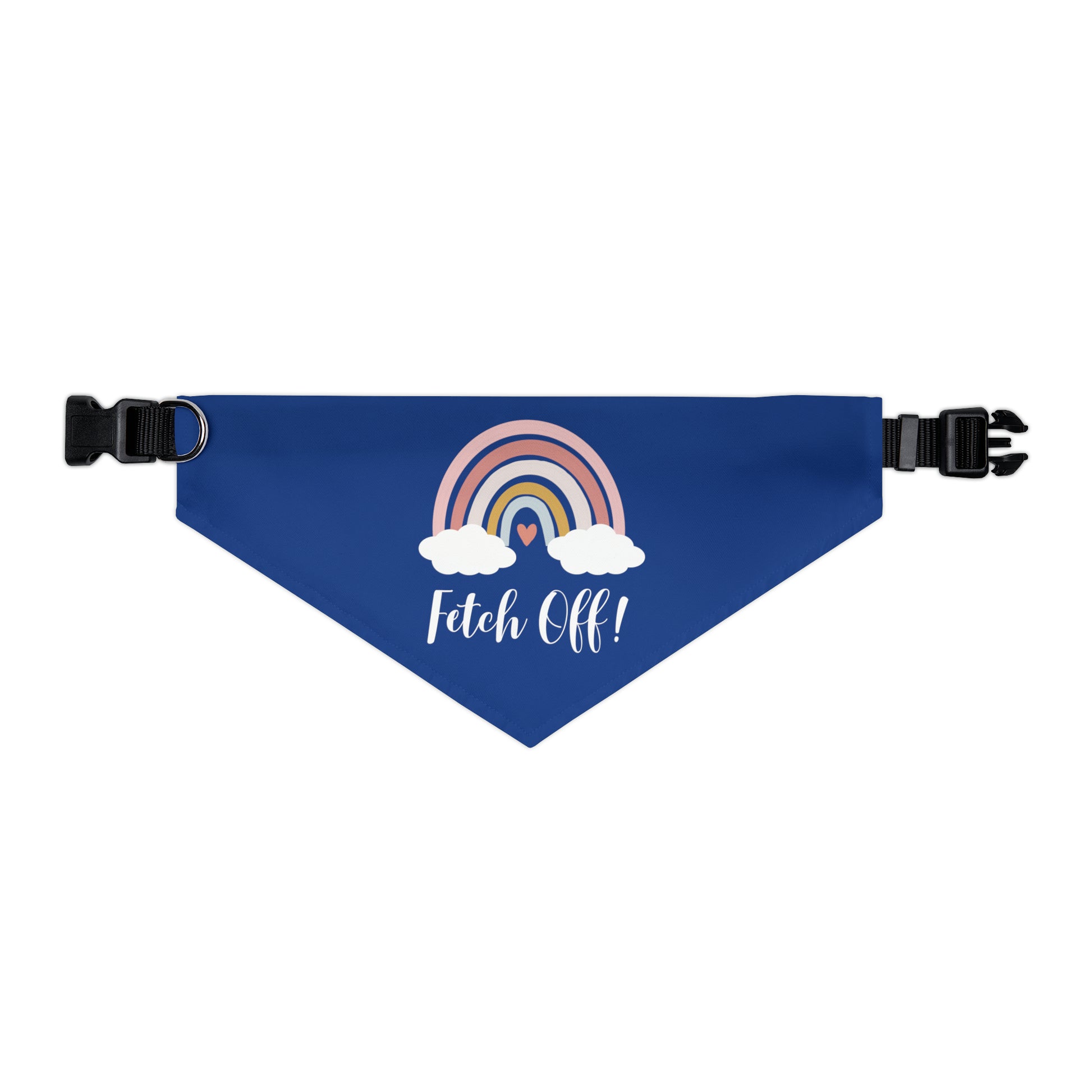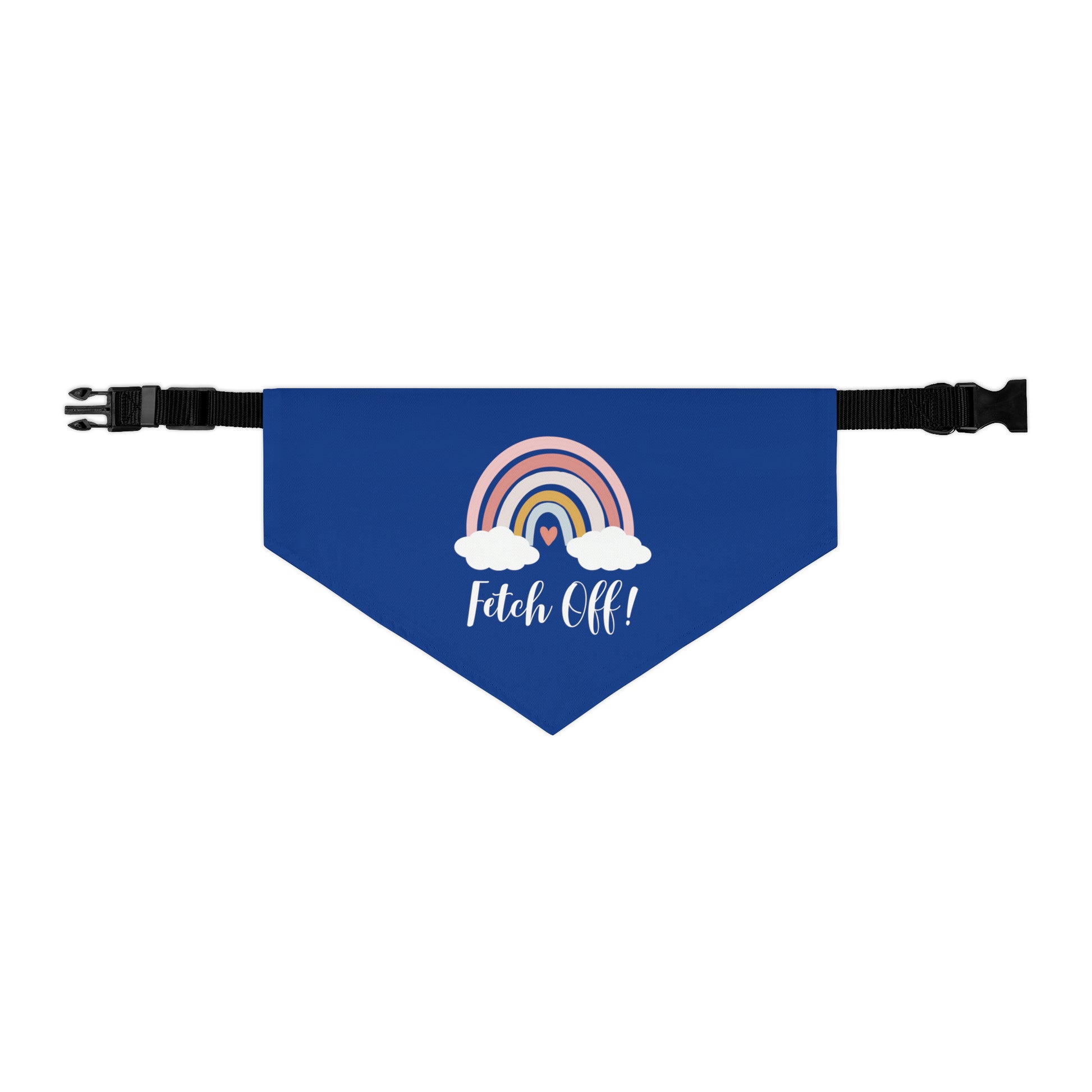 Our "Fetch Off" Rainbow Pet Bandana Collar, the perfect accessory for your furry companion who embraces their unique personality and isn't afraid to make a statement.