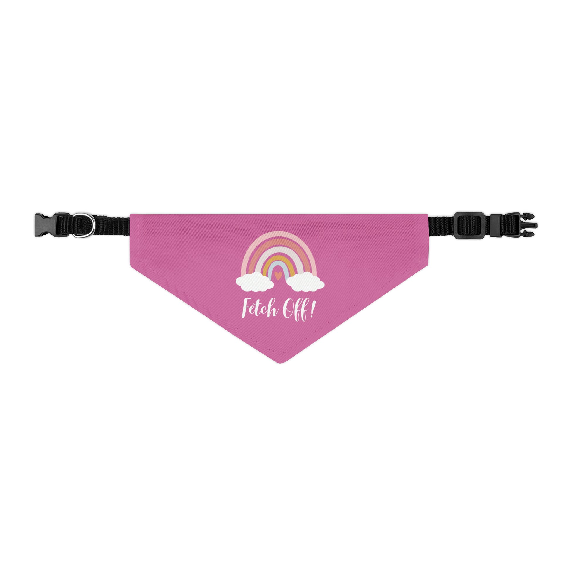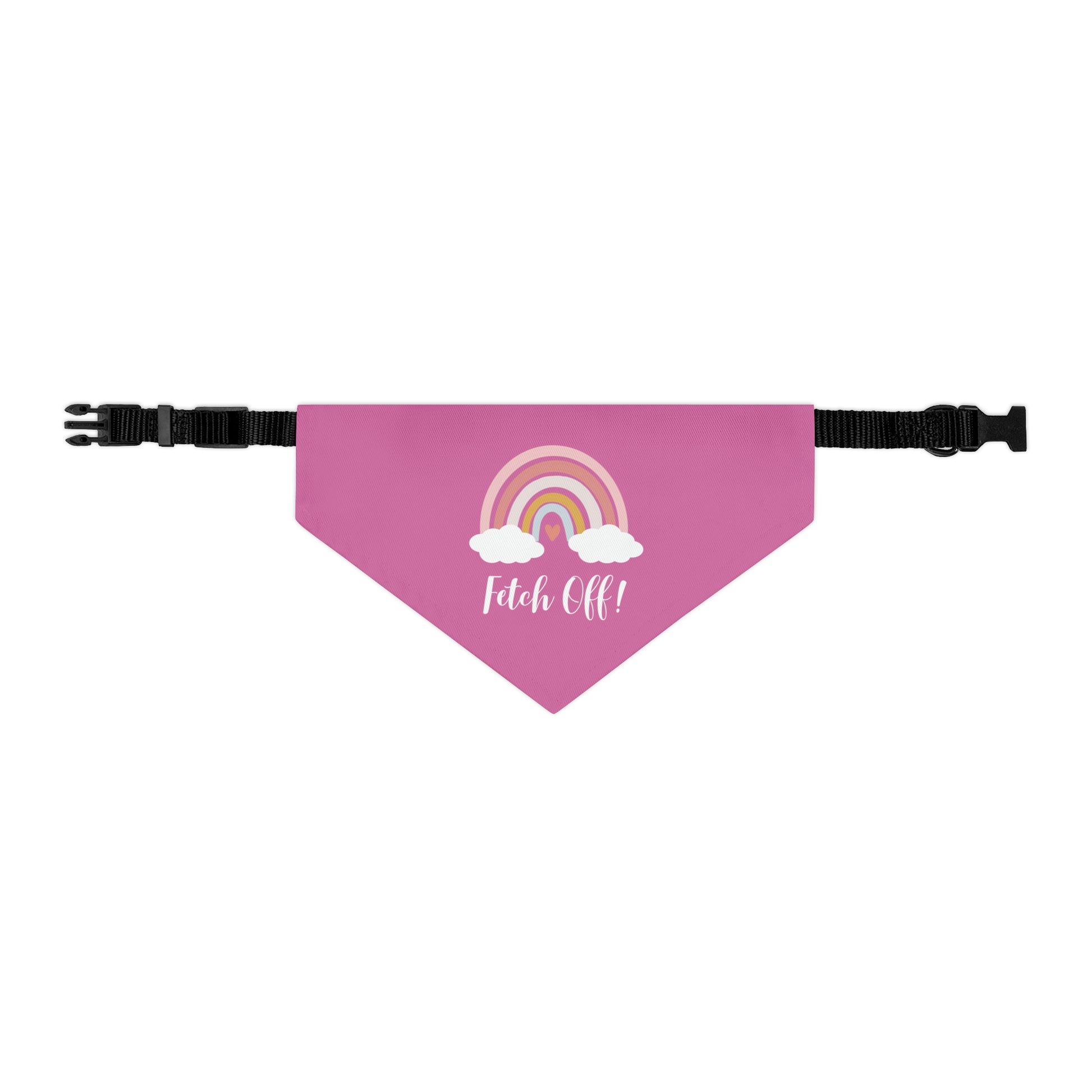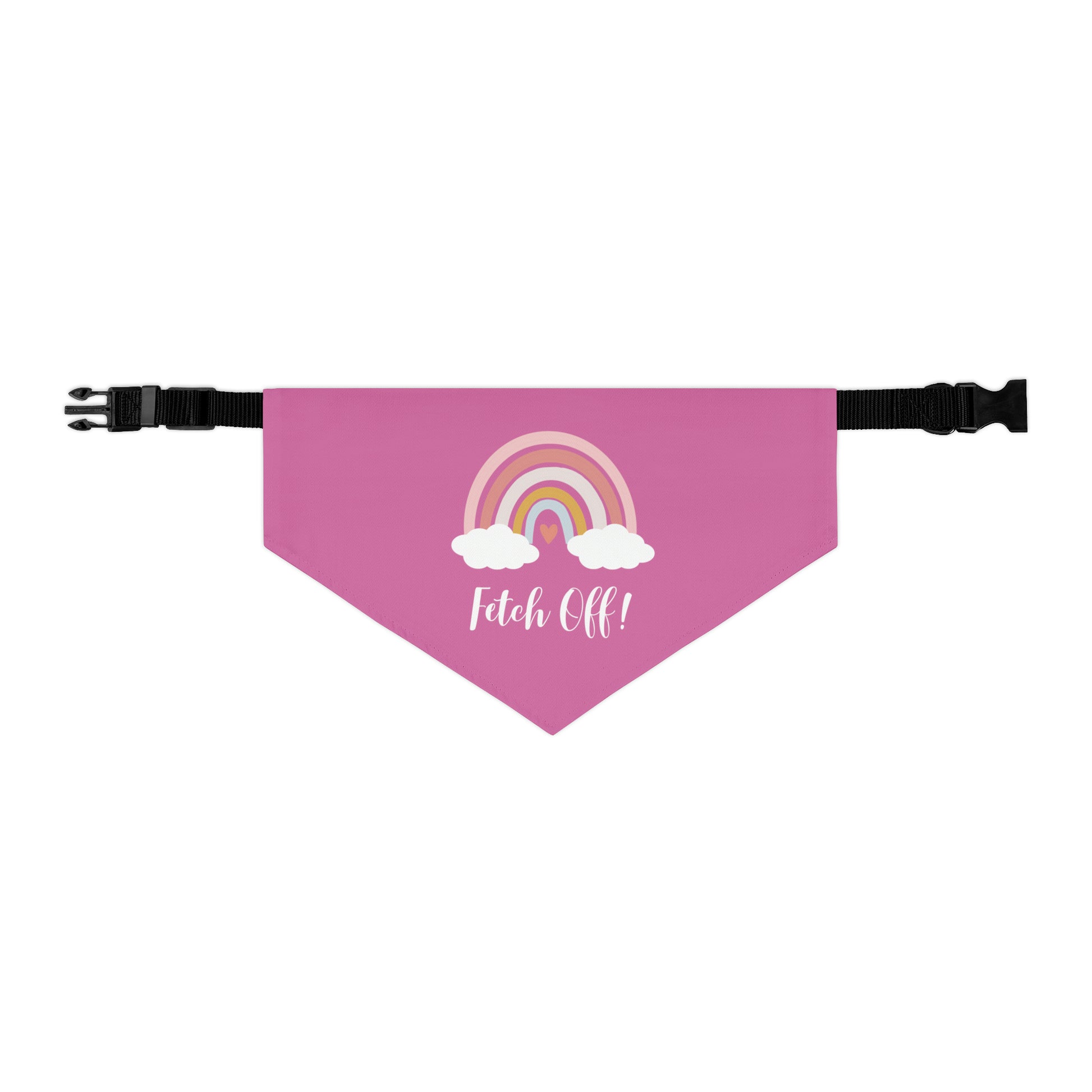Our "Fetch Off" Rainbow Pet Bandana Collar, the perfect accessory for your furry companion who embraces their unique personality and isn't afraid to make a statement.