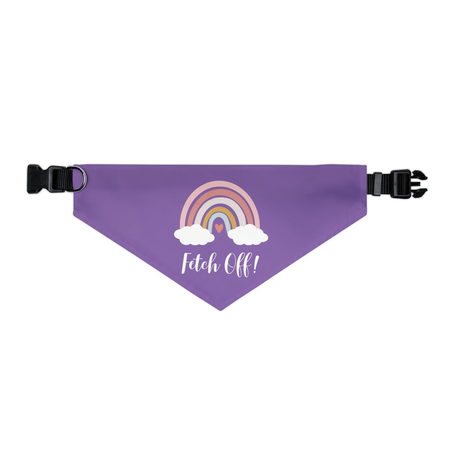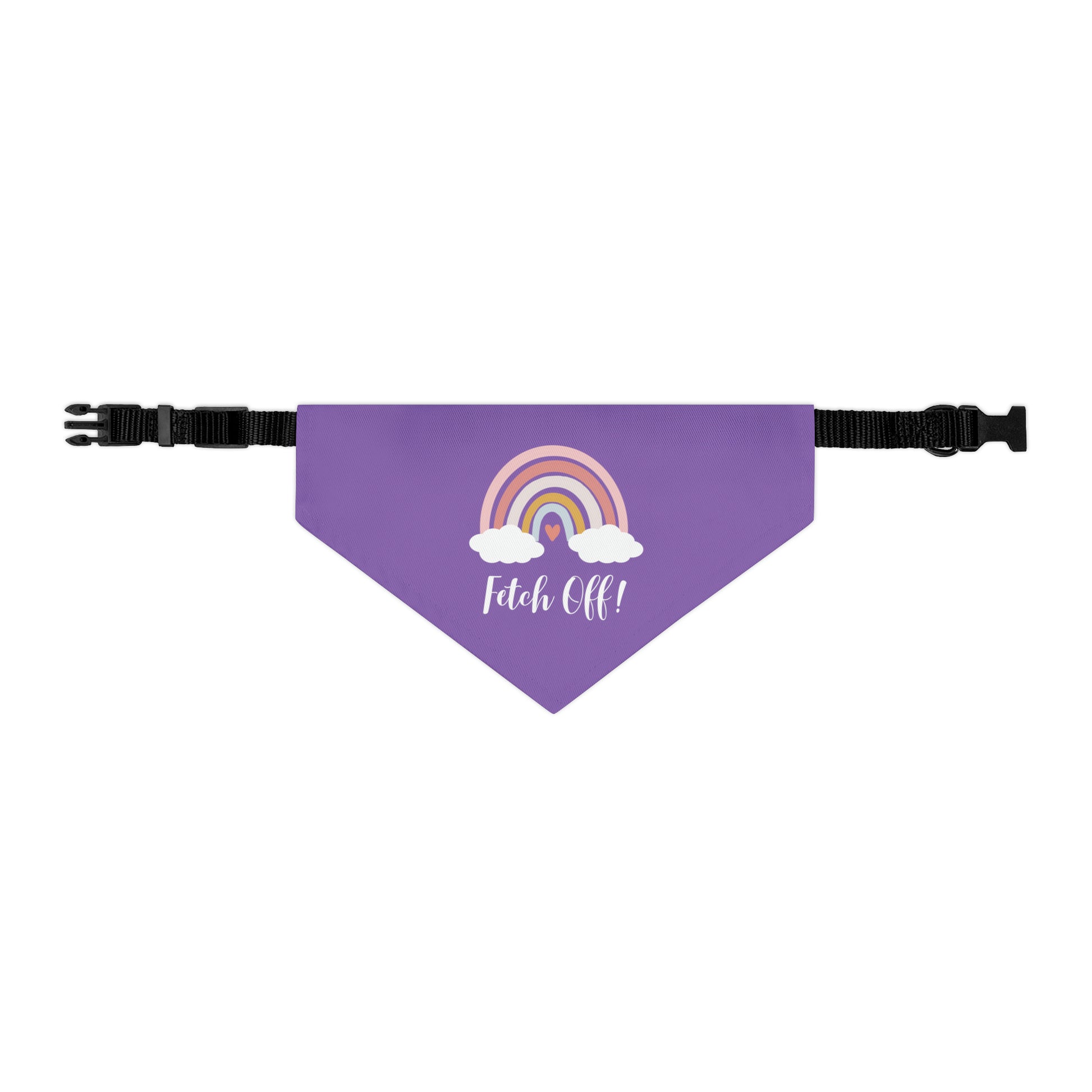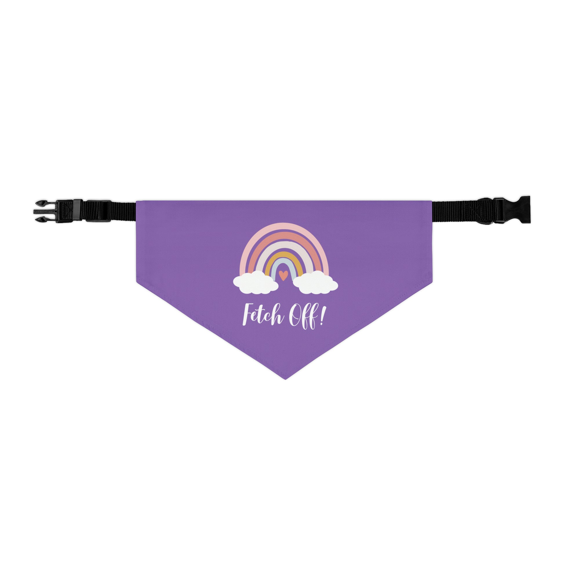 Our "Fetch Off" Rainbow Pet Bandana Collar, the perfect accessory for your furry companion who embraces their unique personality and isn't afraid to make a statement.