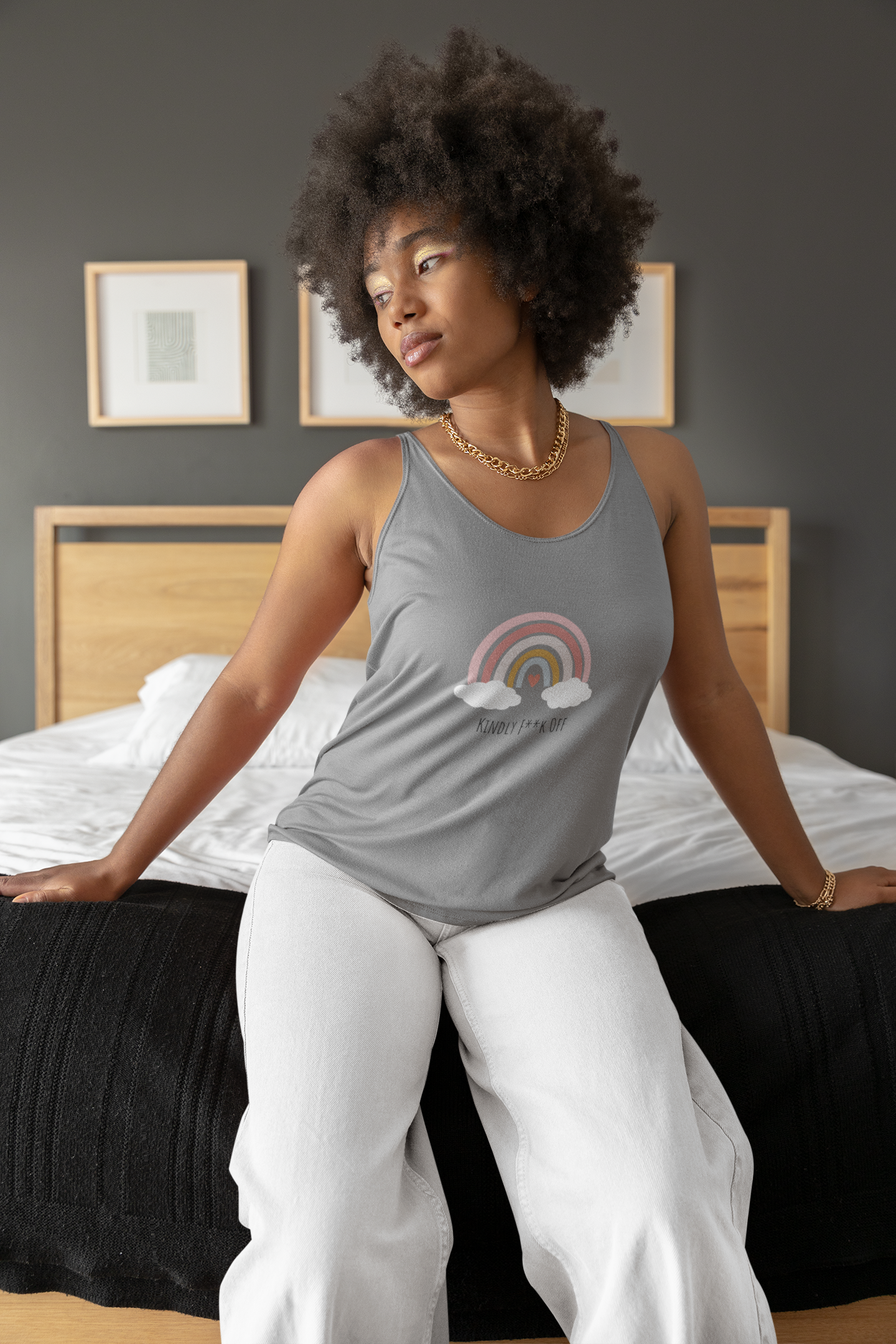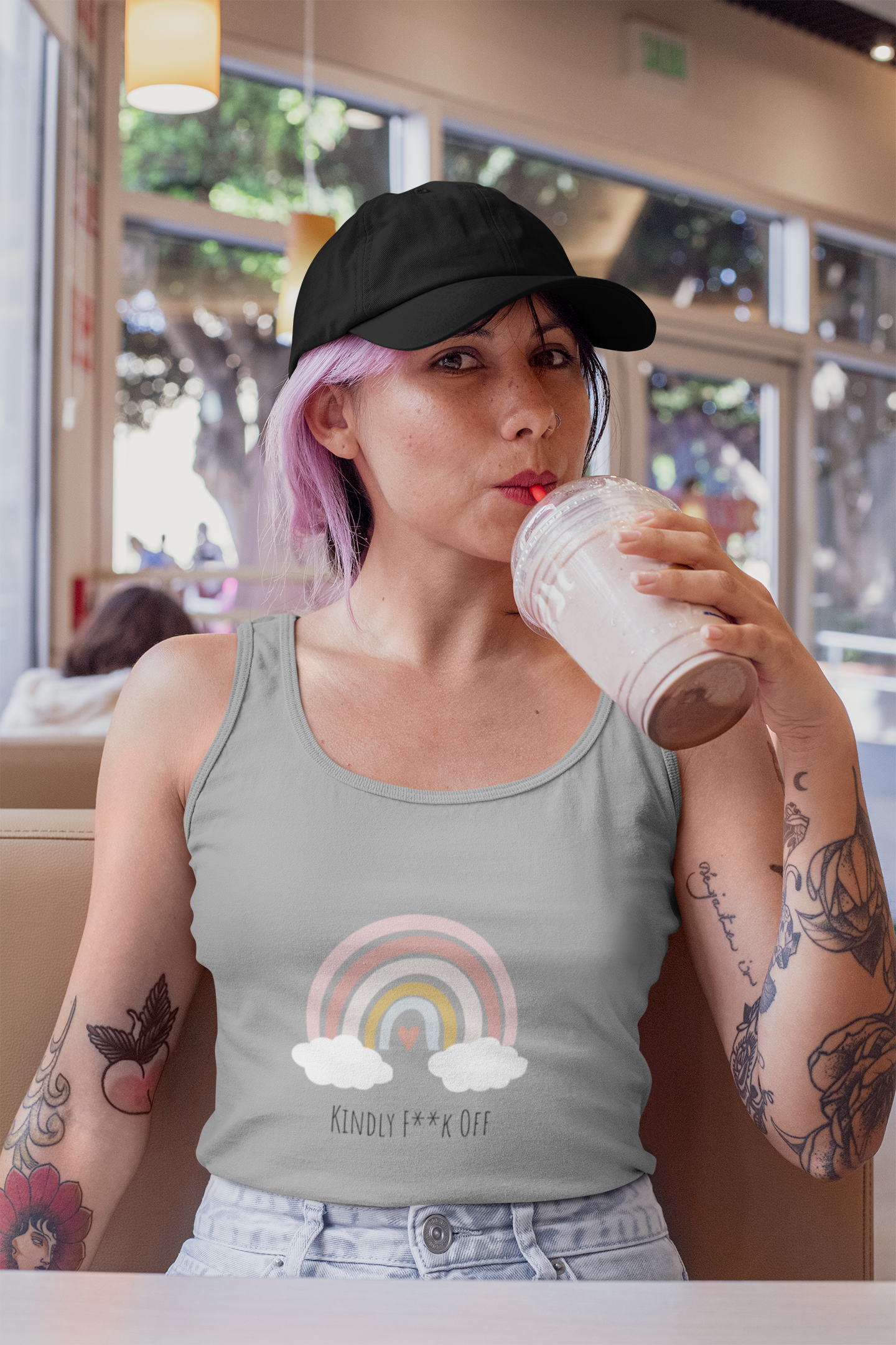 Embrace your unique style and assertive attitude with the "Rainbow, Kindly F**k Off" Razor Tank Top. This versatile and comfortable piece of clothing allows you to express yourself confidently while adding a splash of color and humor to your wardrobe. Stand out from the crowd and let your personality shine with this edgy and vibrant tank top.