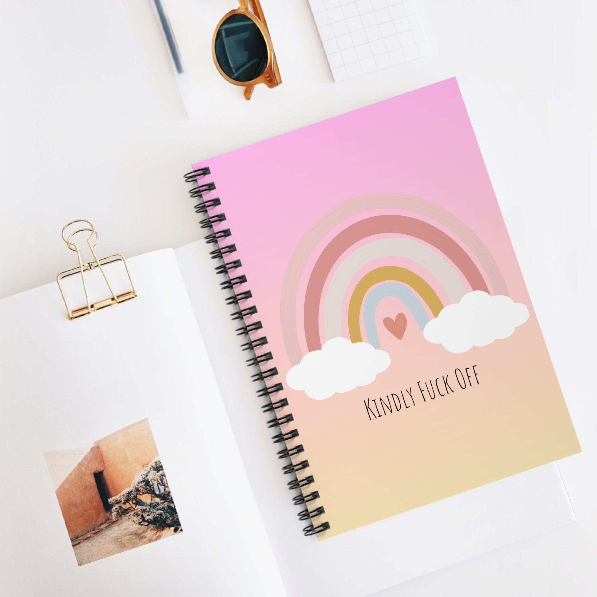 Rainbow Spiral Notebook- Kindly Fuck Off (pink)