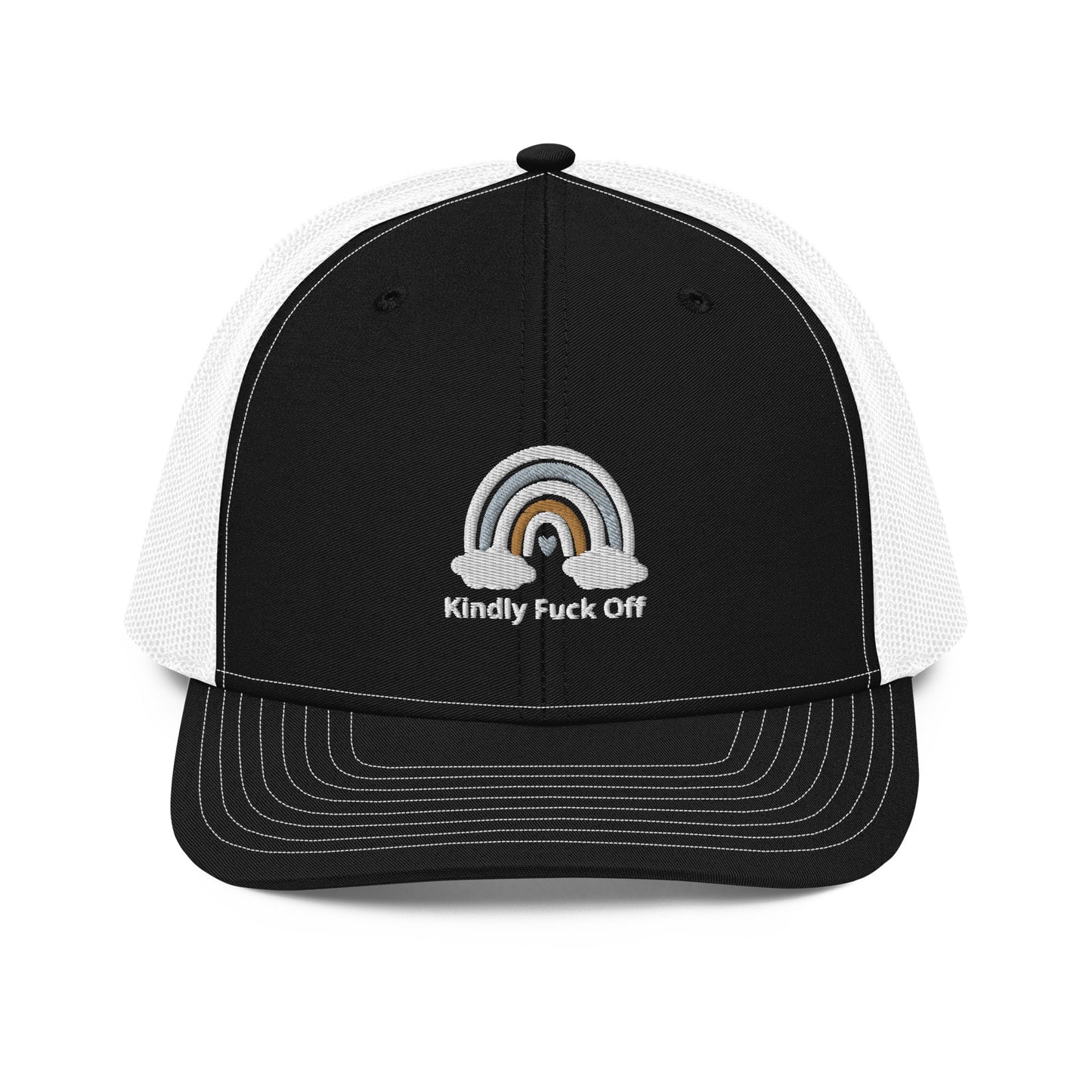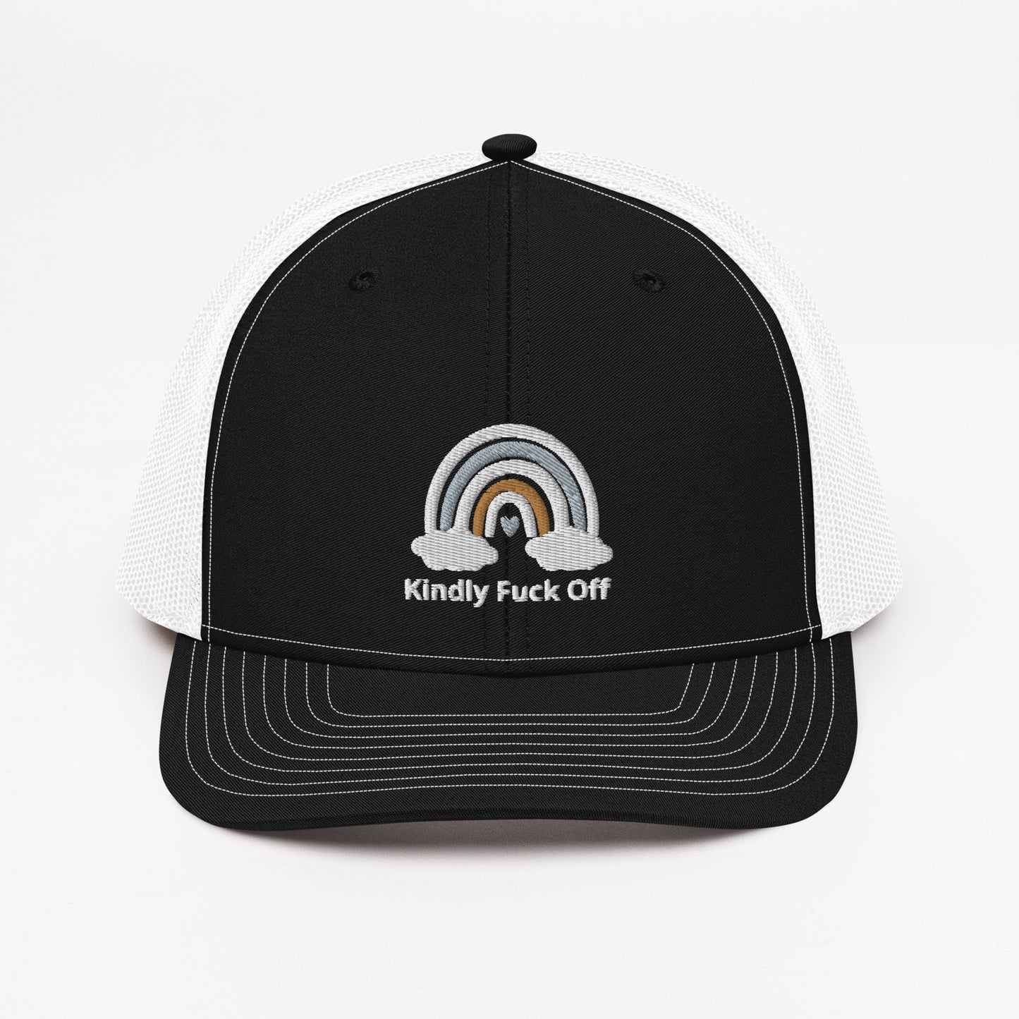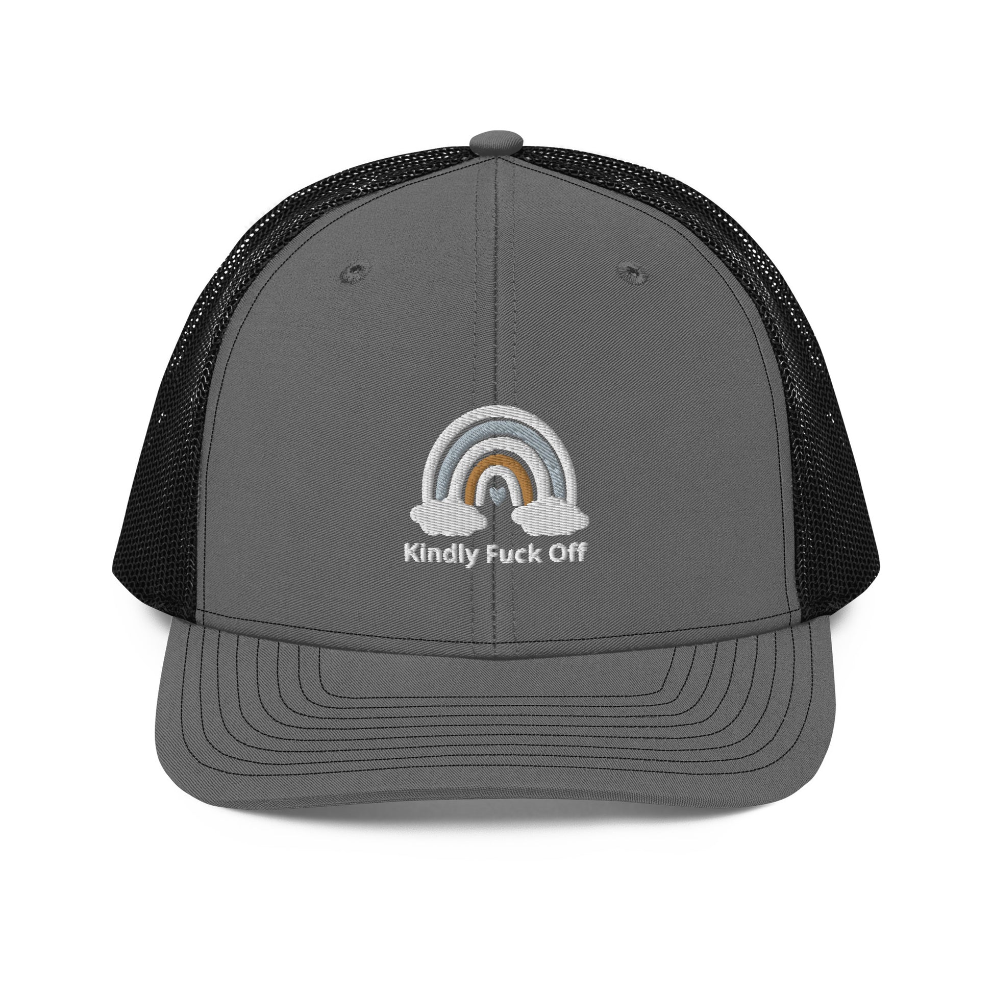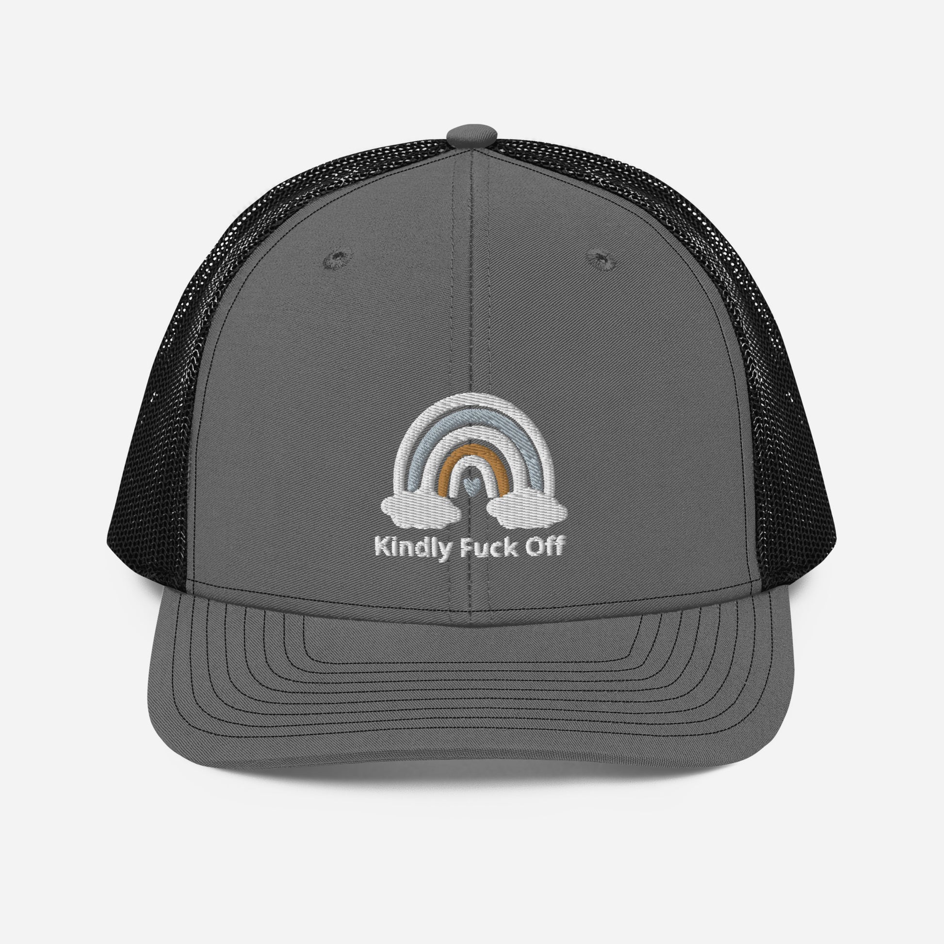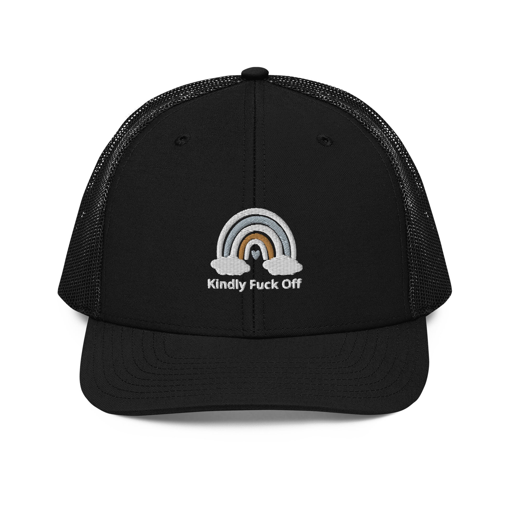Complete your outfit with an embroidered trucker cap—combine it with a sports tee, slacks, and comfy shoes. It has a classic structured fit, adjustable plastic snapback, and a curved visor that matches its underbill. Crafted with meticulous attention to detail, this trucker hat features a rainbow design structured with a breathable mesh back.