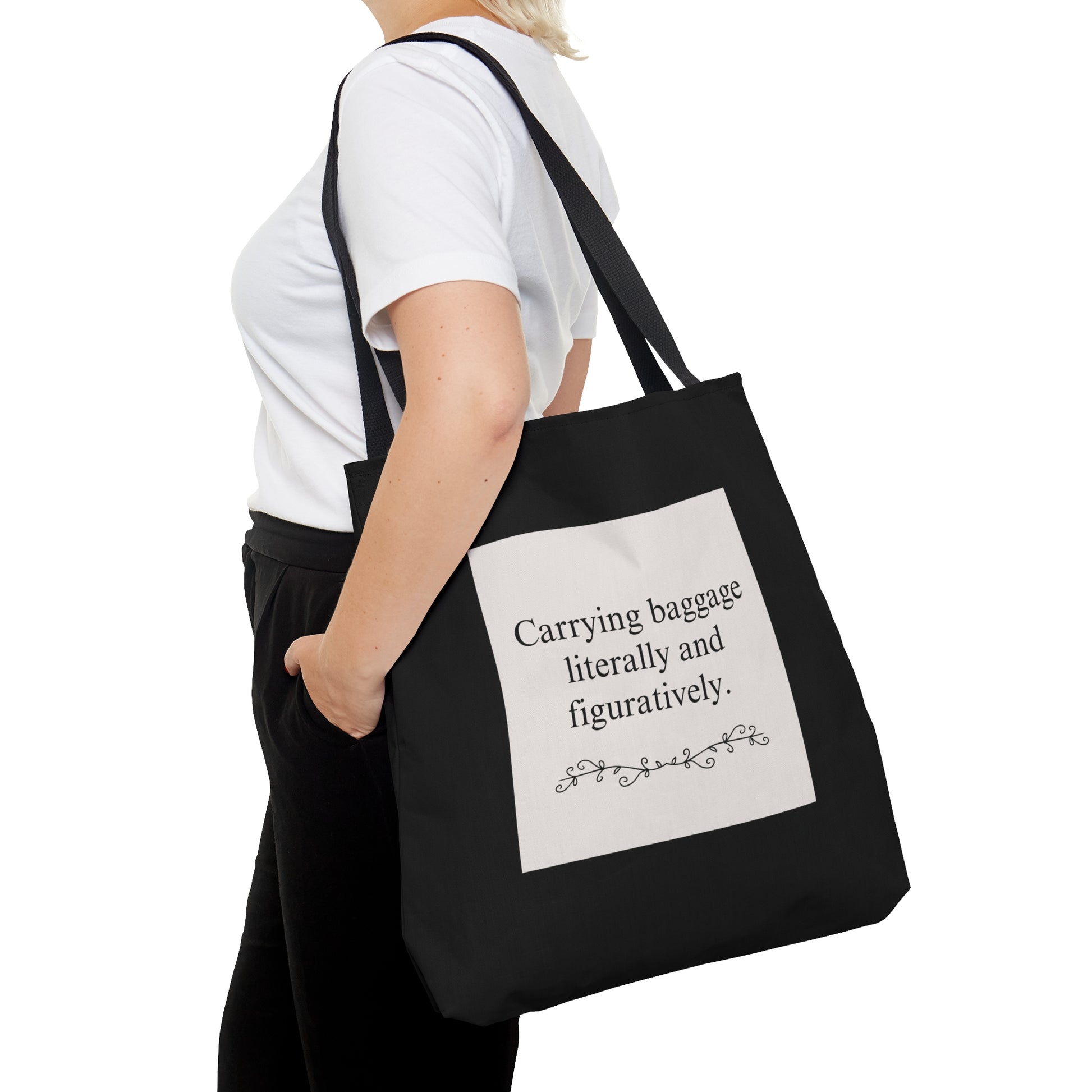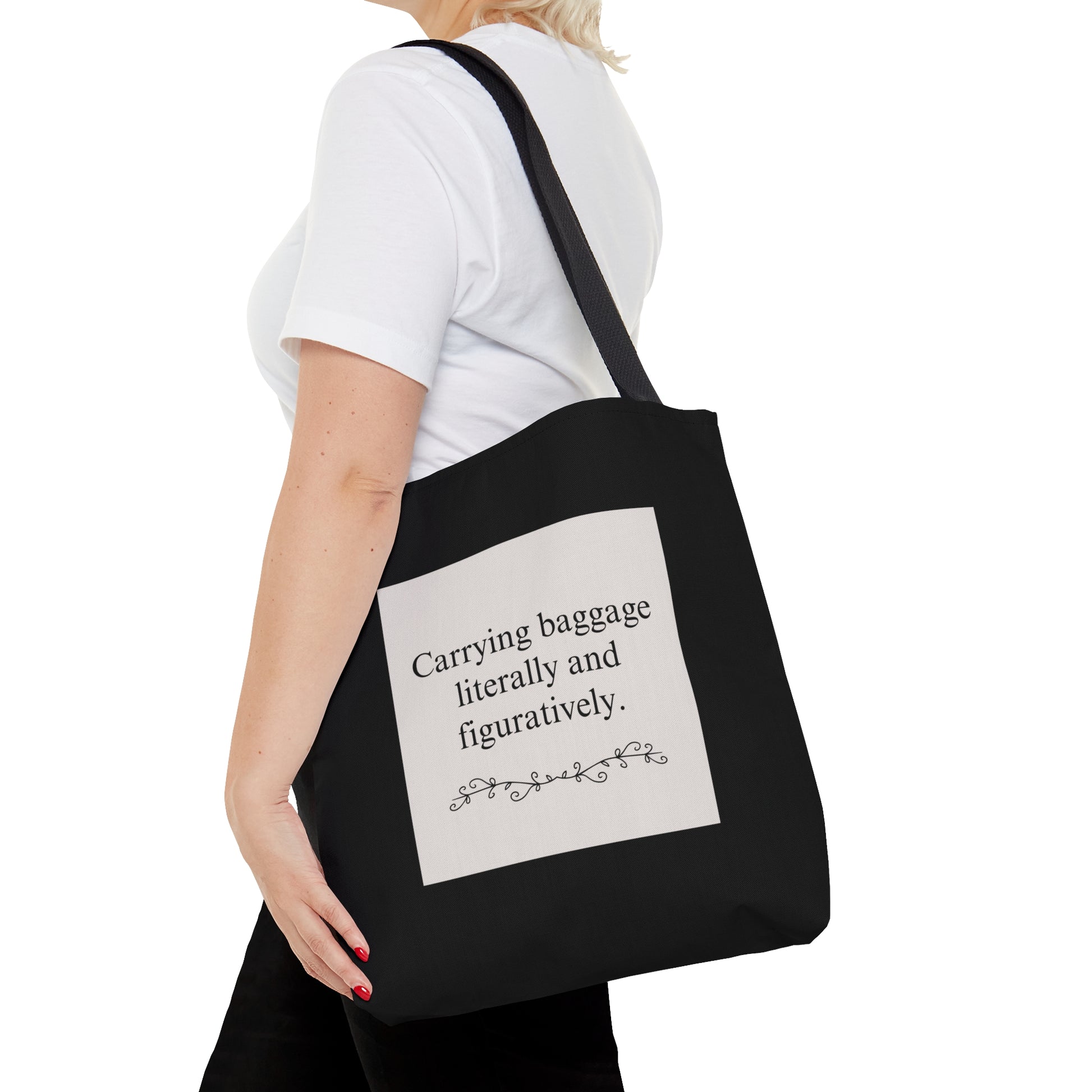 Introducing the Emotional Baggage Tote Bag, the perfect companion for those seeking a stylish and functional way to embrace the concept of carrying your emotional baggage with grace and style.