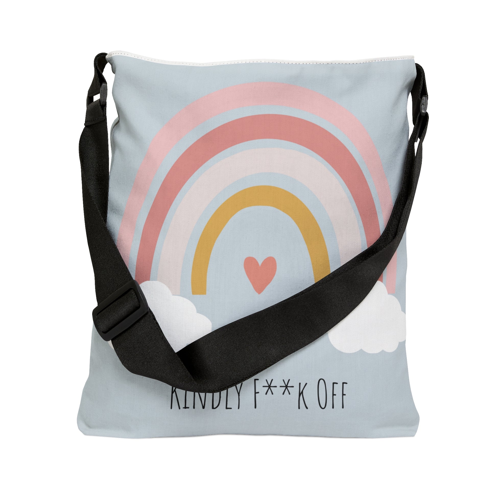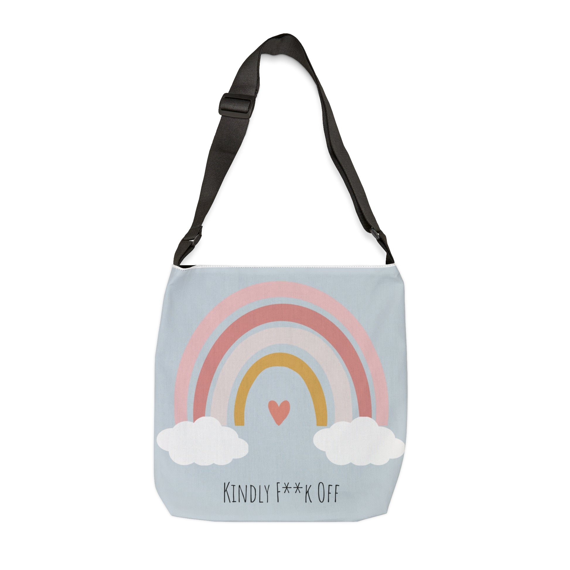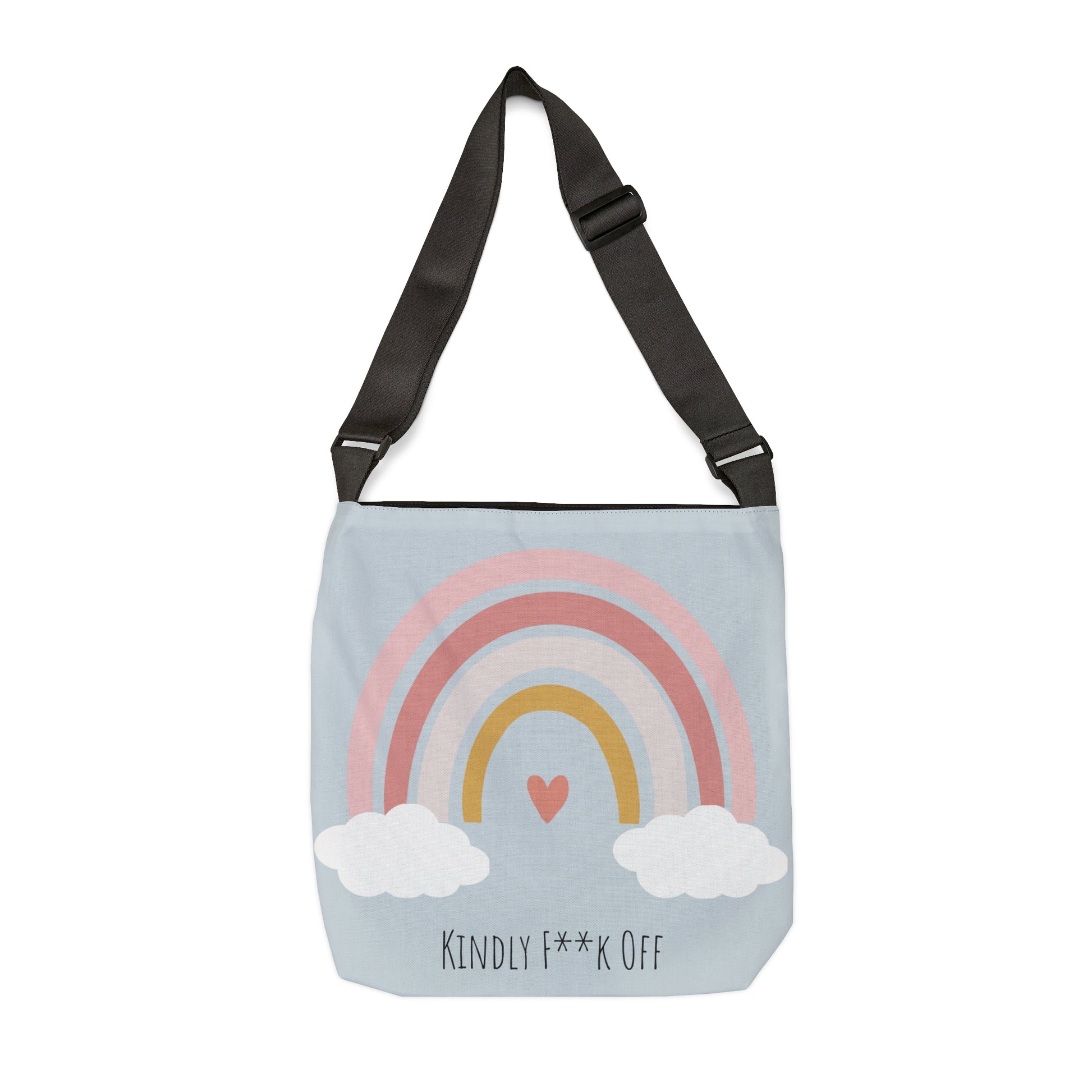 Our Kindly F**k Off Rainbow Adjustable Tote serves sends a powerful message of self-confidence and empowerment. Let your tote do the talking